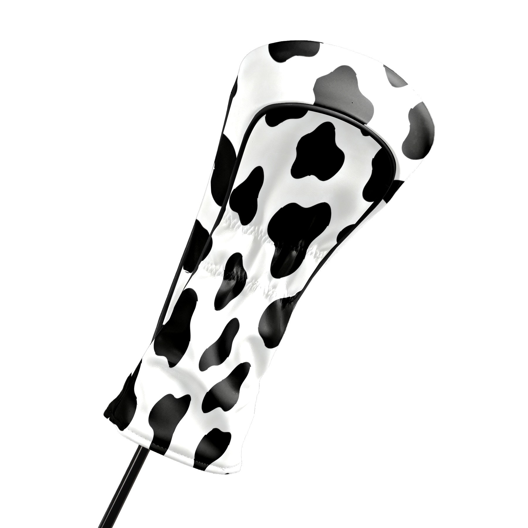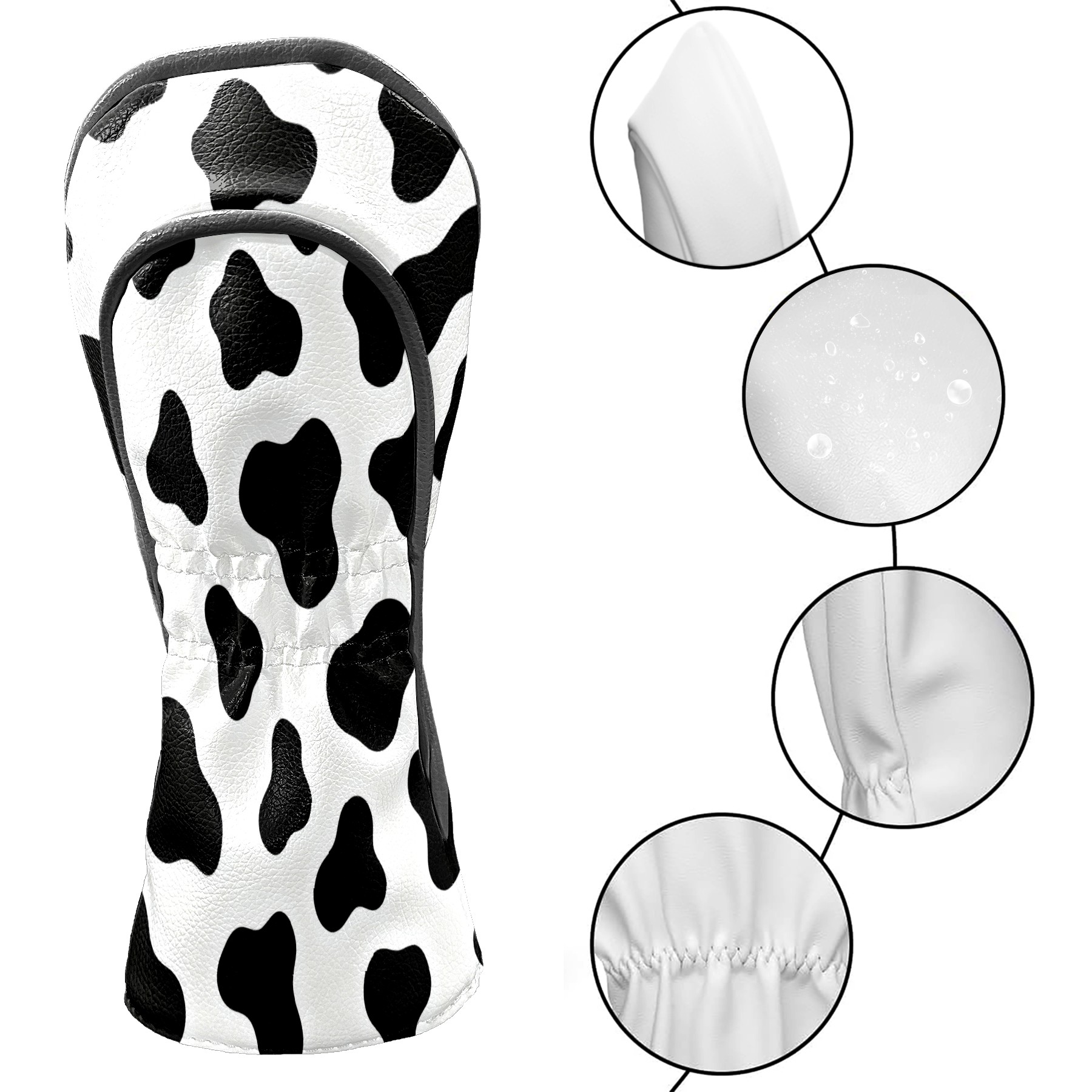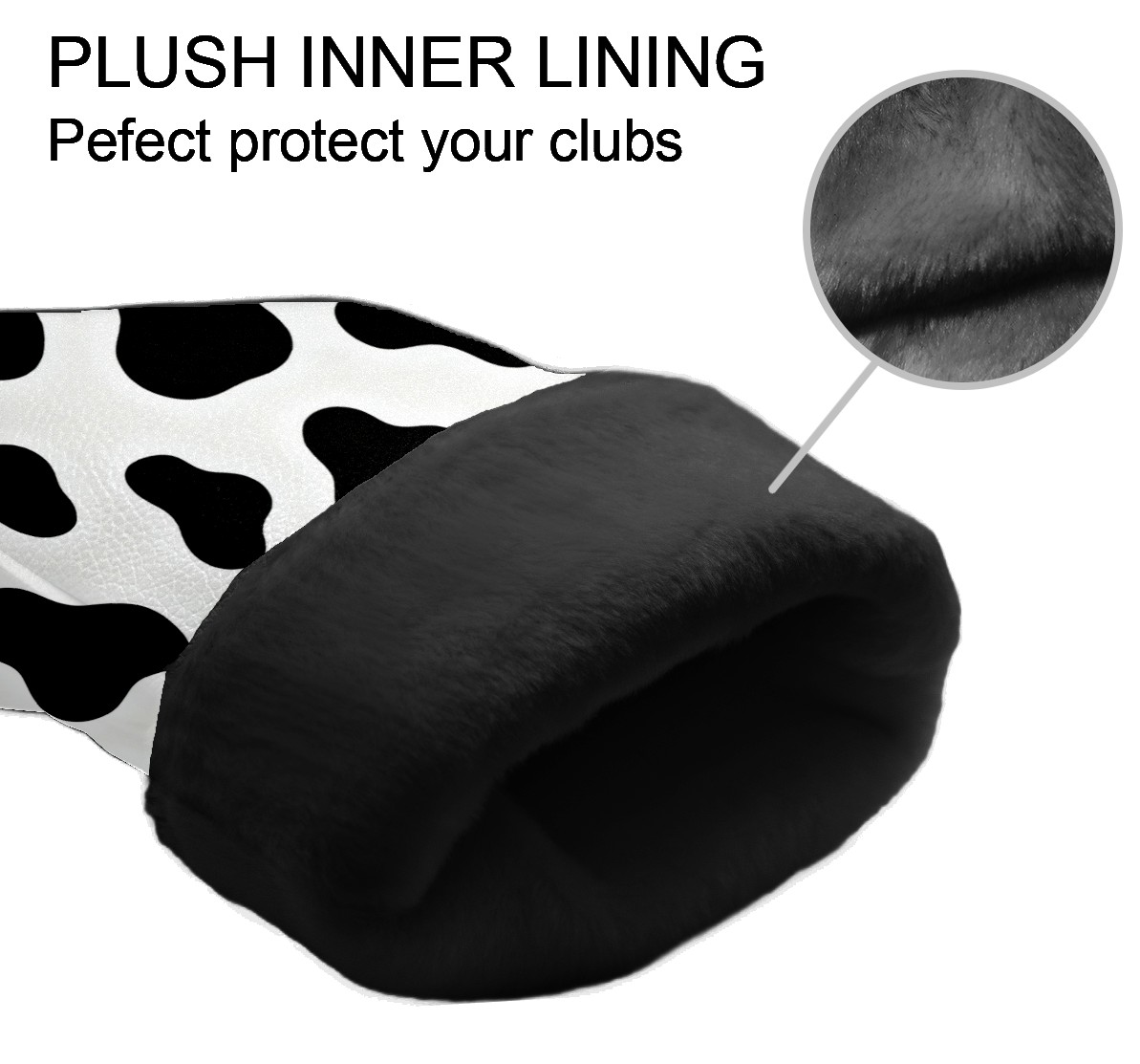 Golf Club Head Cover, High Quality PU Leather Driver and Wood Club Head Cover with Anti-Scratch Lining, Universal Gift for Men and Women Black White Cow Print