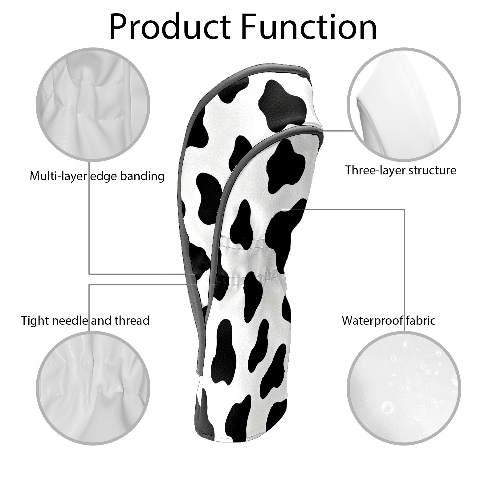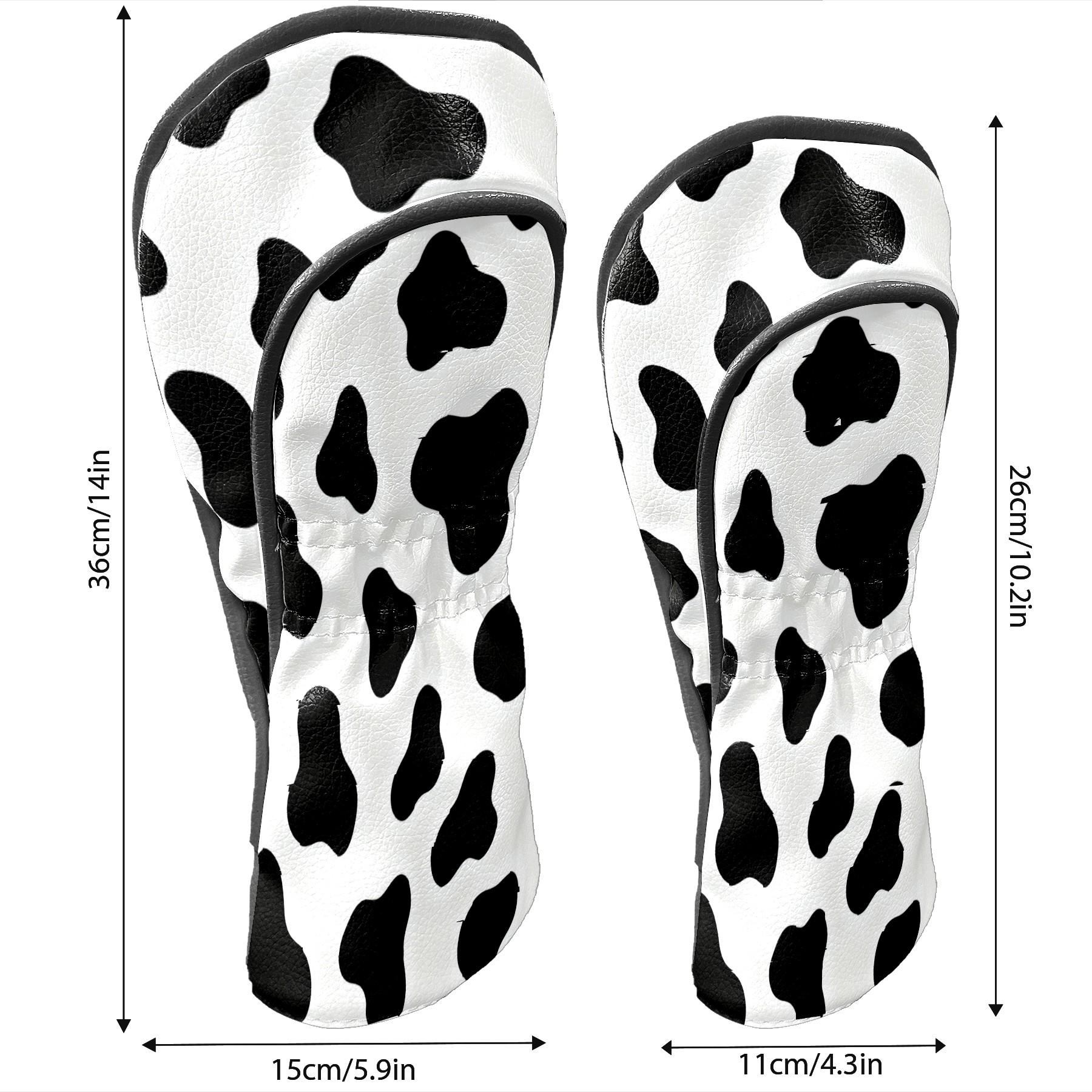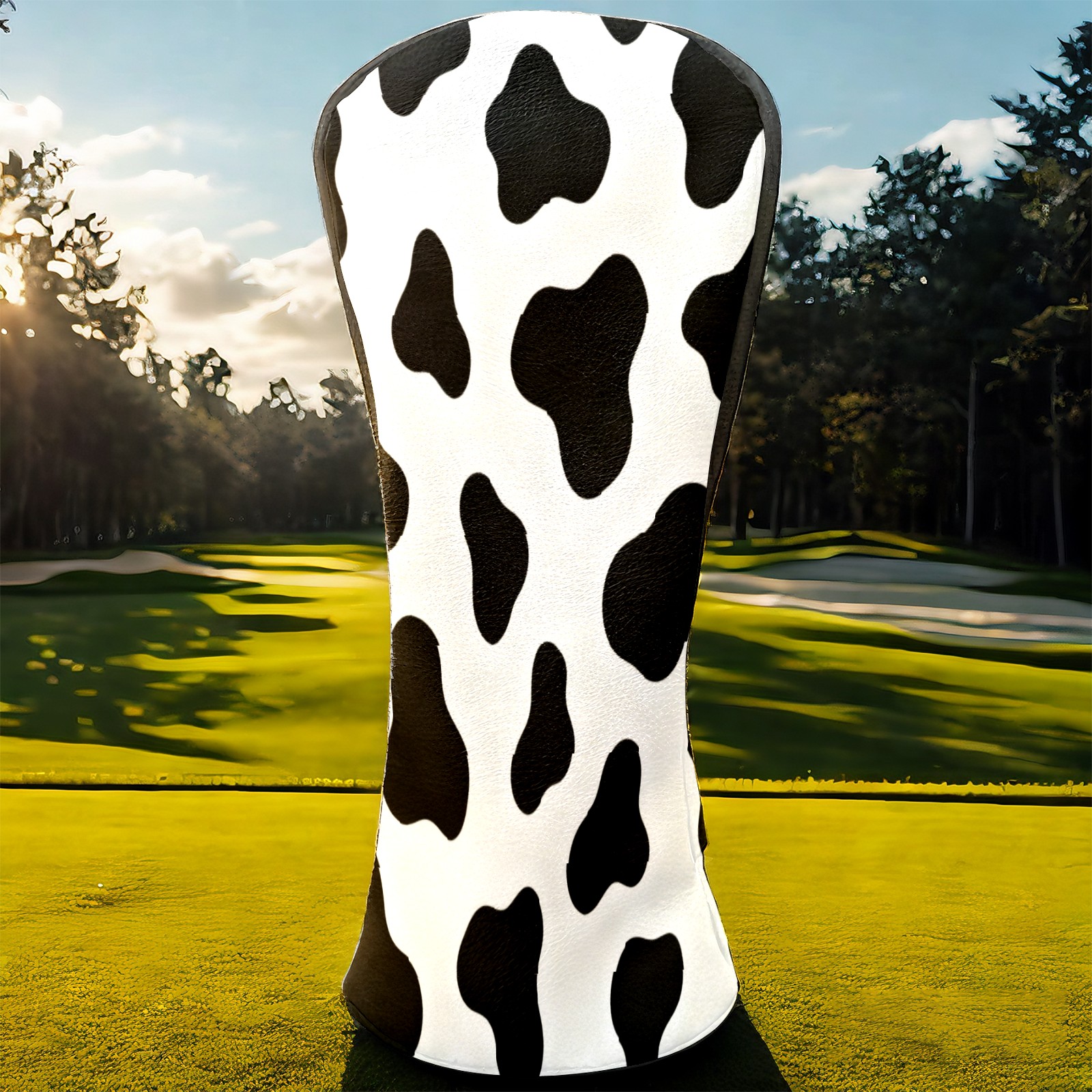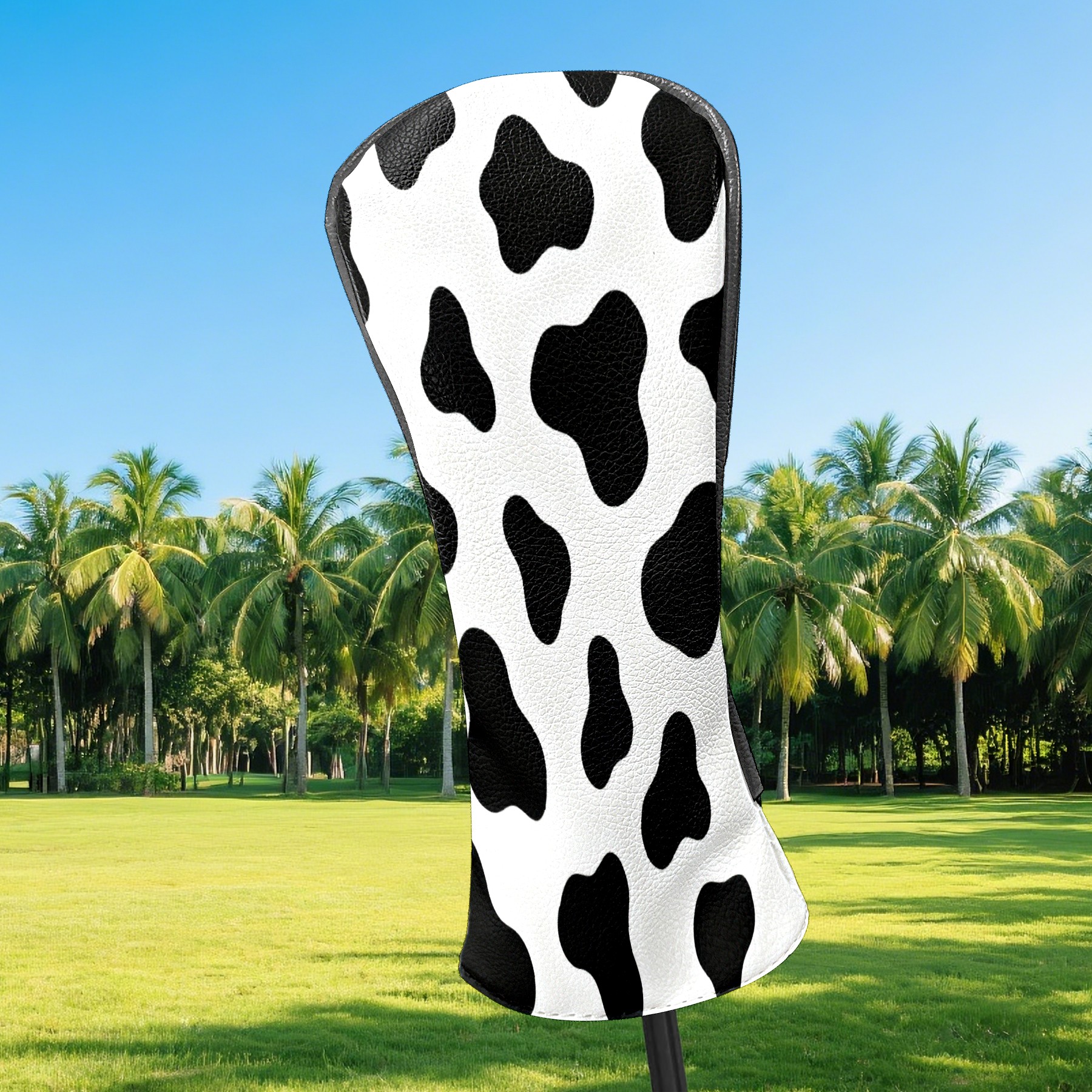 Golf Club Head Cover, High Quality PU Leather Driver and Wood Club Head Cover with Anti-Scratch Lining, Universal Gift for Men and Women Black White Cow Print
