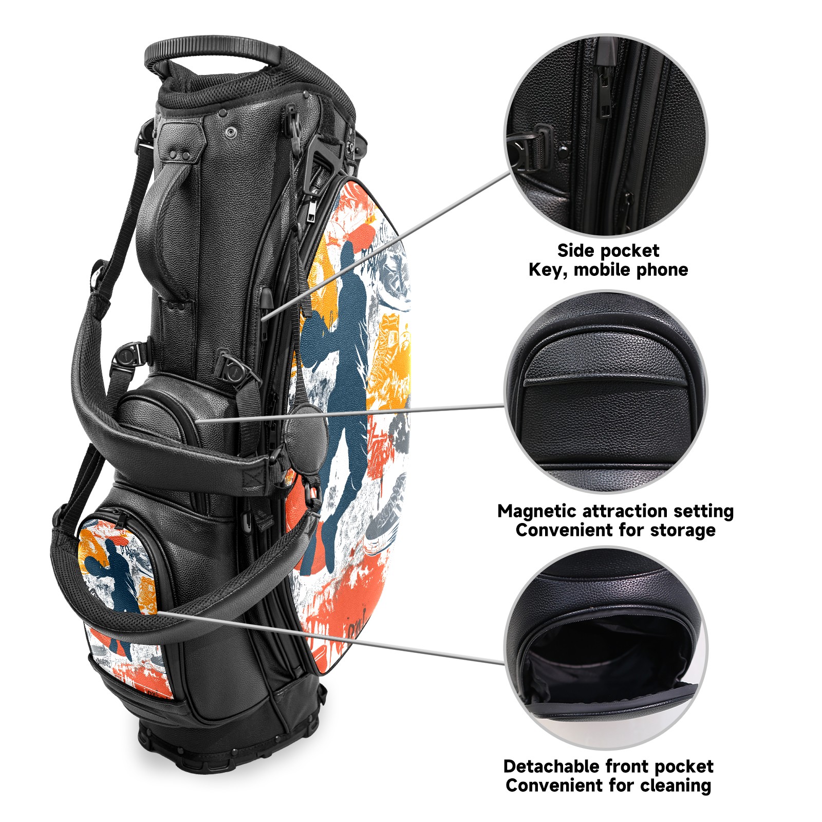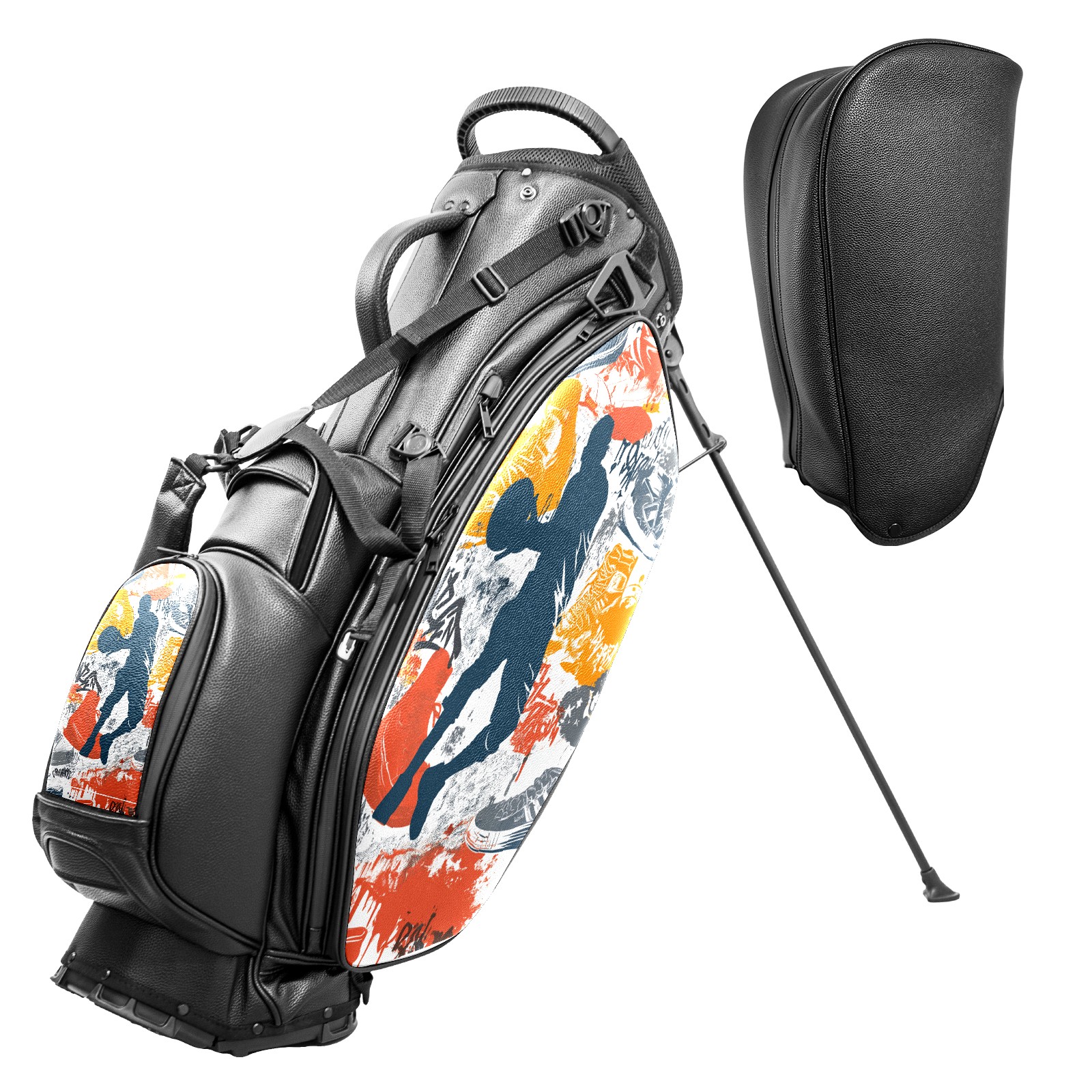 Lightweight Golf Stand Bag - 5-Way Top Divider, Golf Club Carry Bag with Adjustable Double Shoulder Straps, Zipper Storage Pockets + Rain Cover, Ideal for Men & Women Golfers Basketball Silhouette Orange