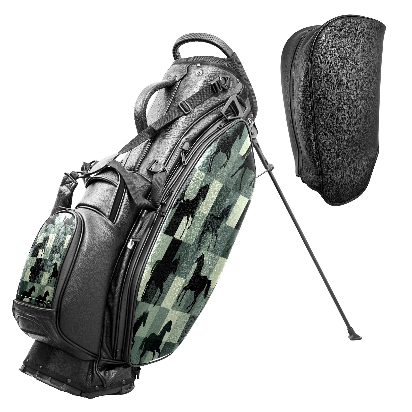 Lightweight Golf Stand Bag - 5-Way Top Divider, Golf Club Carry Bag with Adjustable Double Shoulder Straps, Zipper Storage Pockets + Rain Cover, Ideal for Men & Women Golfers Horse Green