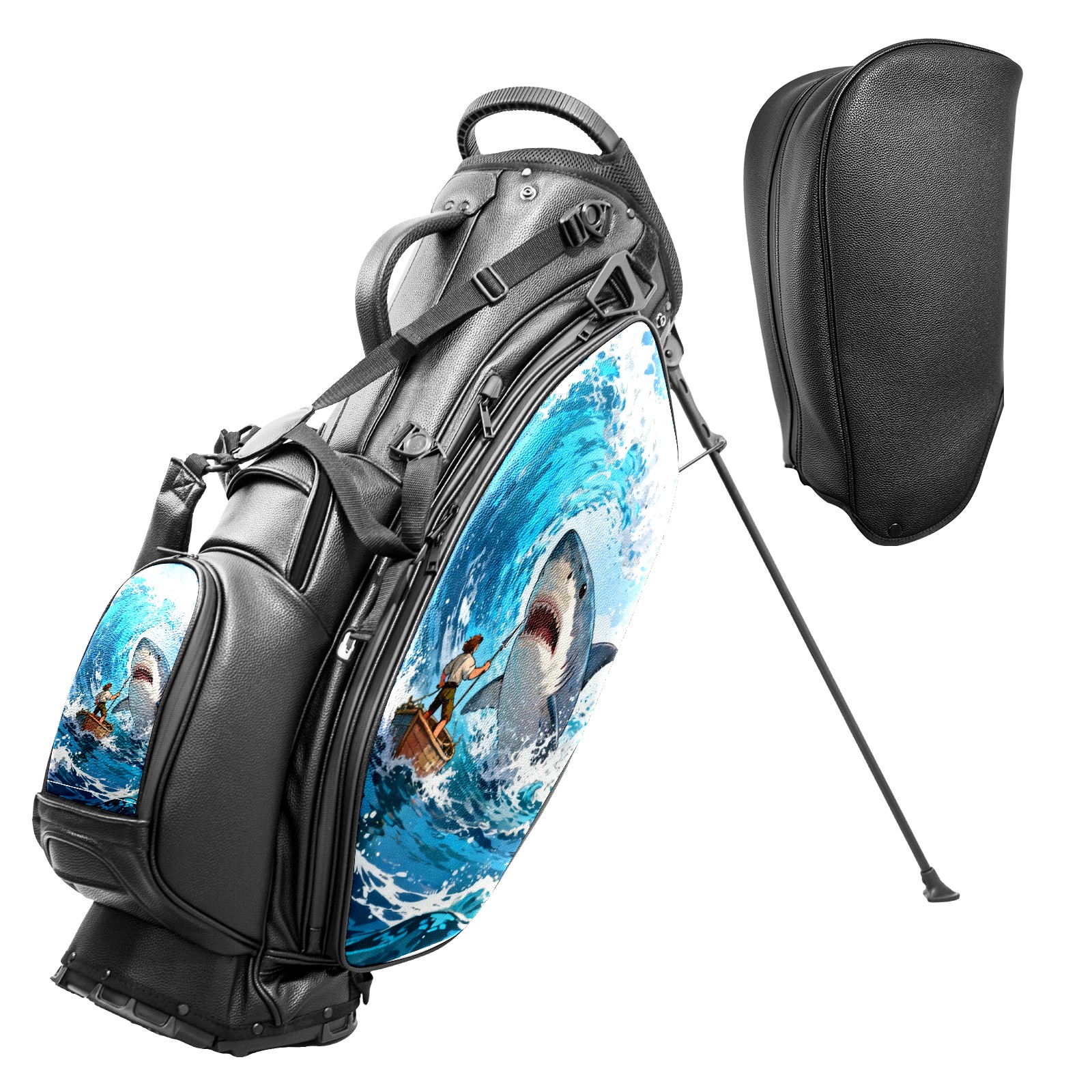 Lightweight Golf Stand Bag - 5-Way Top Divider, Golf Club Carry Bag with Adjustable Double Shoulder Straps, Zipper Storage Pockets + Rain Cover, Ideal for Men & Women Golfers Shark Attack Pattern