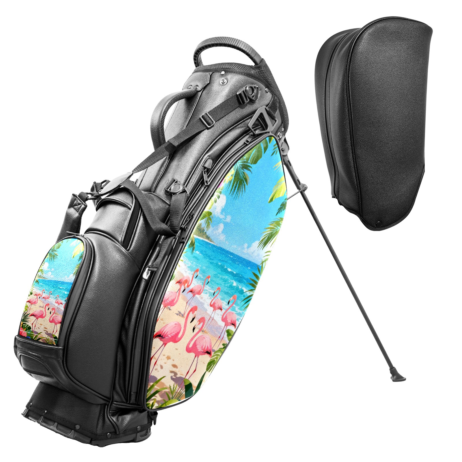 Lightweight Golf Stand Bag - 5-Way Top Divider, Golf Club Carry Bag with Adjustable Double Shoulder Straps, Zipper Storage Pockets + Rain Cover, Ideal for Men & Women Golfers Tropical Flamingo Pattern1