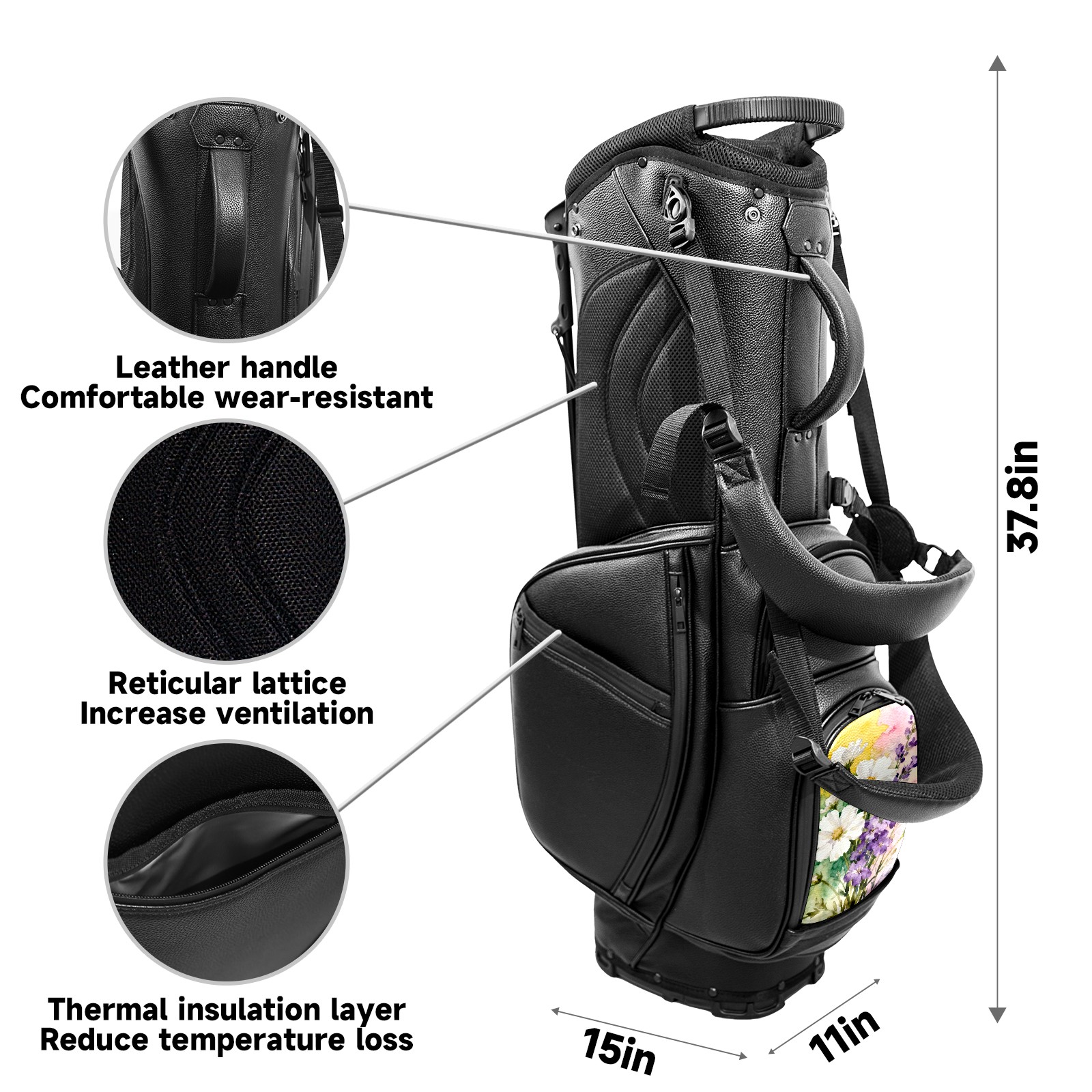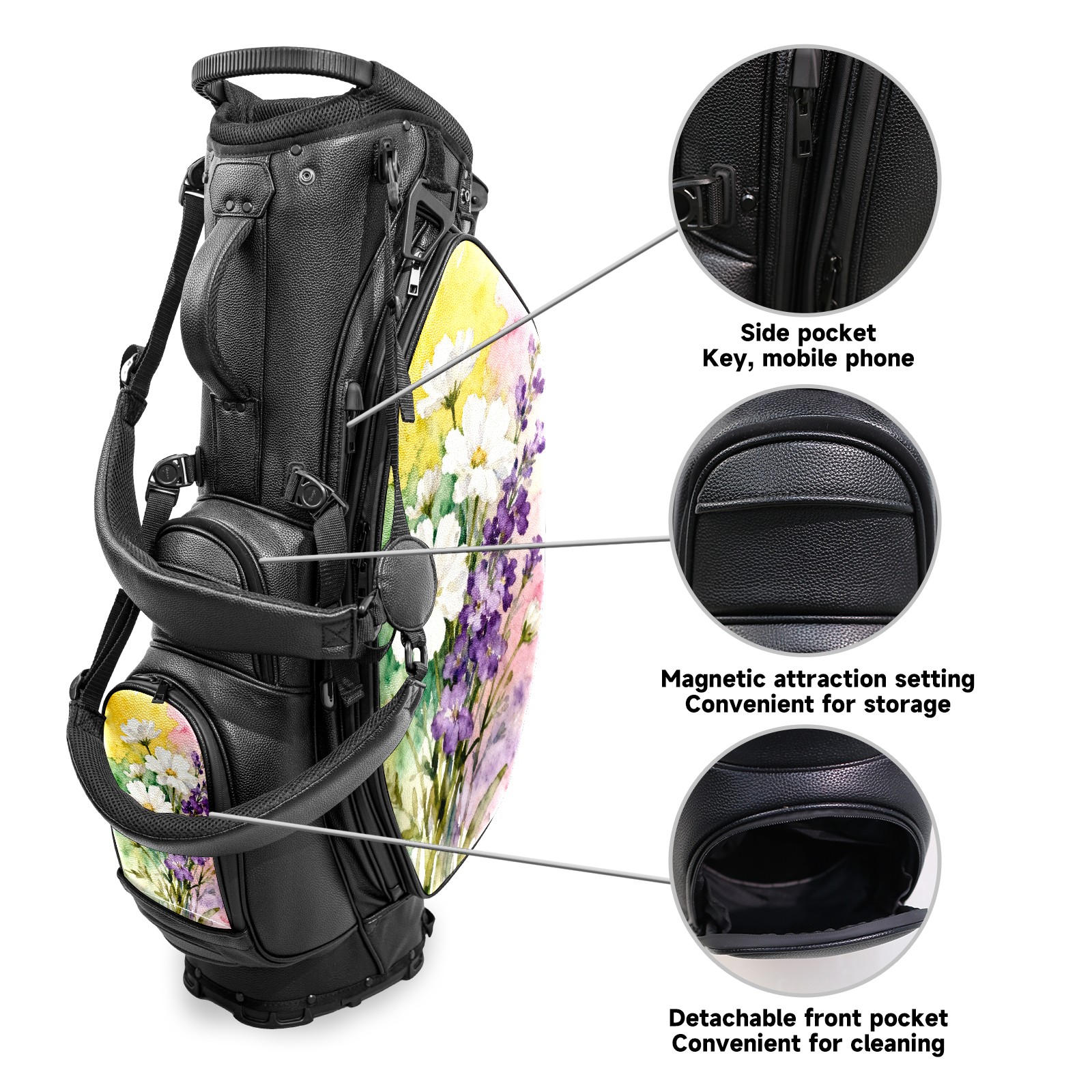 Lightweight Golf Stand Bag - 5-Way Top Divider, Golf Club Carry Bag with Adjustable Double Shoulder Straps, Zipper Storage Pockets + Rain Cover, Ideal for Men & Women Golfers Watercolor Floral Pattern12