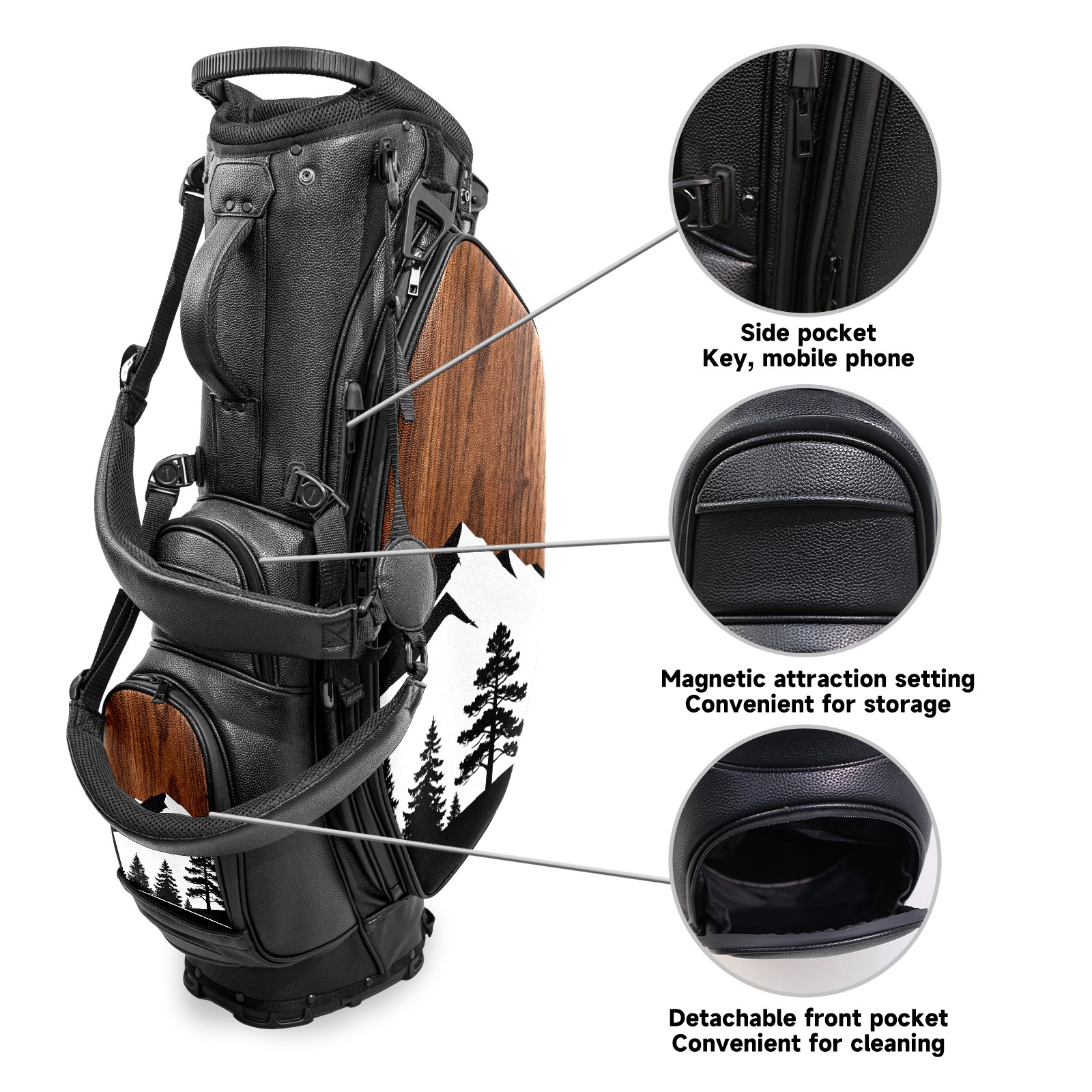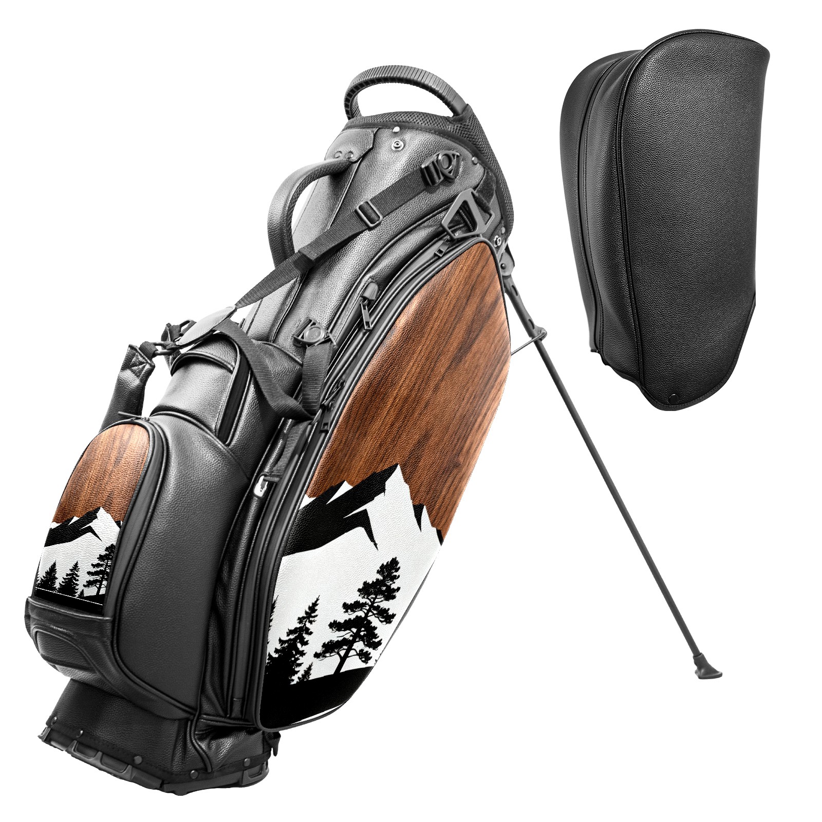 Lightweight Golf Stand Bag - 5-Way Top Divider, Golf Club Carry Bag with Adjustable Double Shoulder Straps, Zipper Storage Pockets + Rain Cover, Ideal for Men & Women Golfers Black Mountain Silhouette