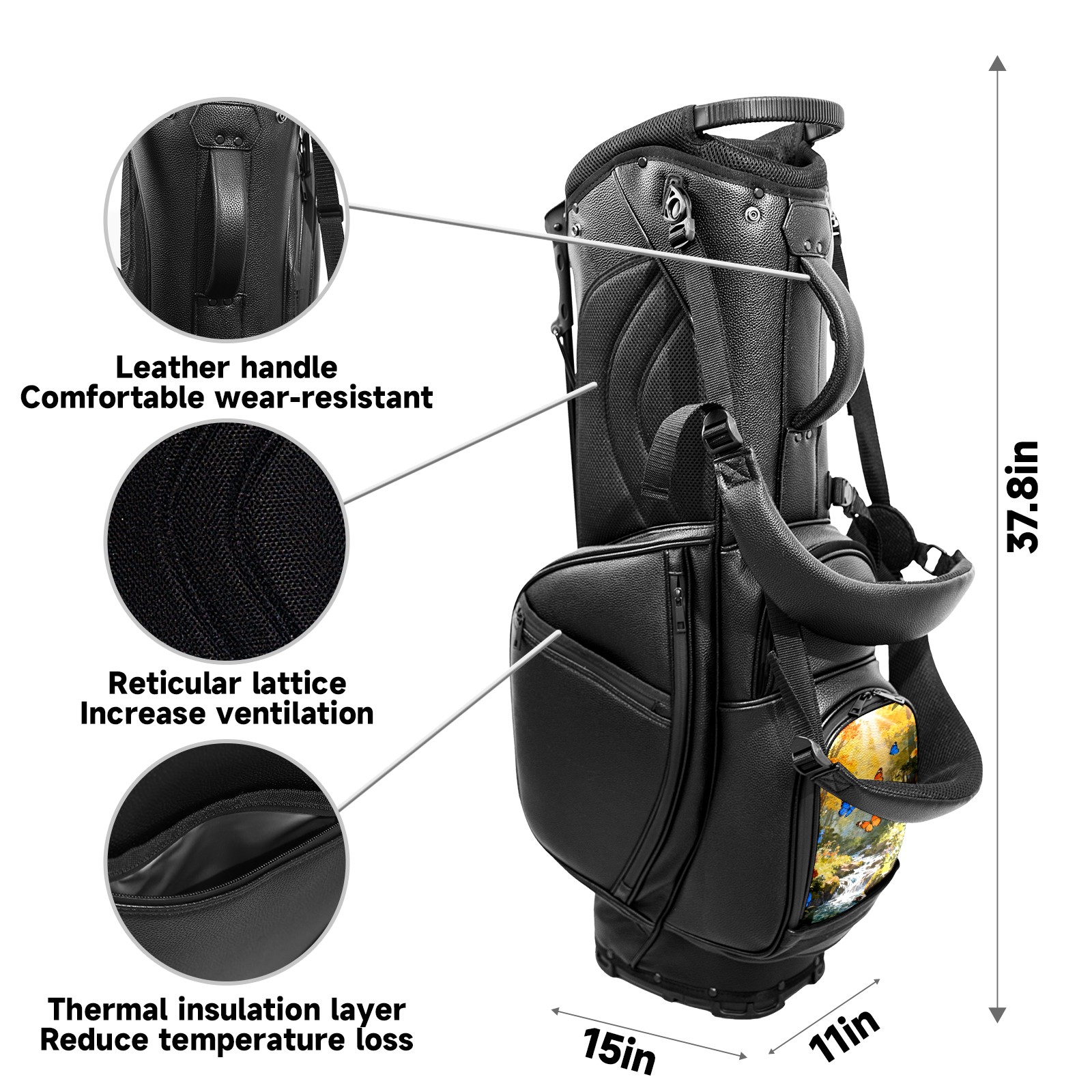 • <p>This golf bag combines versatility, durability, and quality, providing comprehensive protection and easy access for your golf clubs. Its precise dimensions of 130 x 37 x 31 cm (with rain cover) and 90 x 31 x 37 cm (without rain cover) strike the perfect balance between portability and storage capacity.The five-way head frame (with five-way top compartments) allows for strategic compartmentalization, allowing you to neatly organize your various clubs and separate them to protect them from bumps, scratches, and scuffs. Its versatile compartmental design features a spacious five-compartment structure, including a separate, full-size club compartment, to fully accommodate your clubs while protecting their integrity.This bag features a versatile storage system with multiple waterproof zippered pockets for securely storing golf accessories, as well as a dedicated insulated cooler pocket with excellent insulation to keep your drinks cold. The built-in rain cover effectively repels moisture, ensuring your clubs remain dry and protected even in wet weather. For enhanced carrying comfort, this bag features ergonomically designed, padded, breathable, adjustable shoulder straps and an adjustable chest strap to distribute shoulder pressure for easier and more comfortable carrying. A portable rear handle makes lifting and carrying easier.Quality is evident in every detail: double-stitched reinforced edges enhance structural stability, smooth and durable zippers ensure long-lasting reliability, and wear-resistant bottom rivets ensure secure placement on all terrains, effectively preventing wear and tear. Crafted from classic pebbled matte PU fabric, it perfectly complements both business and casual occasions. Available in black and white, it exudes understated elegance and sophistication.This golf bag, with its sturdy plastic base, combines premium quality and durability, making it the ideal companion for every golfer, whether heading to the course for a casual round or attending a business golf event.</p>
