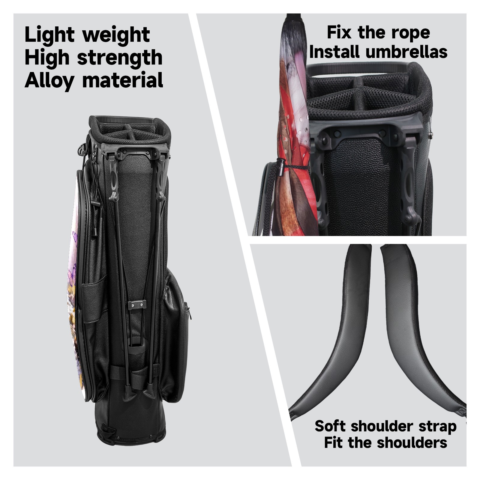 <p>This golf bag combines versatility, durability, and quality, providing comprehensive protection and easy access for your golf clubs. Its precise dimensions of 130 x 37 x 31 cm (with rain cover) and 90 x 31 x 37 cm (without rain cover) strike the perfect balance between portability and storage capacity.The five-way head frame (with five-way top compartments) allows for strategic compartmentalization, allowing you to neatly organize your various clubs and separate them to protect them from bumps, scratches, and scuffs. Its versatile compartmental design features a spacious five-compartment structure, including a separate, full-size club compartment, to fully accommodate your clubs while protecting their integrity.This bag features a versatile storage system with multiple waterproof zippered pockets for securely storing golf accessories, as well as a dedicated insulated cooler pocket with excellent insulation to keep your drinks cold. The built-in rain cover effectively repels moisture, ensuring your clubs remain dry and protected even in wet weather. For enhanced carrying comfort, this bag features ergonomically designed, padded, breathable, adjustable shoulder straps and an adjustable chest strap to distribute shoulder pressure for easier and more comfortable carrying. A portable rear handle makes lifting and carrying easier.Quality is evident in every detail: double-stitched reinforced edges enhance structural stability, smooth and durable zippers ensure long-lasting reliability, and wear-resistant bottom rivets ensure secure placement on all terrains, effectively preventing wear and tear. Crafted from classic pebbled matte PU fabric, it perfectly complements both business and casual occasions. Available in black and white, it exudes understated elegance and sophistication.This golf bag, with its sturdy plastic base, combines premium quality and durability, making it the ideal companion for every golfer, whether heading to the course for a casual round or attending a business golf event.</p>