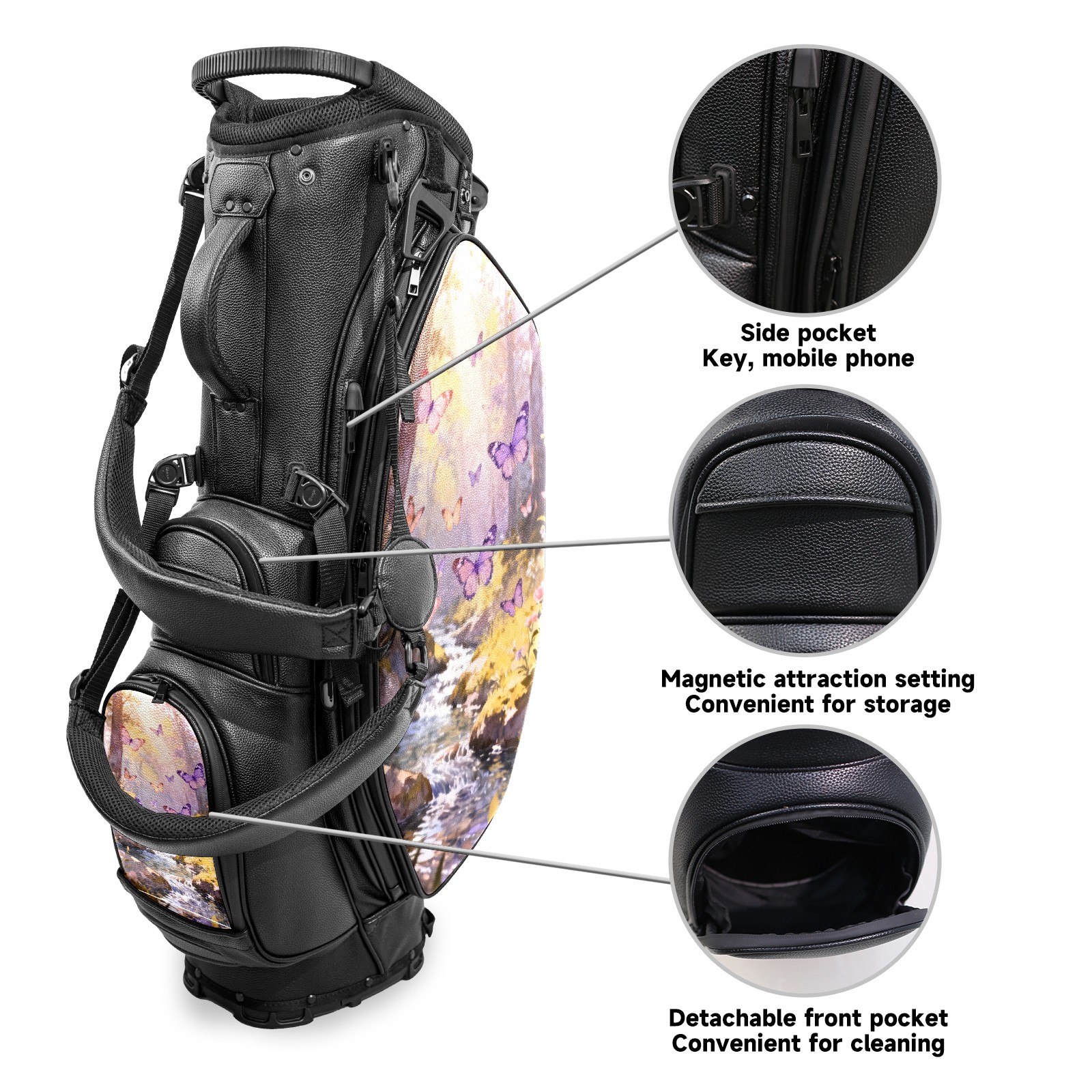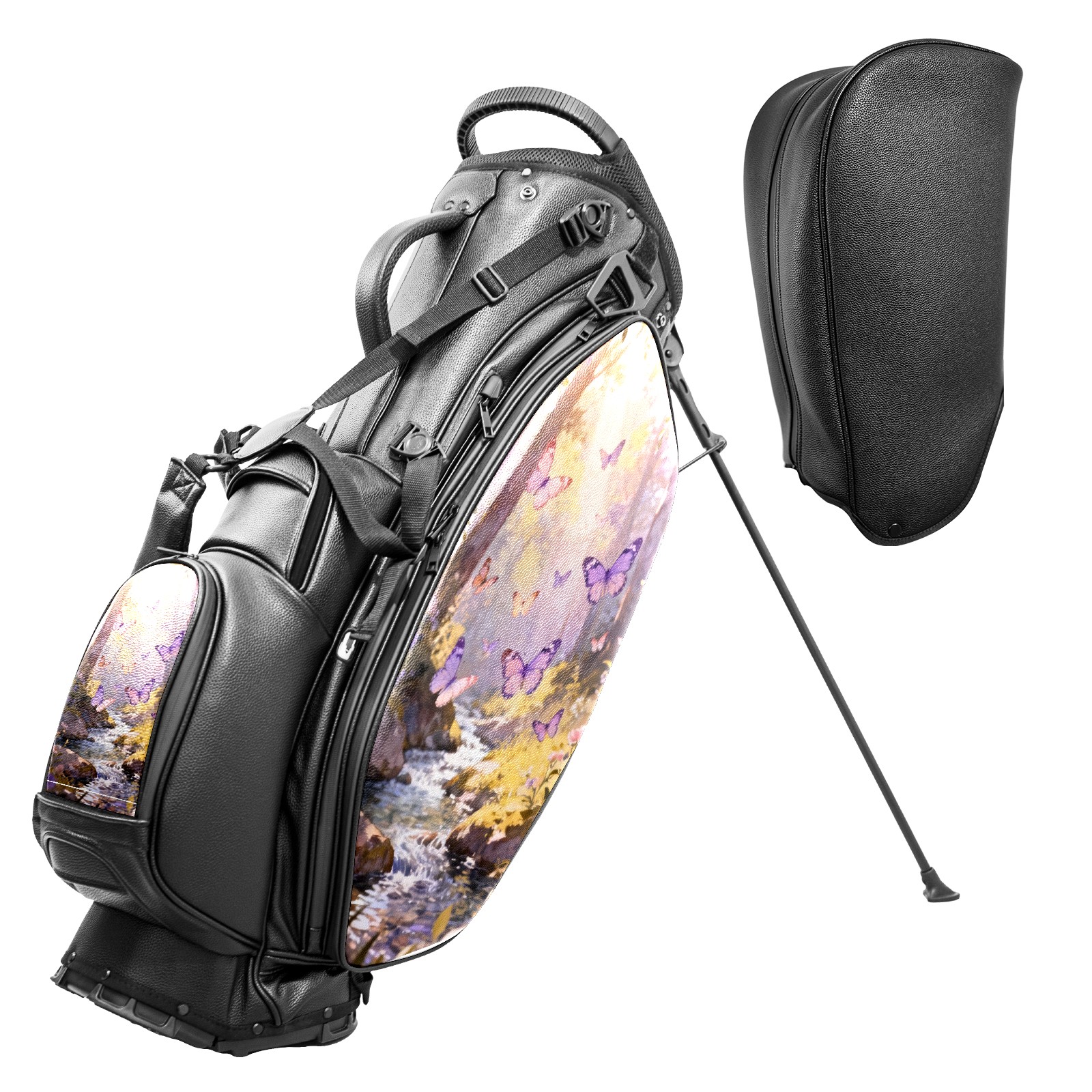 Lightweight Golf Stand Bag - 5-Way Top Divider, Golf Club Carry Bag with Adjustable Double Shoulder Straps, Zipper Storage Pockets + Rain Cover, Ideal for Men & Women Golfers Pink Purple Butterfly