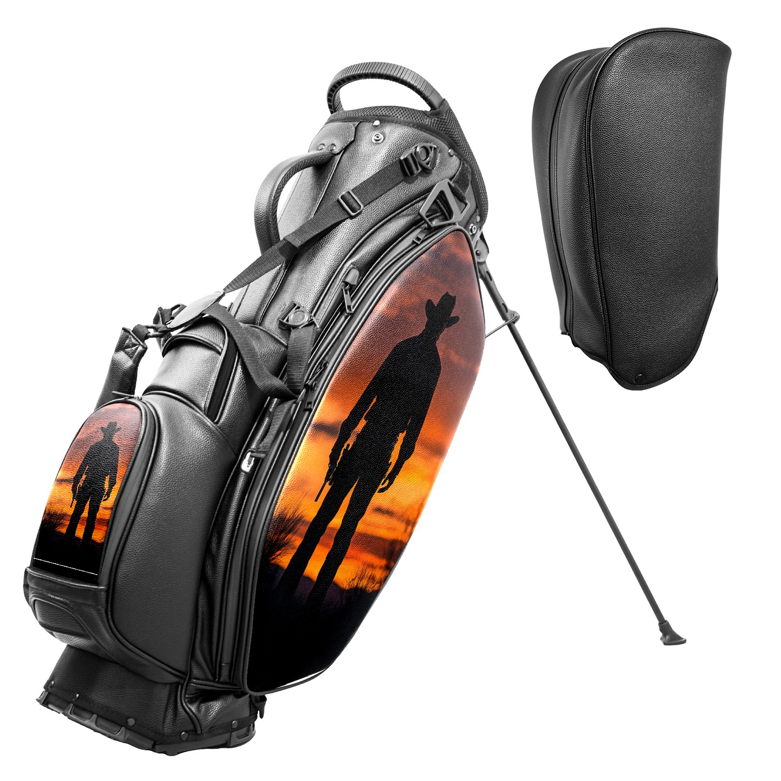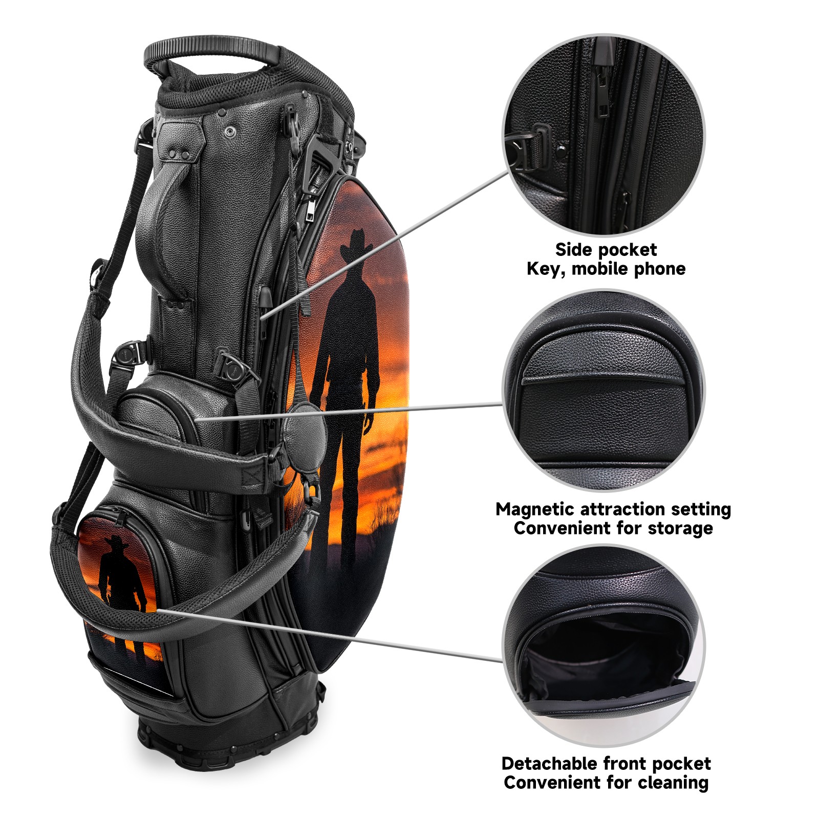 • <p>This golf bag combines versatility, durability, and quality, providing comprehensive protection and easy access for your golf clubs. Its precise dimensions of 130 x 37 x 31 cm (with rain cover) and 90 x 31 x 37 cm (without rain cover) strike the perfect balance between portability and storage capacity.The five-way head frame (with five-way top compartments) allows for strategic compartmentalization, allowing you to neatly organize your various clubs and separate them to protect them from bumps, scratches, and scuffs. Its versatile compartmental design features a spacious five-compartment structure, including a separate, full-size club compartment, to fully accommodate your clubs while protecting their integrity.This bag features a versatile storage system with multiple waterproof zippered pockets for securely storing golf accessories, as well as a dedicated insulated cooler pocket with excellent insulation to keep your drinks cold. The built-in rain cover effectively repels moisture, ensuring your clubs remain dry and protected even in wet weather. For enhanced carrying comfort, this bag features ergonomically designed, padded, breathable, adjustable shoulder straps and an adjustable chest strap to distribute shoulder pressure for easier and more comfortable carrying. A portable rear handle makes lifting and carrying easier.Quality is evident in every detail: double-stitched reinforced edges enhance structural stability, smooth and durable zippers ensure long-lasting reliability, and wear-resistant bottom rivets ensure secure placement on all terrains, effectively preventing wear and tear. Crafted from classic pebbled matte PU fabric, it perfectly complements both business and casual occasions. Available in black and white, it exudes understated elegance and sophistication.This golf bag, with its sturdy plastic base, combines premium quality and durability, making it the ideal companion for every golfer, whether heading to the course for a casual round or attending a business golf event.</p>