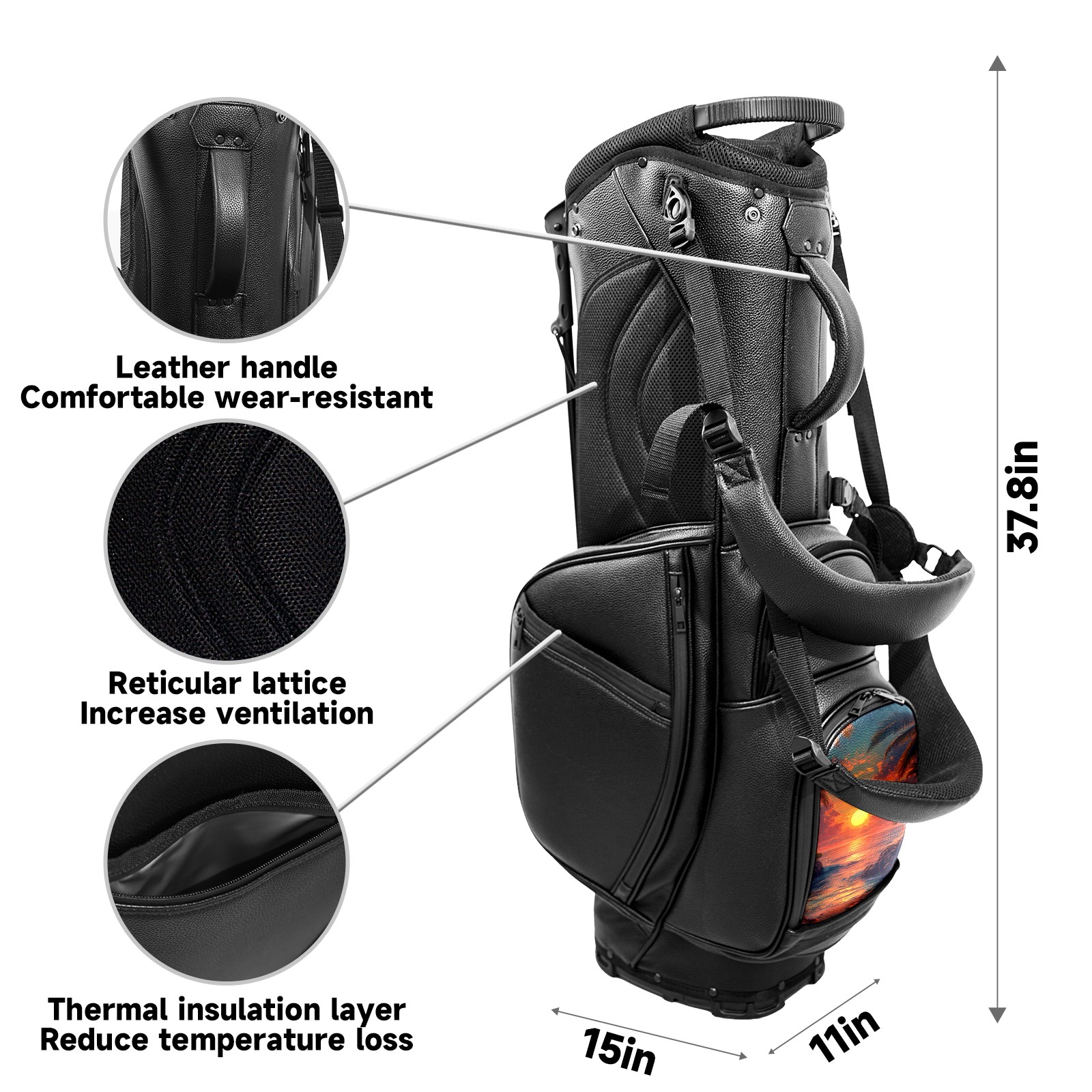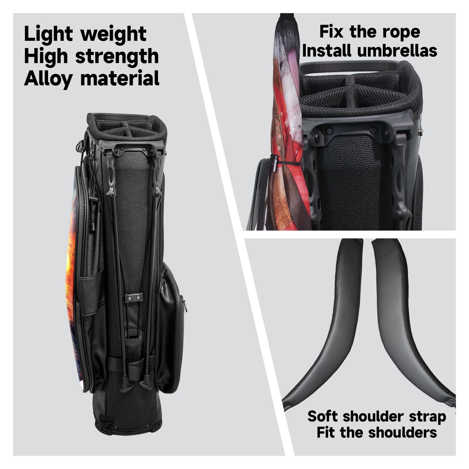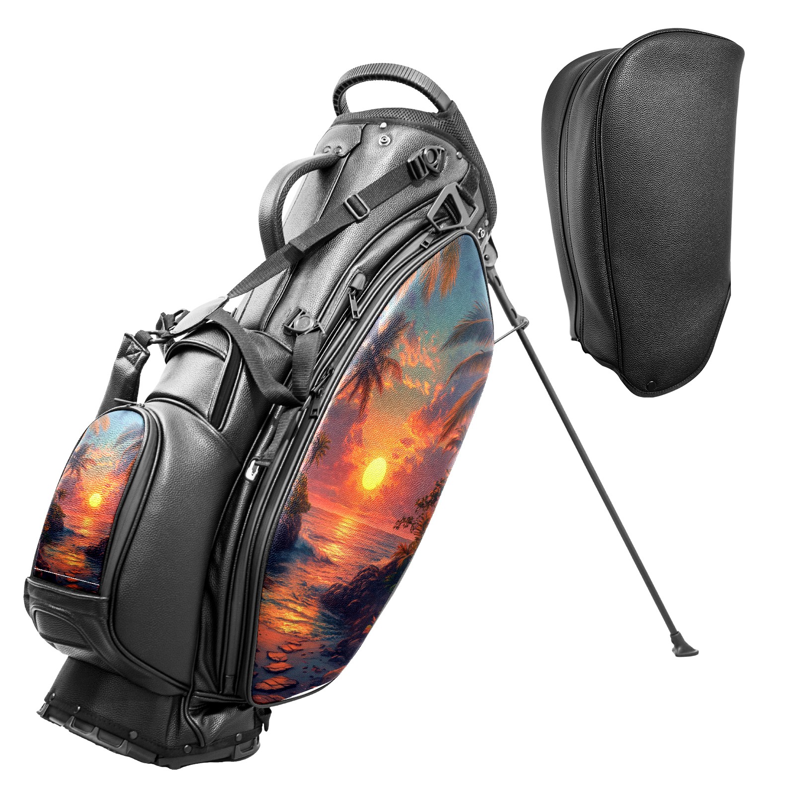 Lightweight Golf Stand Bag - 5-Way Top Divider, Golf Club Carry Bag with Adjustable Double Shoulder Straps, Zipper Storage Pockets + Rain Cover, Ideal for Men & Women Golfers Sunset Pattern