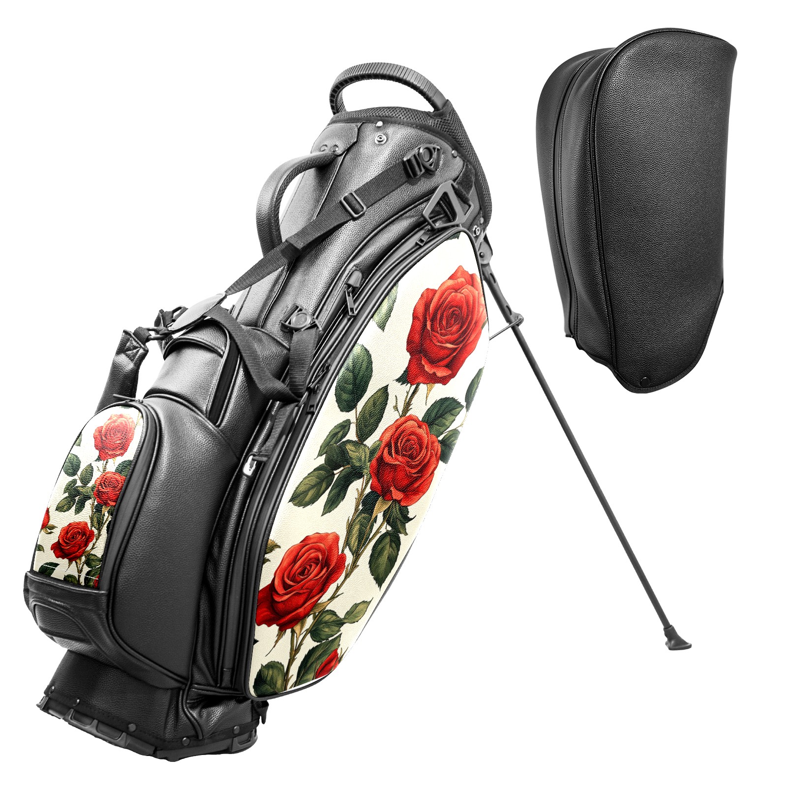 Lightweight Golf Stand Bag - 5-Way Top Divider, Golf Club Carry Bag with Adjustable Double Shoulder Straps, Zipper Storage Pockets + Rain Cover, Ideal for Men & Women Golfers Red Rose Pattern