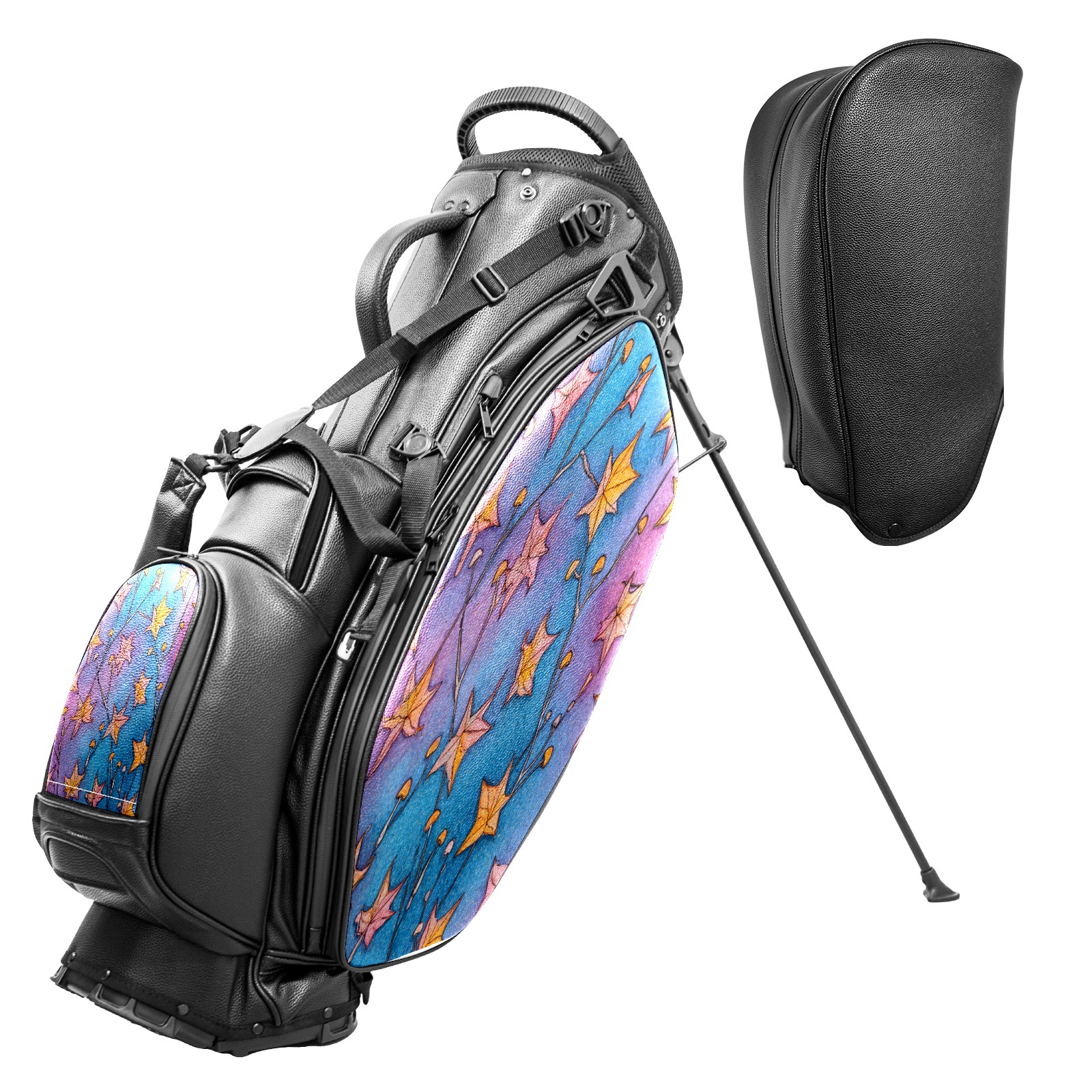 Lightweight Golf Stand Bag - 5-Way Top Divider, Golf Club Carry Bag with Adjustable Double Shoulder Straps, Zipper Storage Pockets + Rain Cover, Ideal for Men & Women Golfers Stars Leaf Blue
