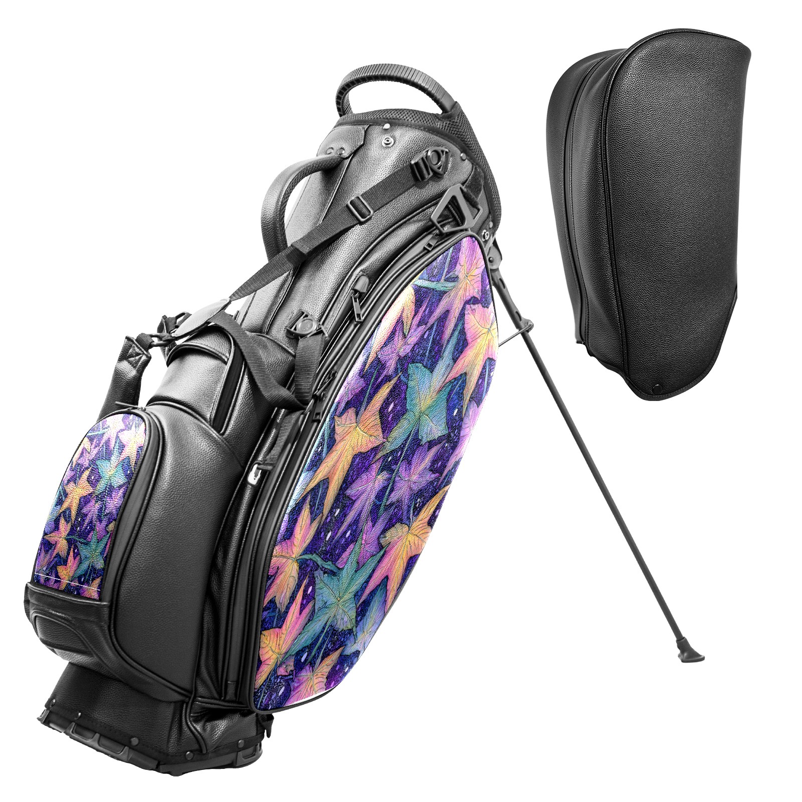 Lightweight Golf Stand Bag - 5-Way Top Divider, Golf Club Carry Bag with Adjustable Double Shoulder Straps, Zipper Storage Pockets + Rain Cover, Ideal for Men & Women Golfers Maple Leaf PurpleBlue