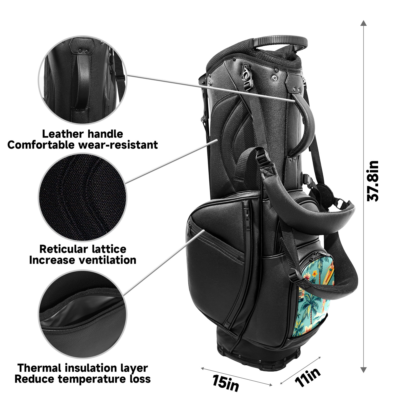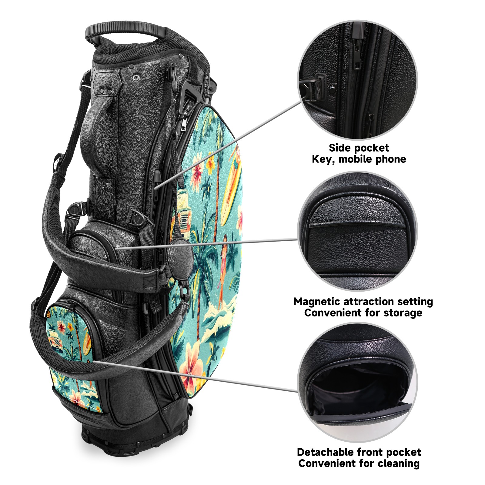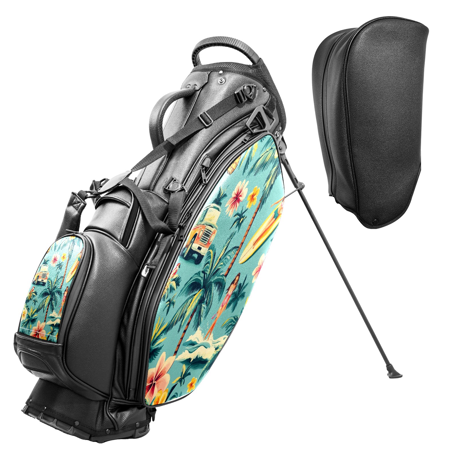 Lightweight Golf Stand Bag - 5-Way Top Divider, Golf Club Carry Bag with Adjustable Double Shoulder Straps, Zipper Storage Pockets + Rain Cover, Ideal for Men & Women Golfers Tropical Surf Girl