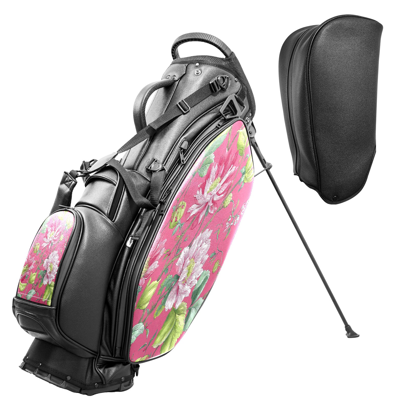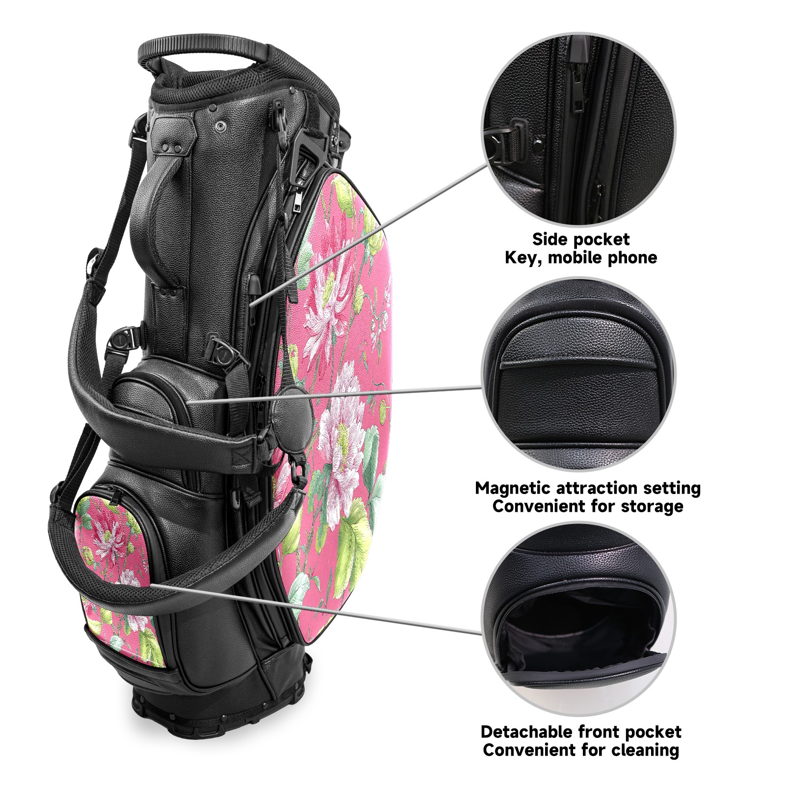 Lightweight Golf Stand Bag - 5-Way Top Divider, Golf Club Carry Bag with Adjustable Double Shoulder Straps, Zipper Storage Pockets + Rain Cover, Ideal for Men & Women Golfers Floral PinkGreen