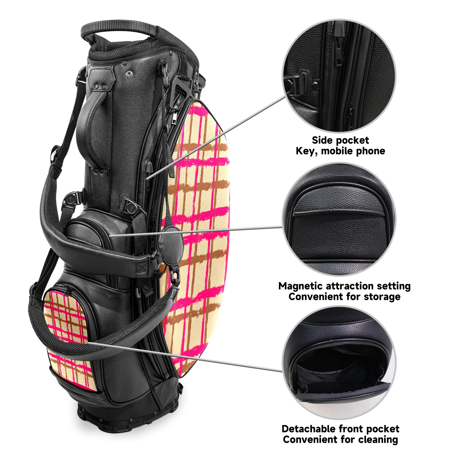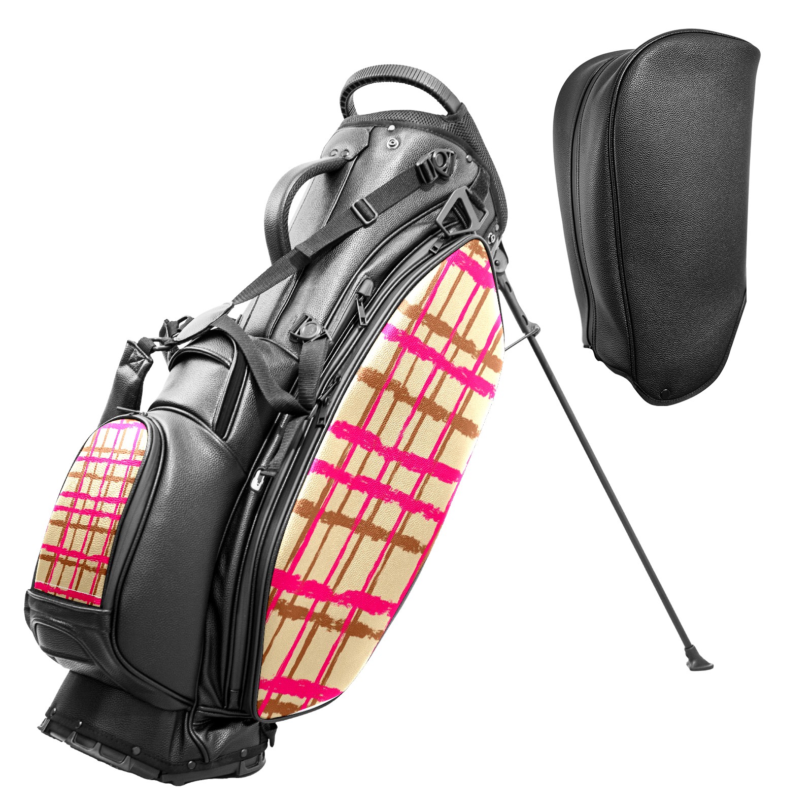 Lightweight Golf Stand Bag - 5-Way Top Divider, Golf Club Carry Bag with Adjustable Double Shoulder Straps, Zipper Storage Pockets + Rain Cover, Ideal for Men & Women Golfers Pink Brown Plaid