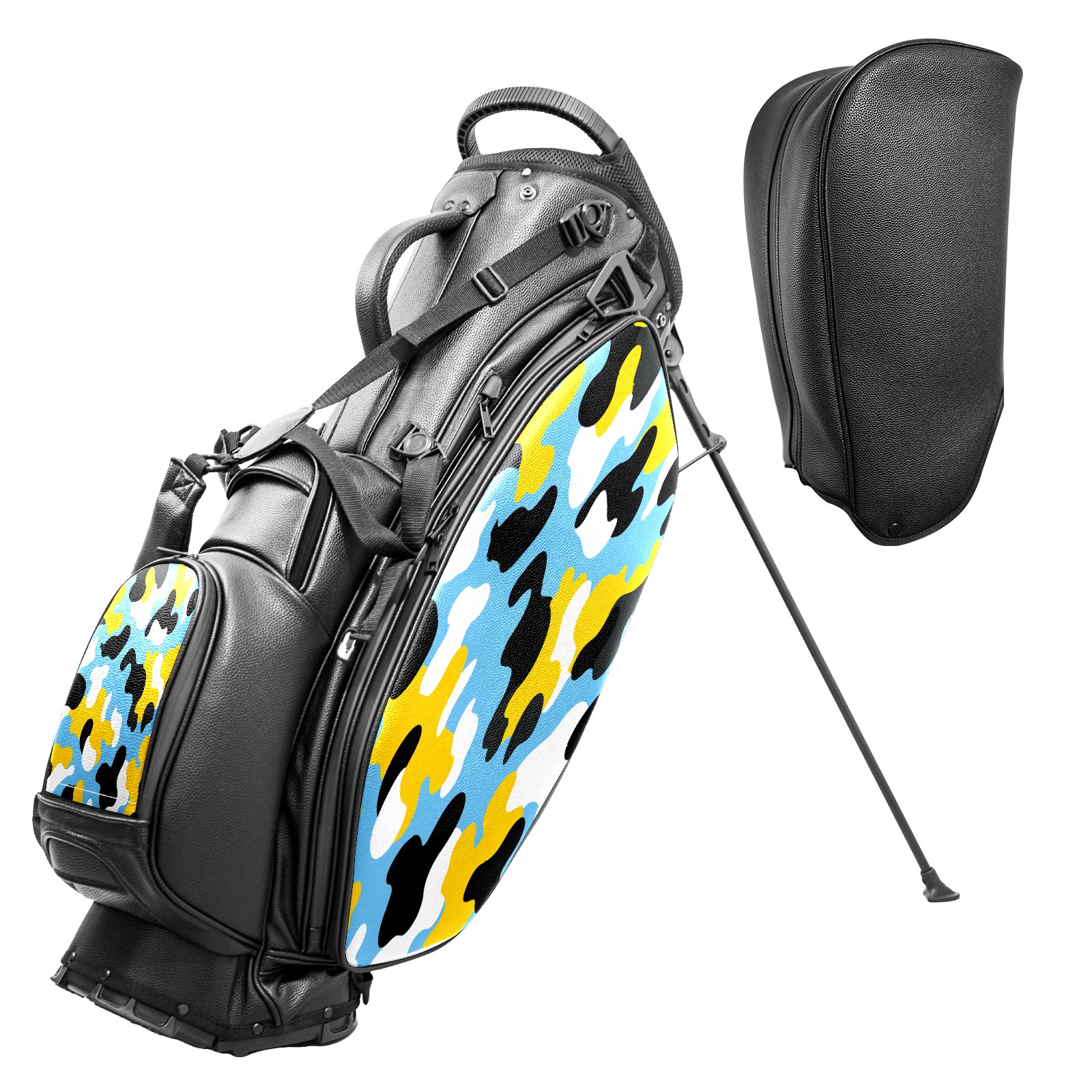 Lightweight Golf Stand Bag - 5-Way Top Divider, Golf Club Carry Bag with Adjustable Double Shoulder Straps, Zipper Storage Pockets + Rain Cover, Ideal for Men & Women Golfers Blue Yellow Camo