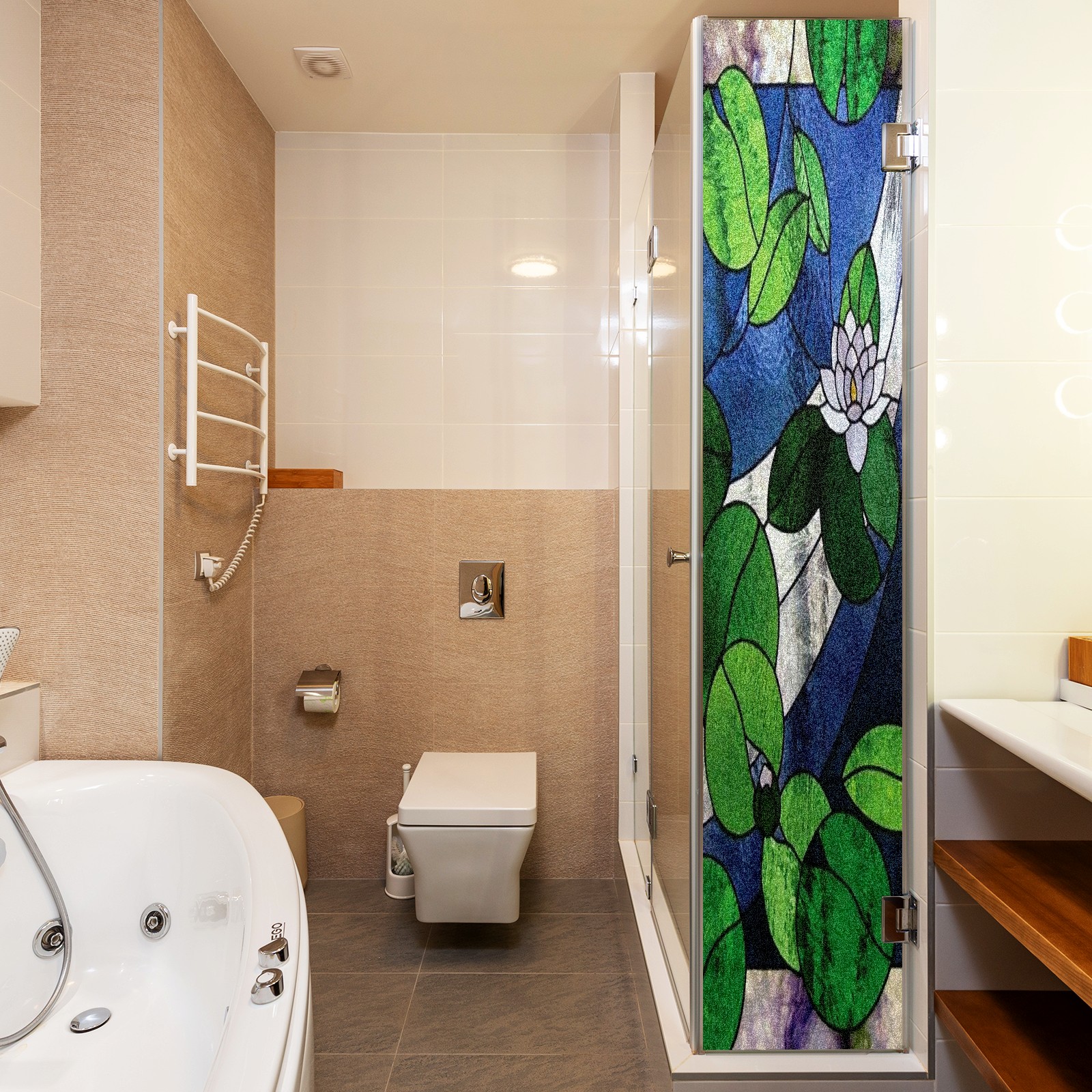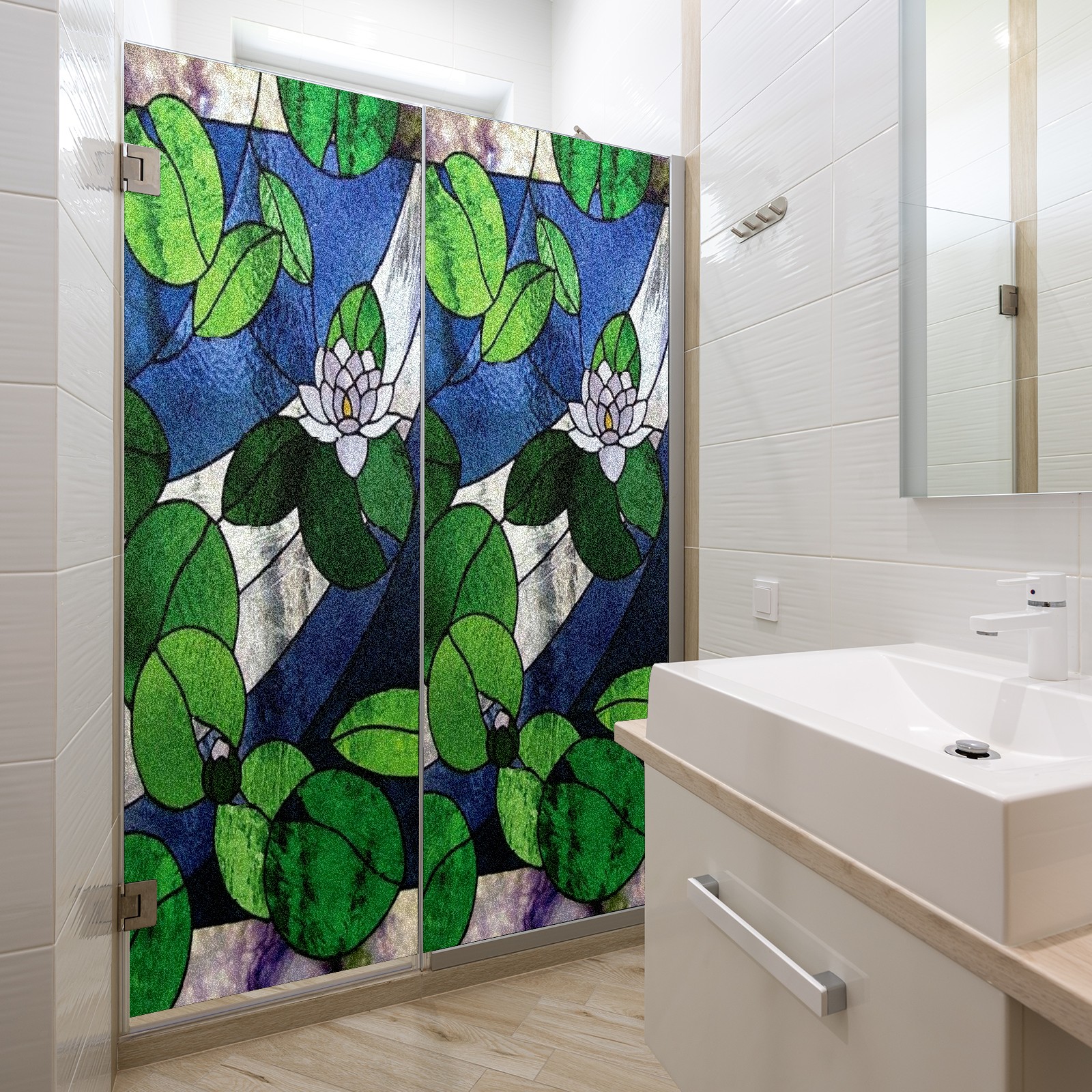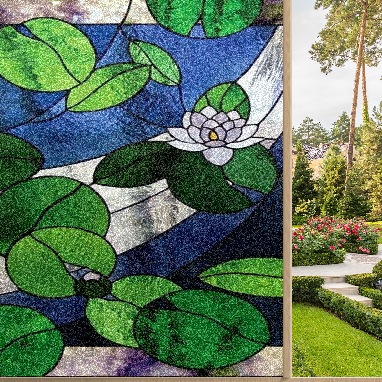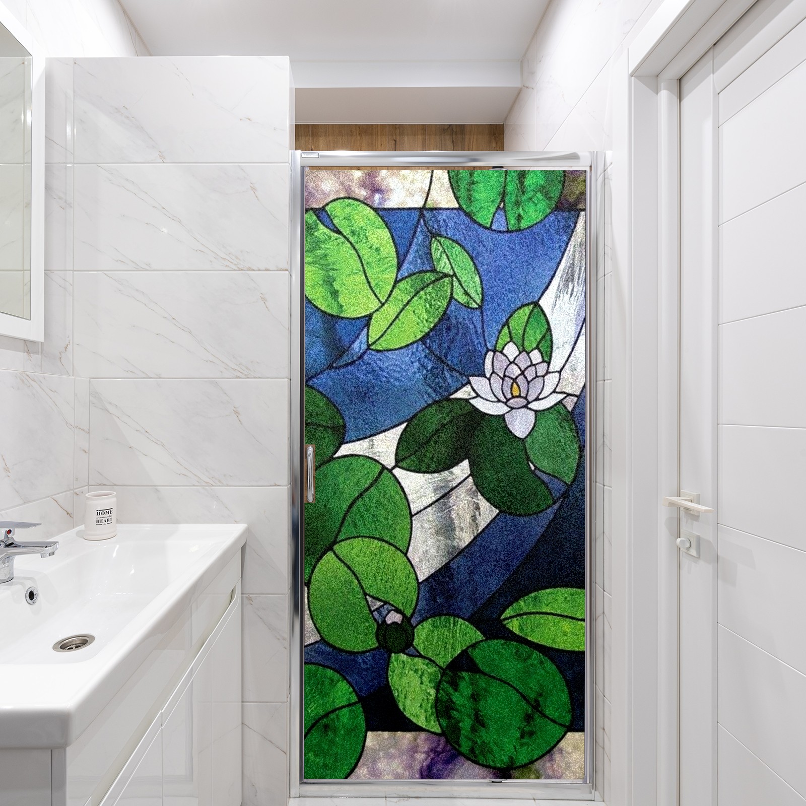 Window Privacy Film Frosted Stained Glass Film Decorative Static Cling for Bathroom Home Office Peel and Stick Window Film Water Lily(17.7x23.6in)