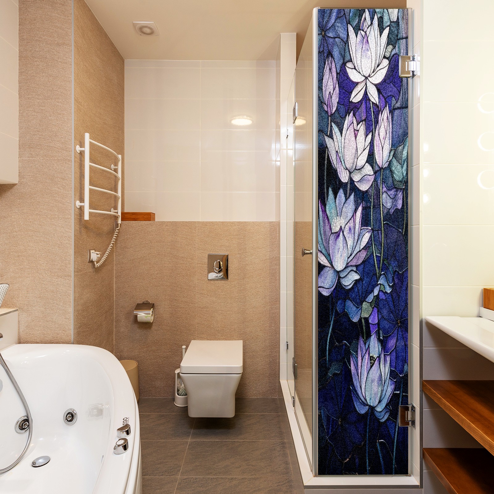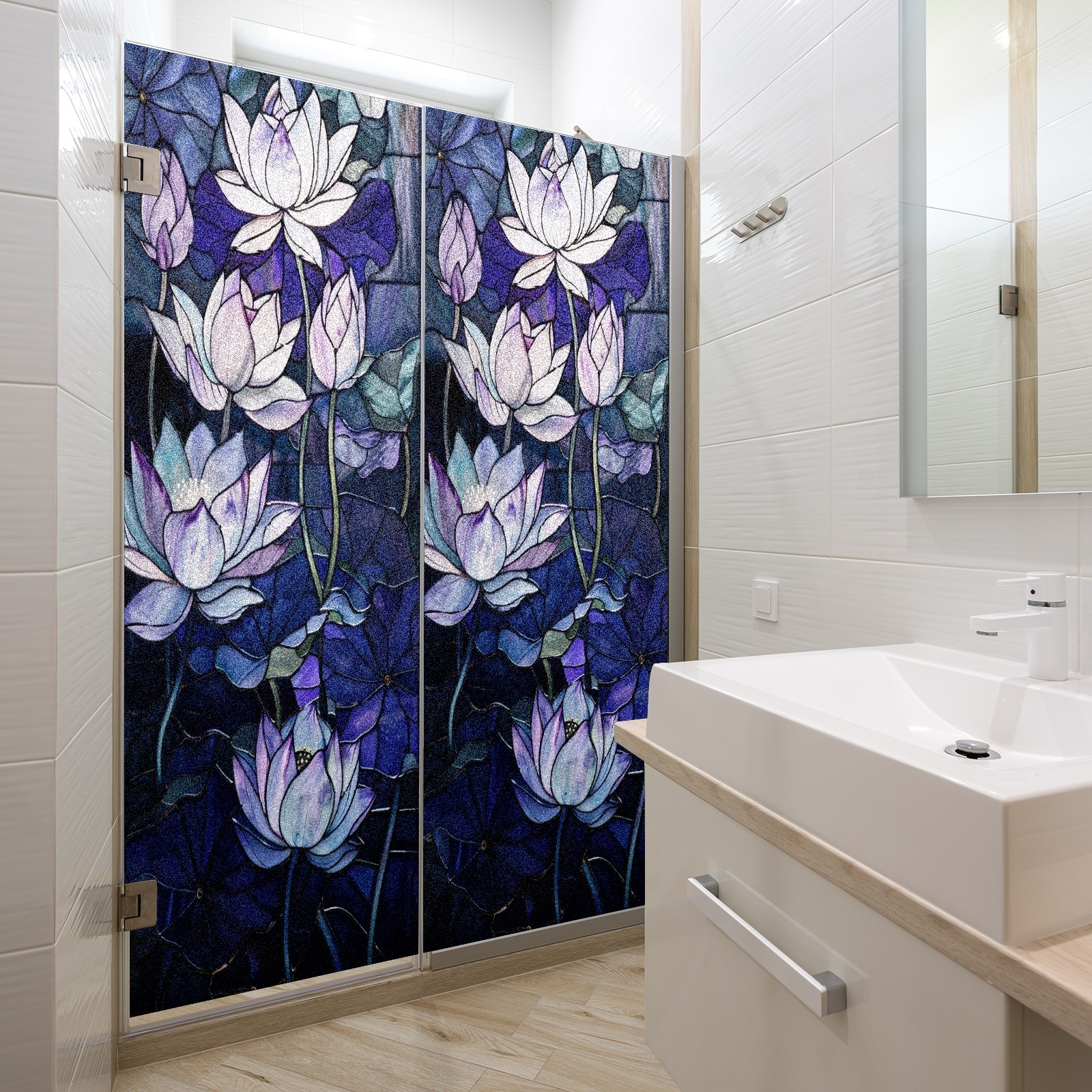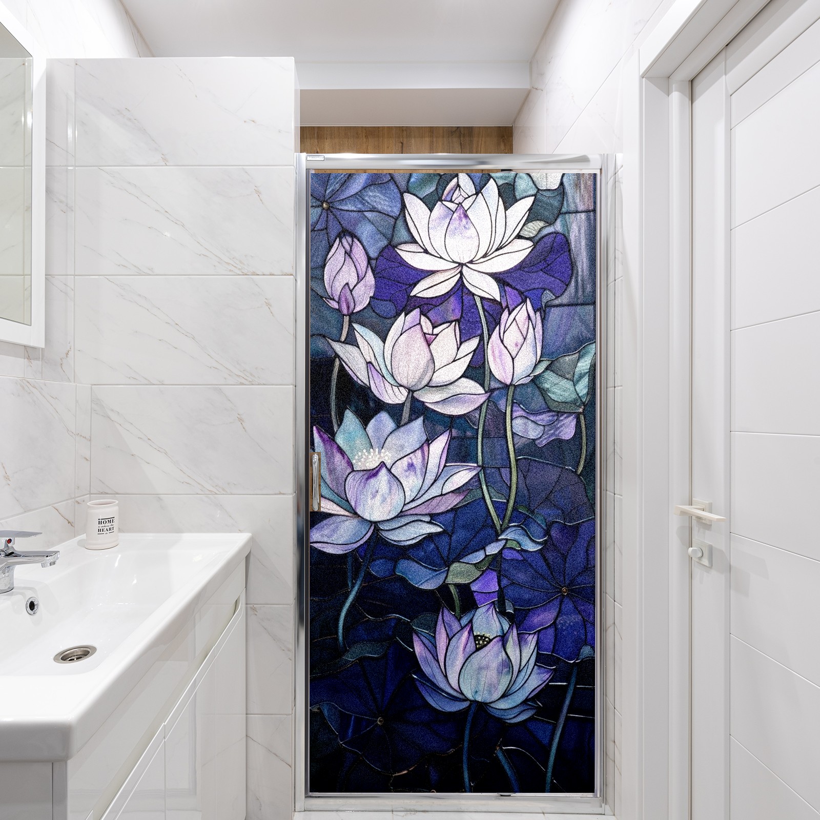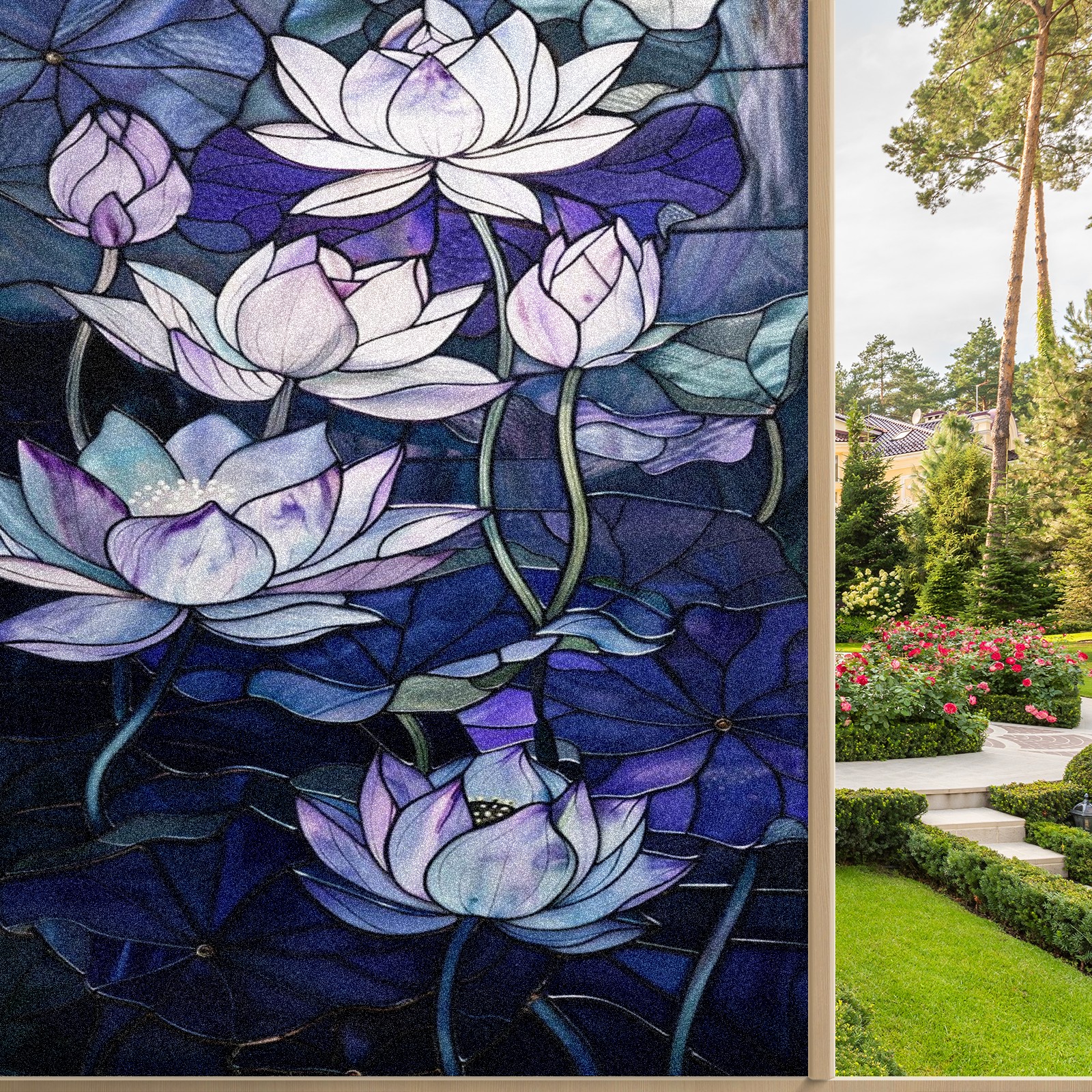 Window Privacy Film Frosted Stained Glass Film Decorative Static Cling for Bathroom Home Office Peel and Stick Window Film Purple Water Lily(17.7x23.6in)