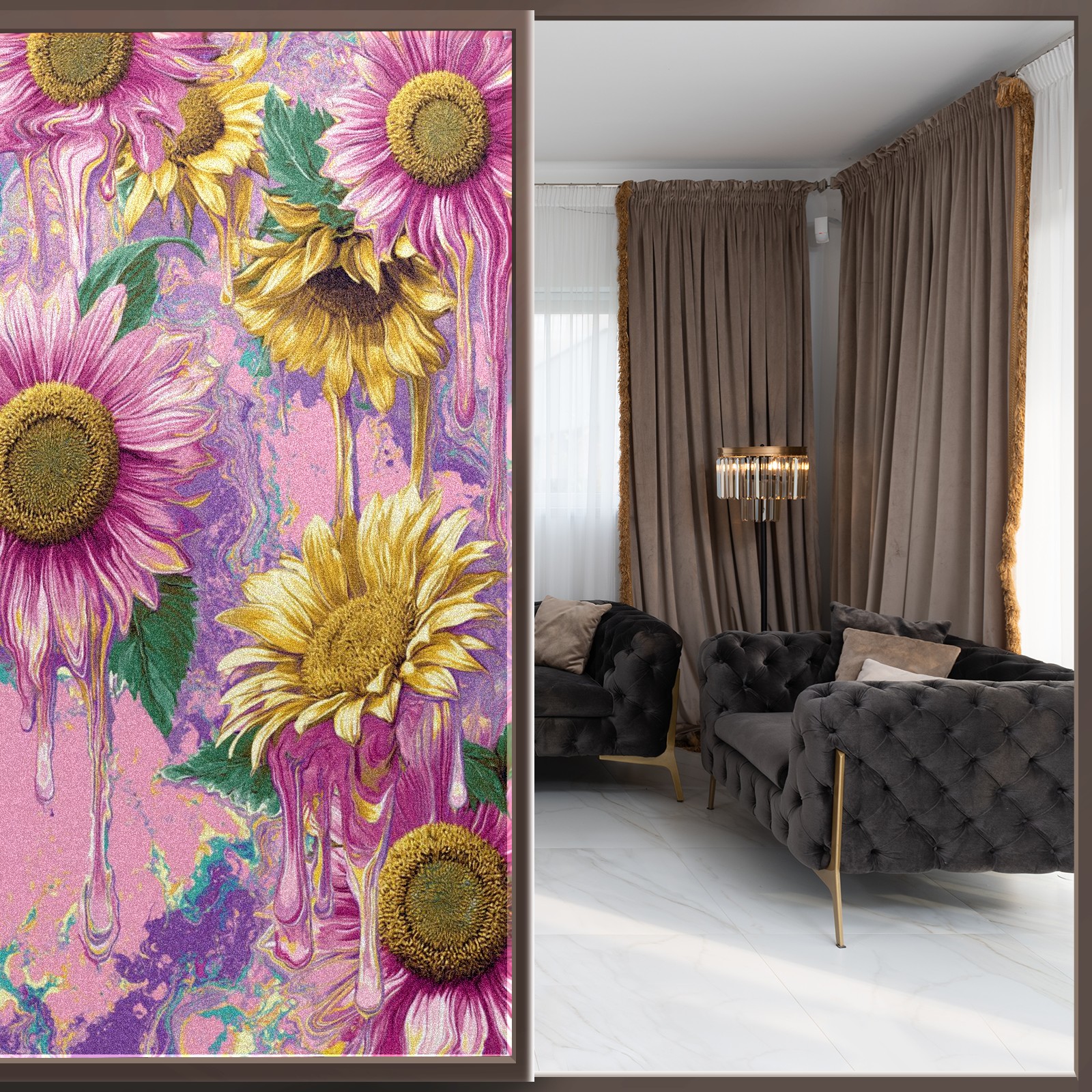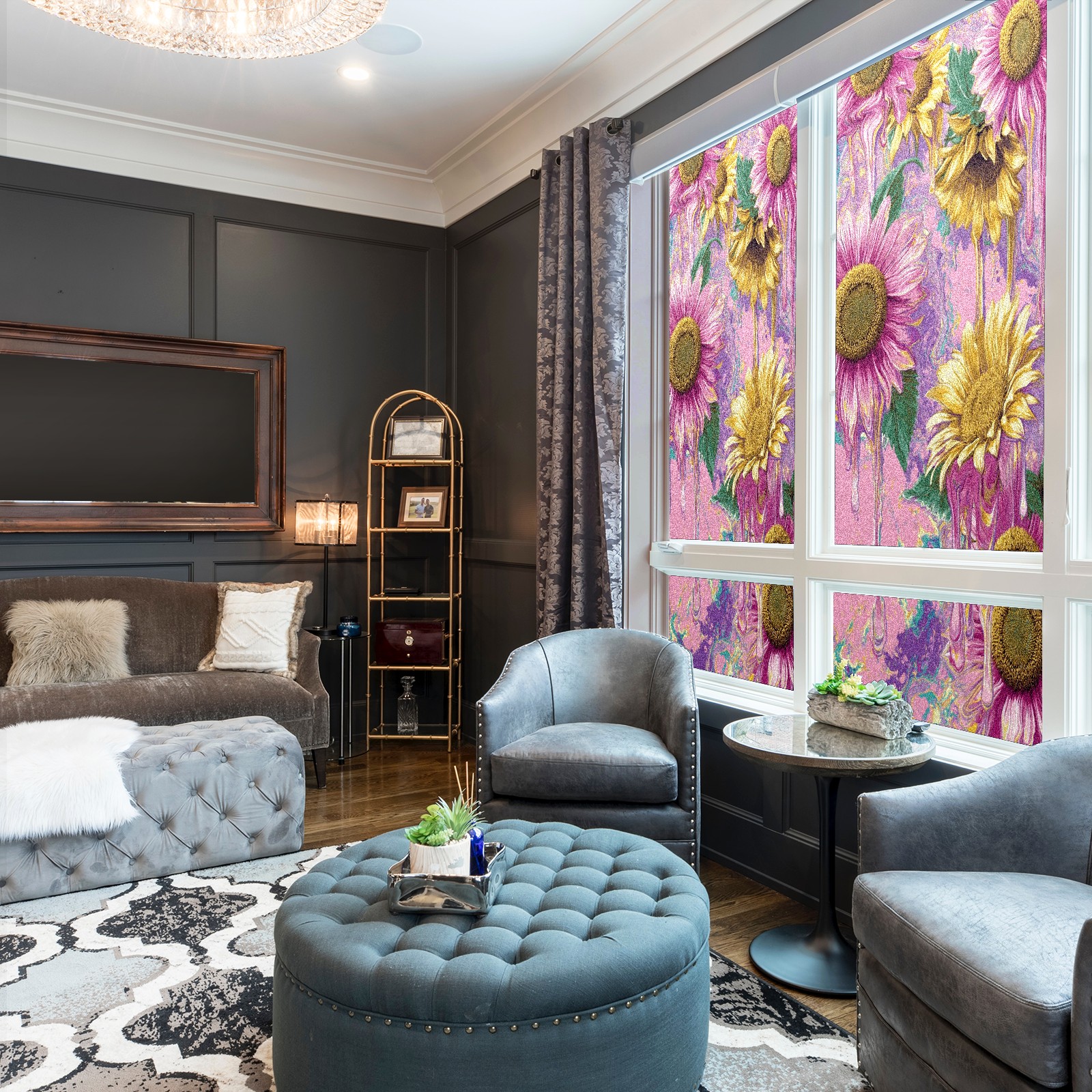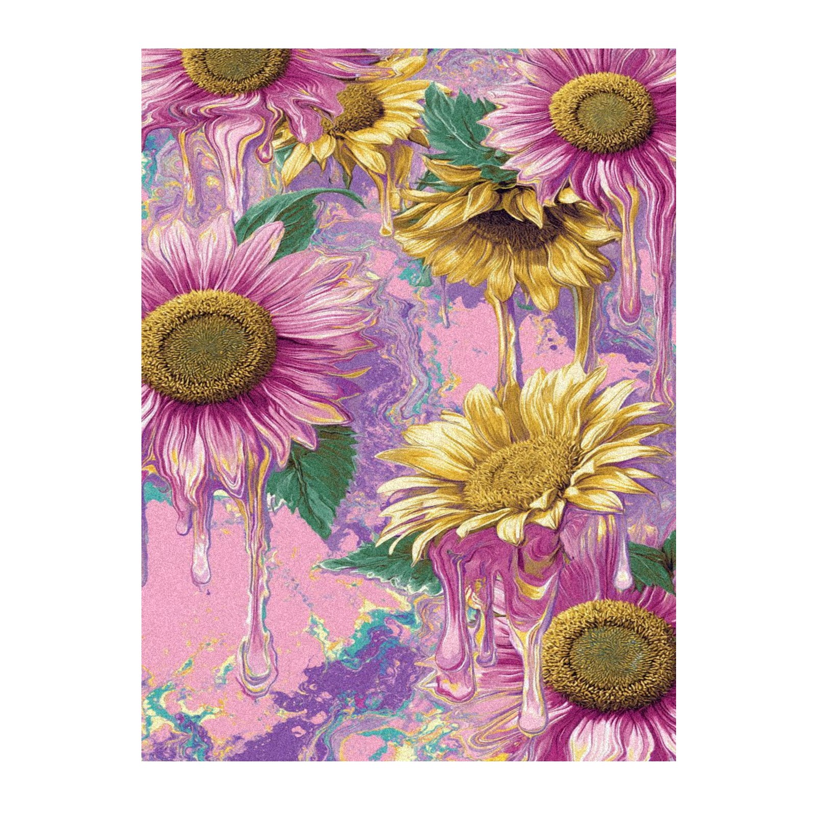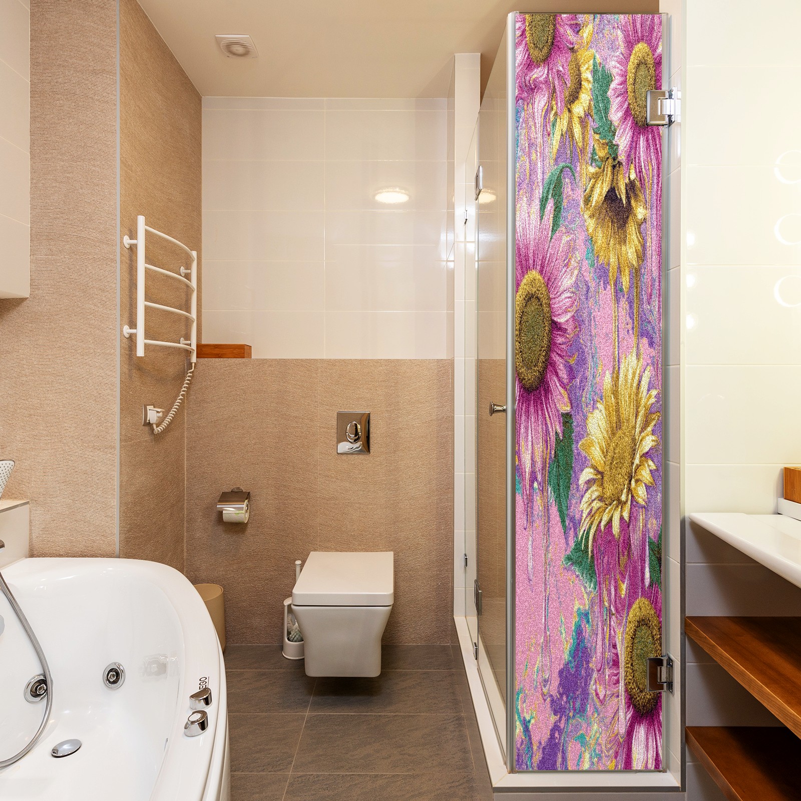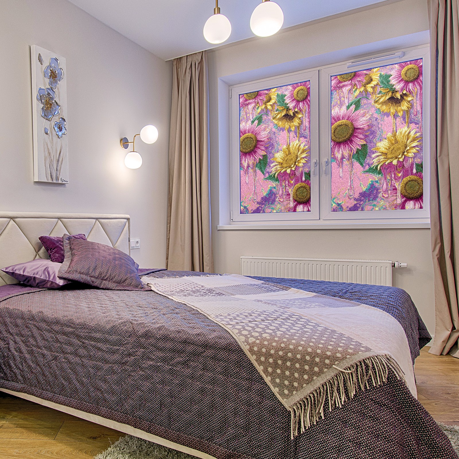Window Privacy Film Frosted Stained Glass Film Decorative Static Cling for Bathroom Home Office Peel and Stick Window Film Oil Painting Art - Pink Sunflowers(17.7x23.6in)