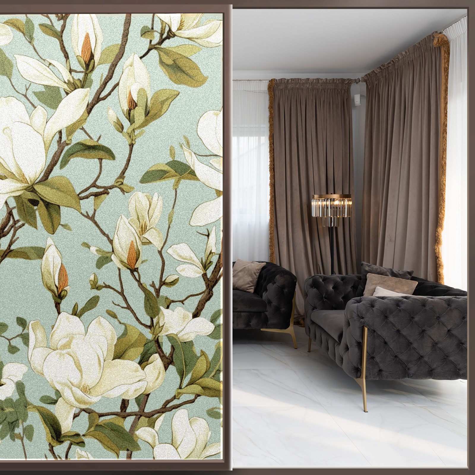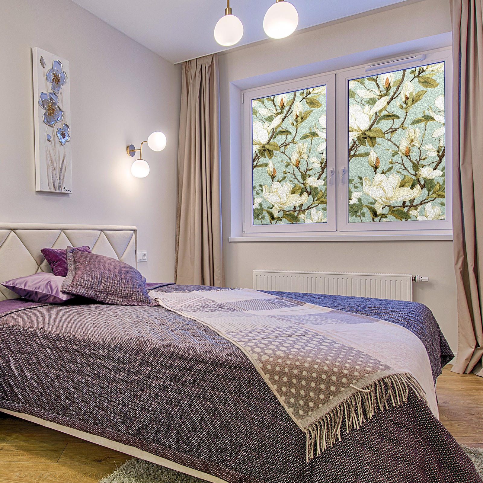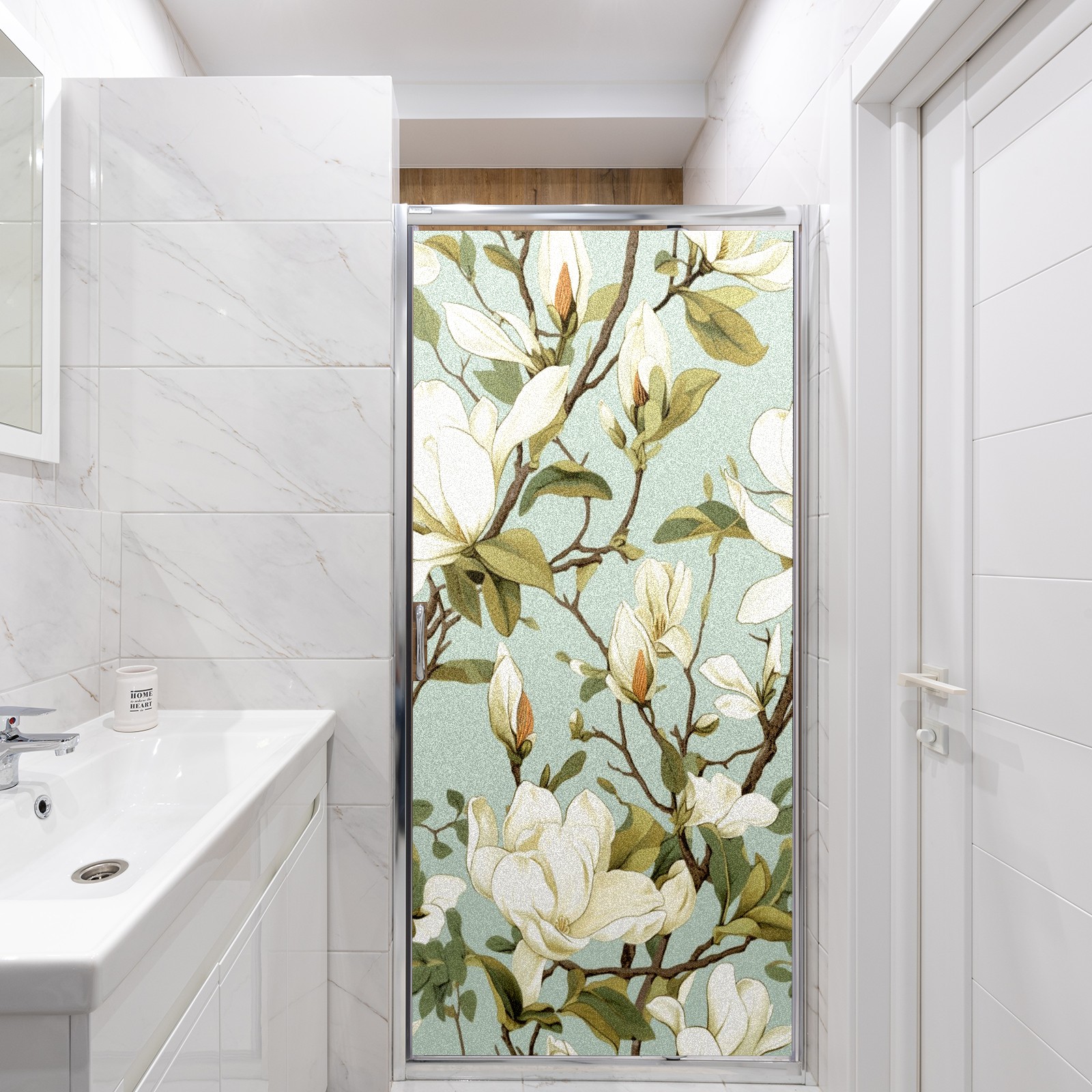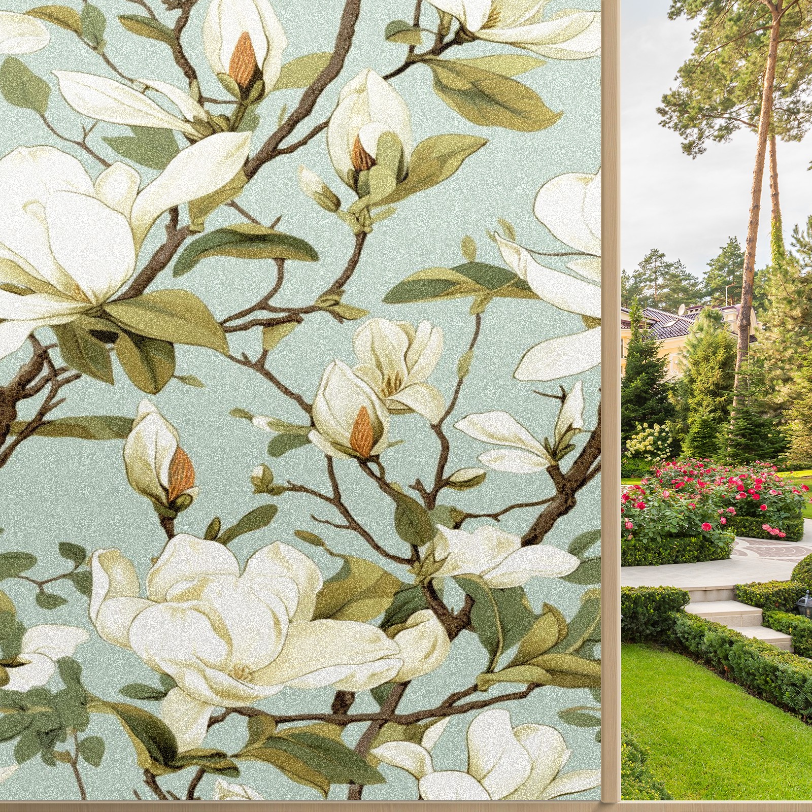 Window Privacy Film Frosted Stained Glass Film Decorative Static Cling for Bathroom Home Office Peel and Stick Window Film Magnolia(17.7x23.6in)