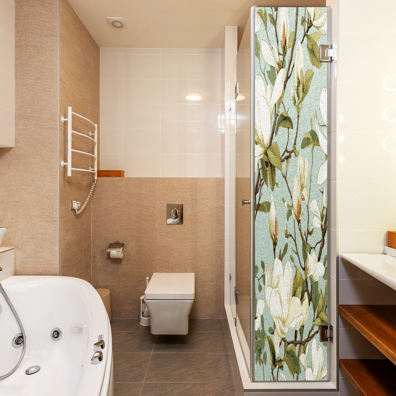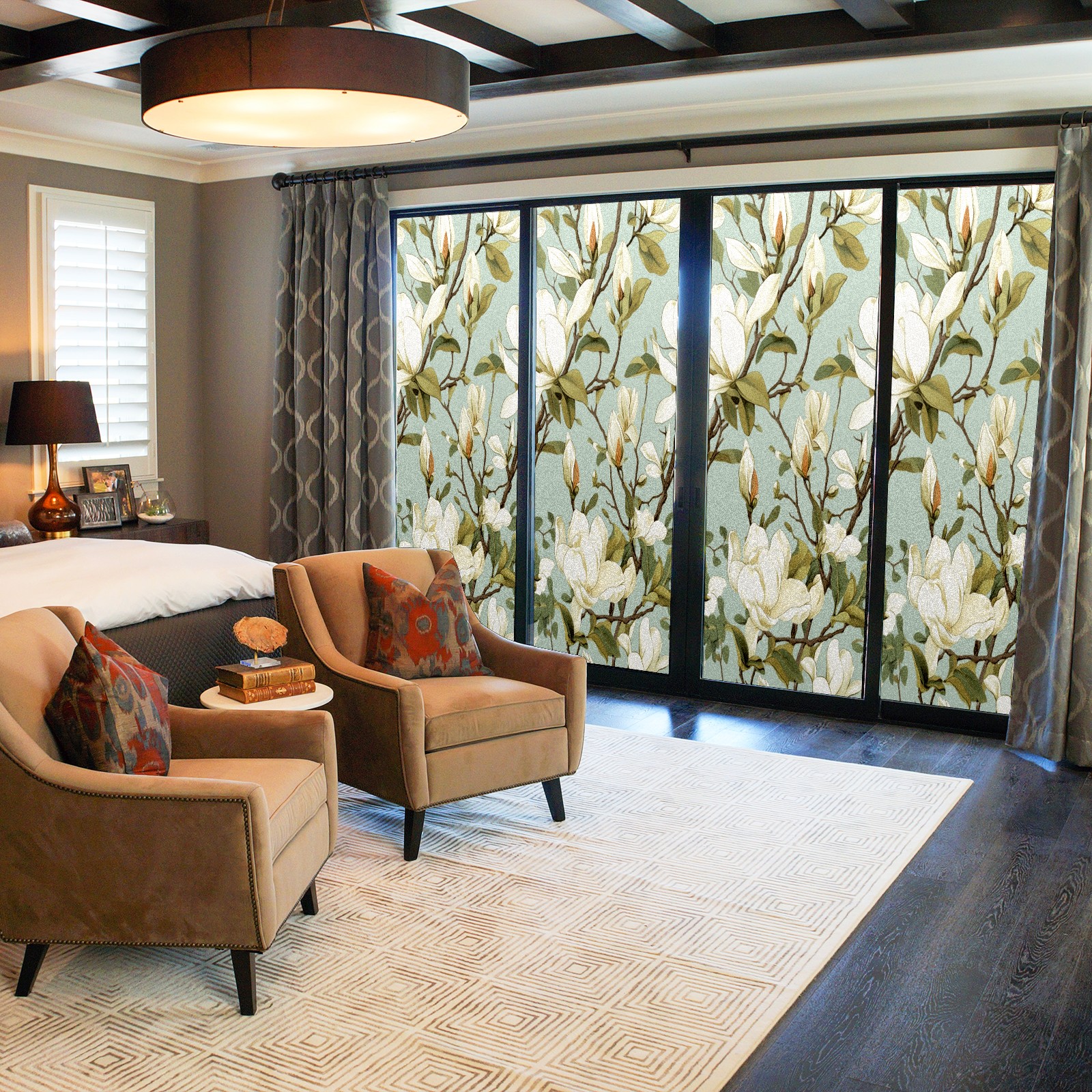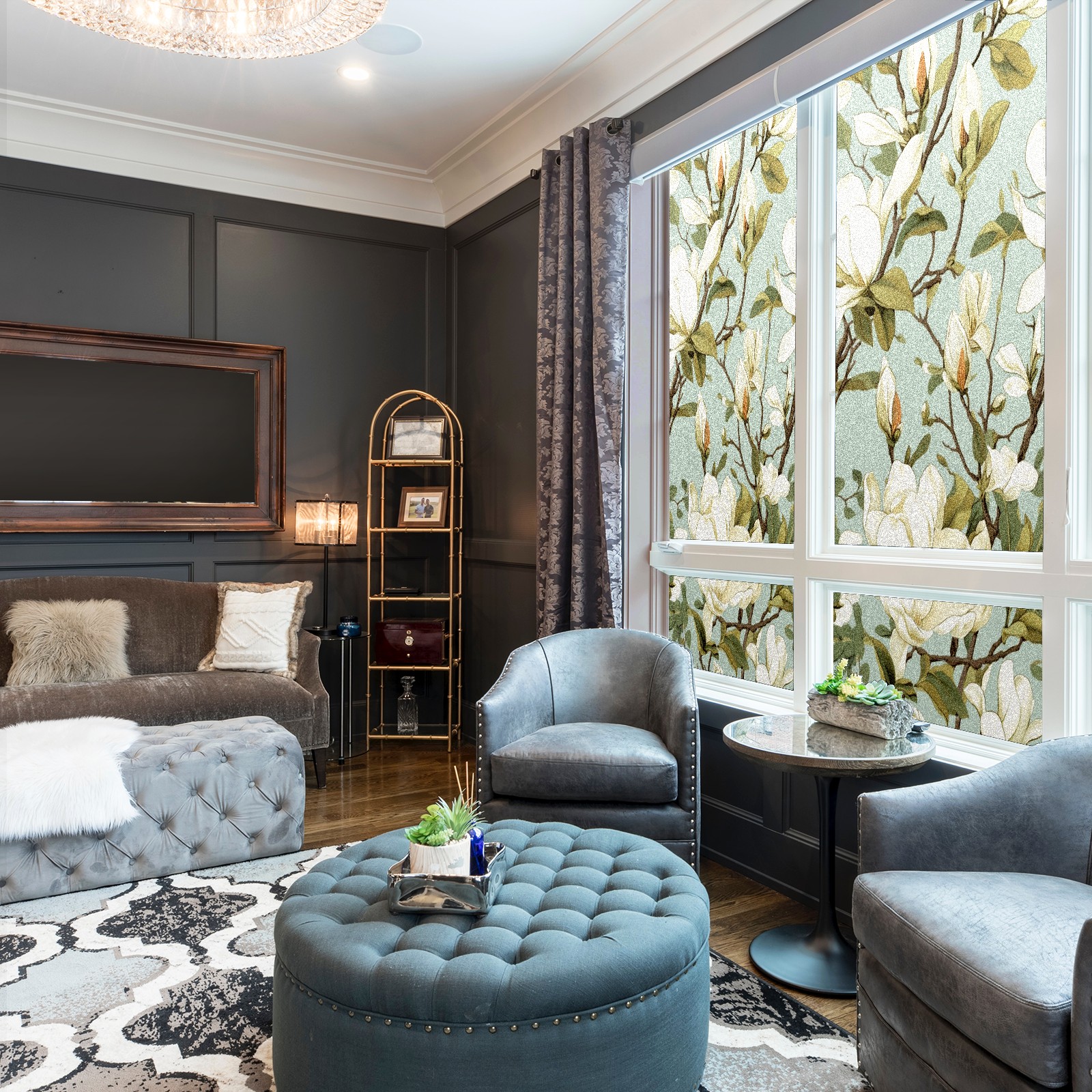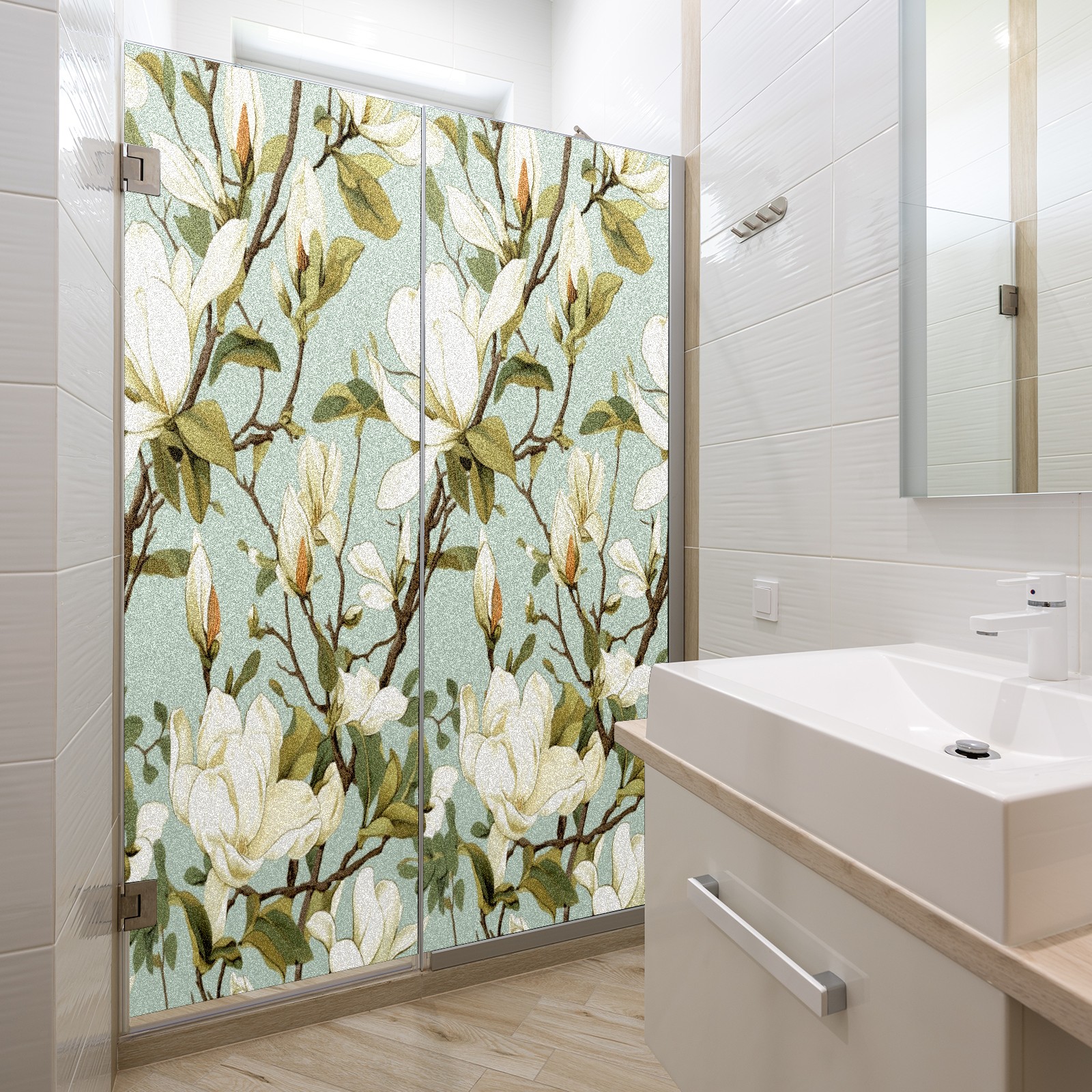 Window Privacy Film Frosted Stained Glass Film Decorative Static Cling for Bathroom Home Office Peel and Stick Window Film Magnolia(17.7x23.6in)