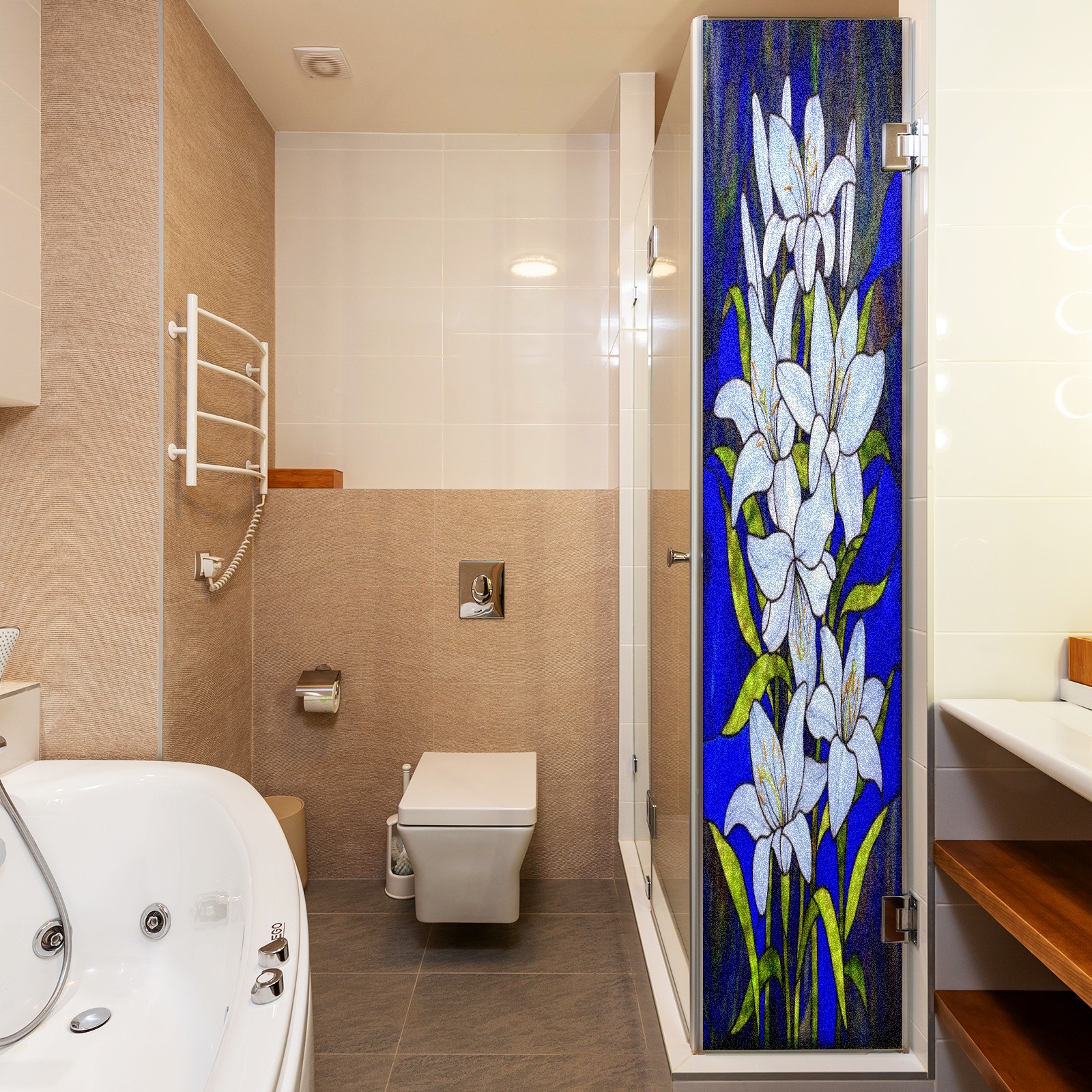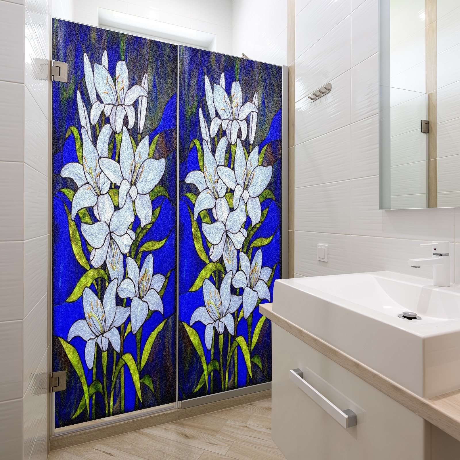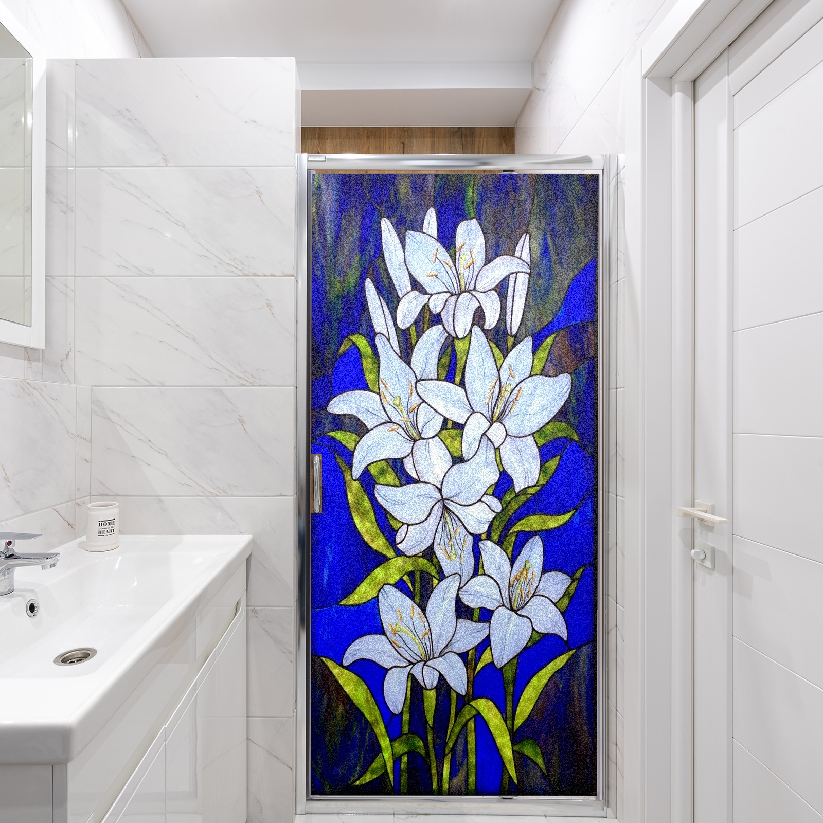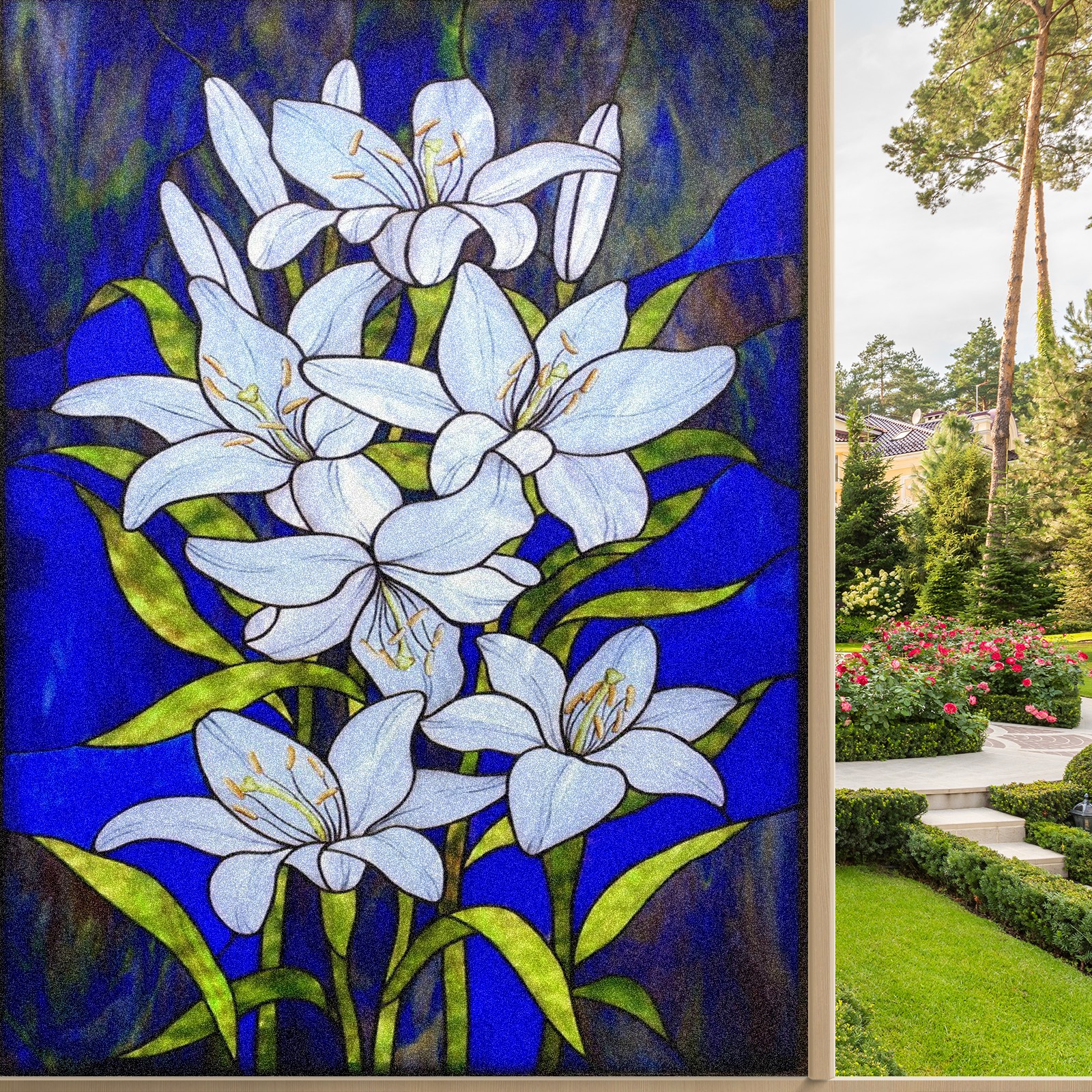 Window Privacy Film Frosted Stained Glass Film Decorative Static Cling for Bathroom Home Office Peel and Stick Window Film Lily(17.7x23.6in)