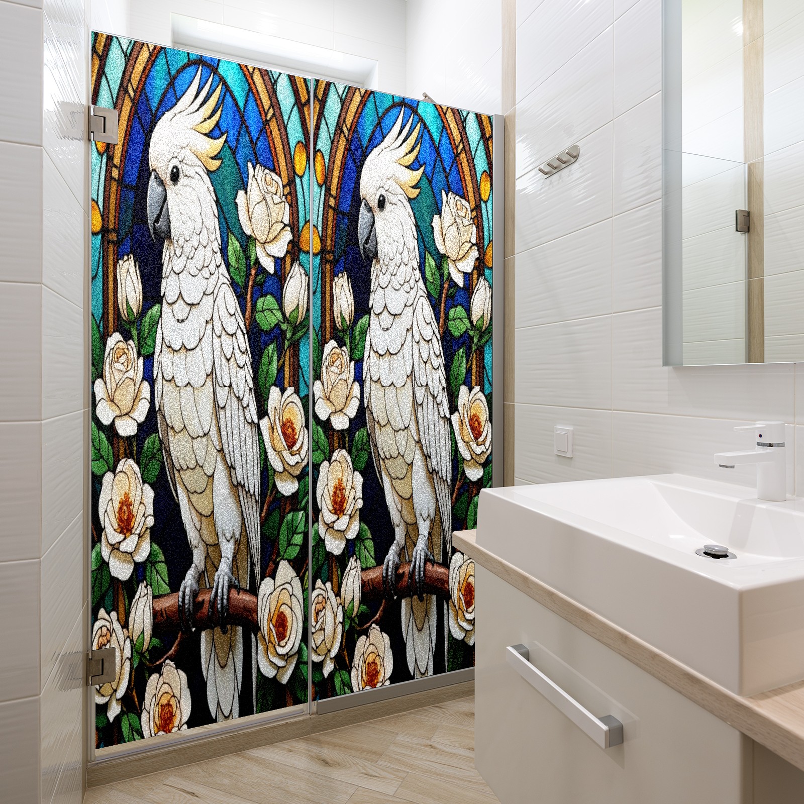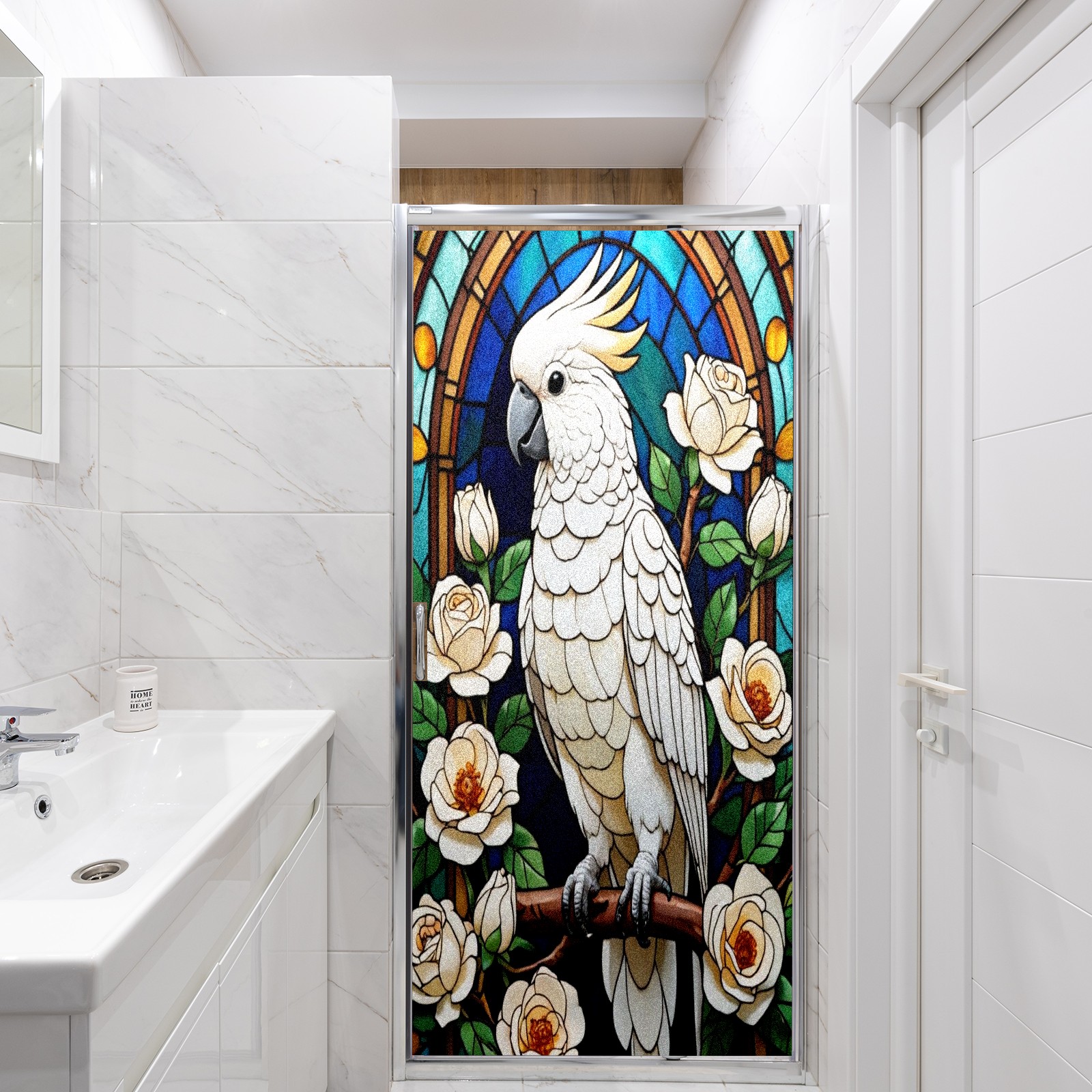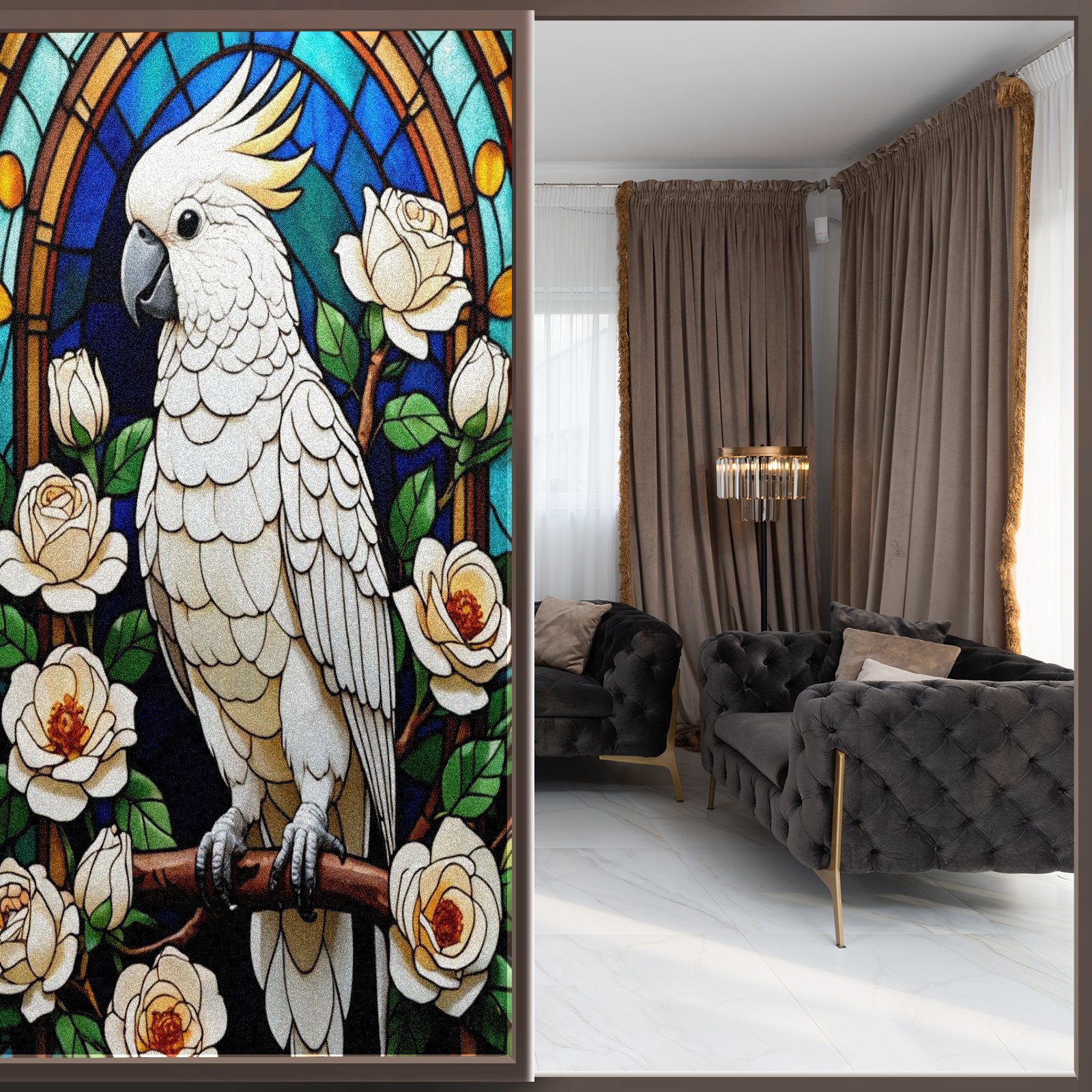 Window Privacy Film Frosted Stained Glass Film Decorative Static Cling for Bathroom Home Office Peel and Stick Window Film Parrot(17.7x23.6in)