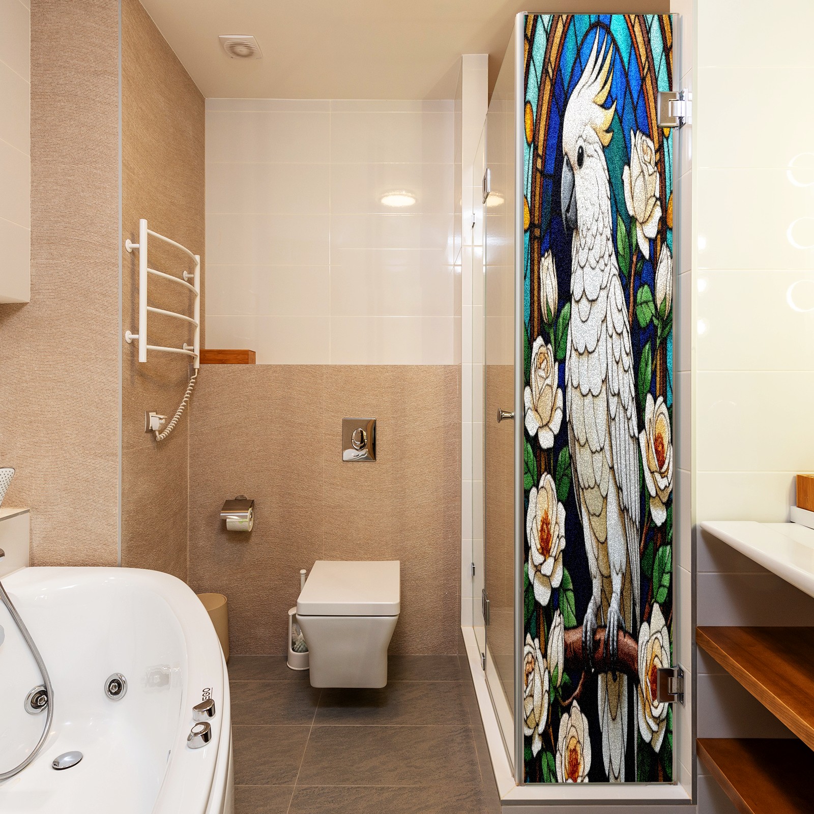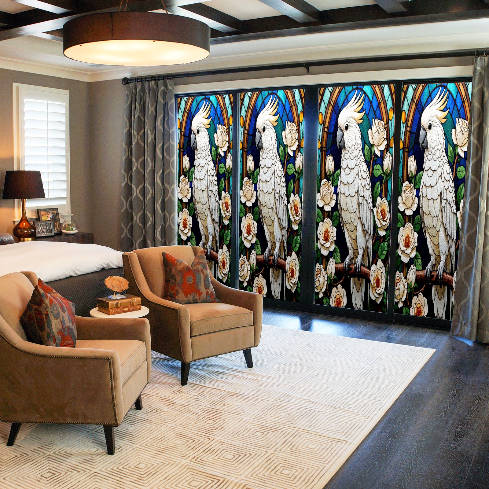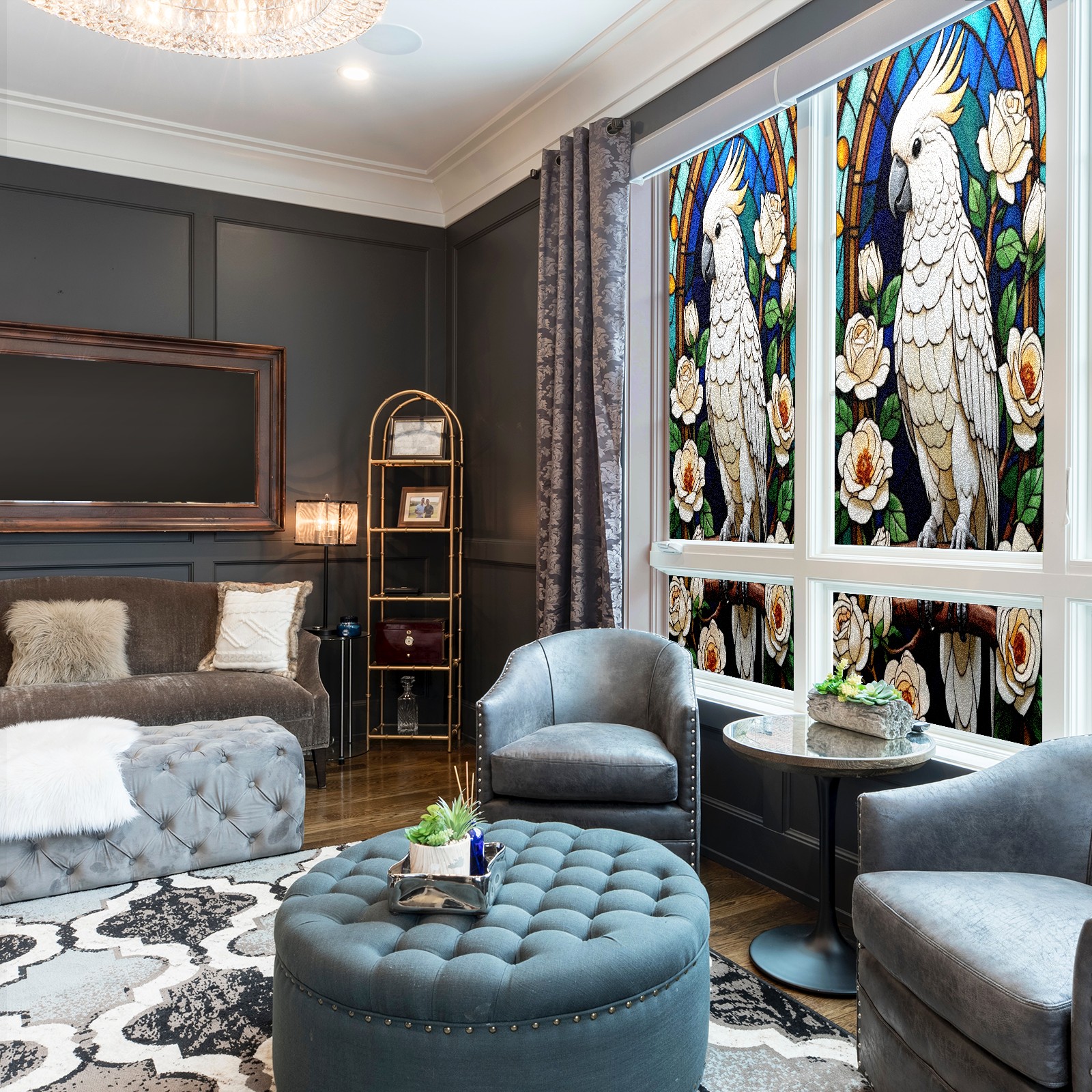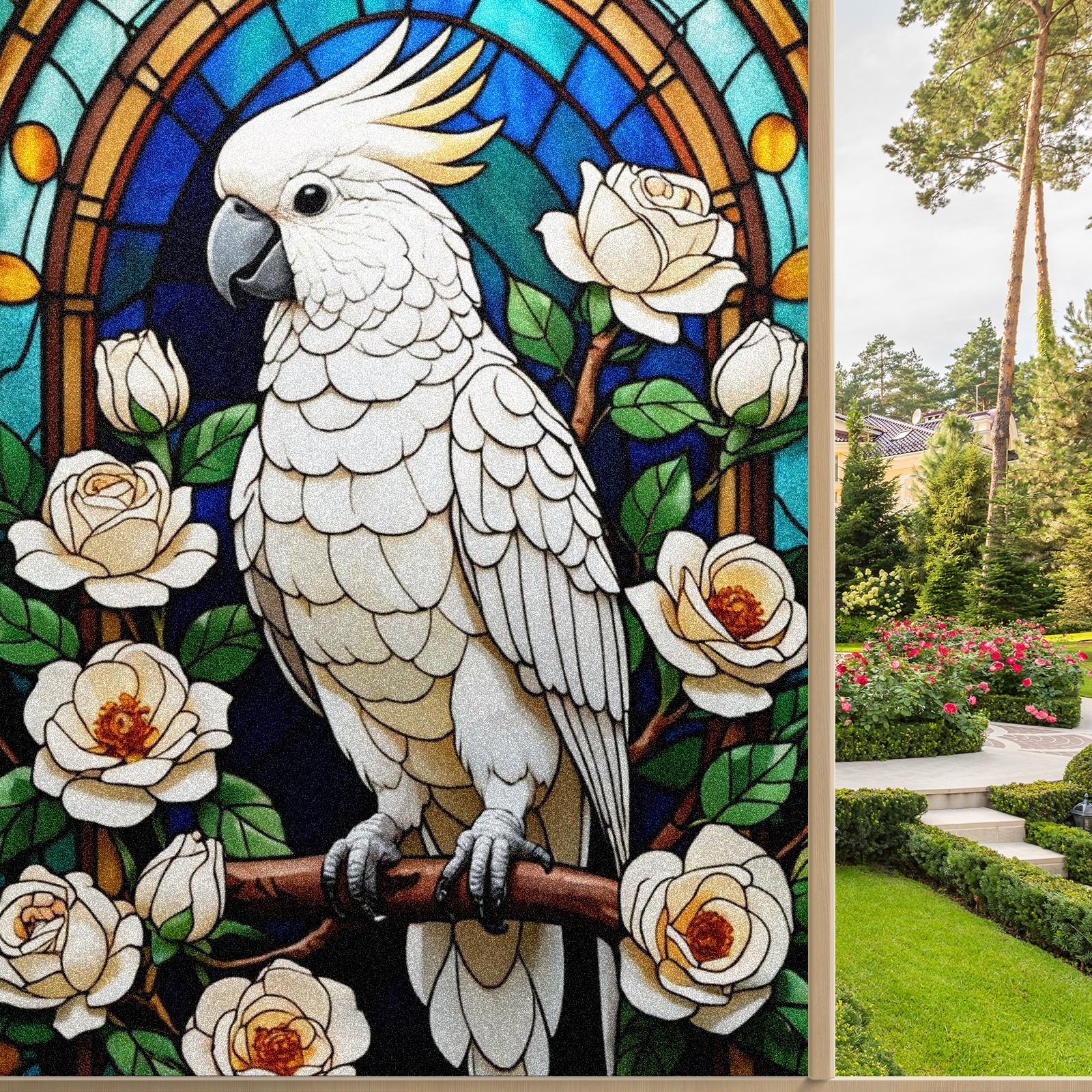 Window Privacy Film Frosted Stained Glass Film Decorative Static Cling for Bathroom Home Office Peel and Stick Window Film Parrot(17.7x23.6in)