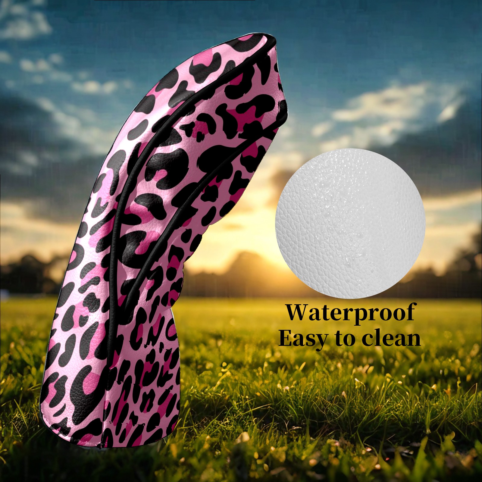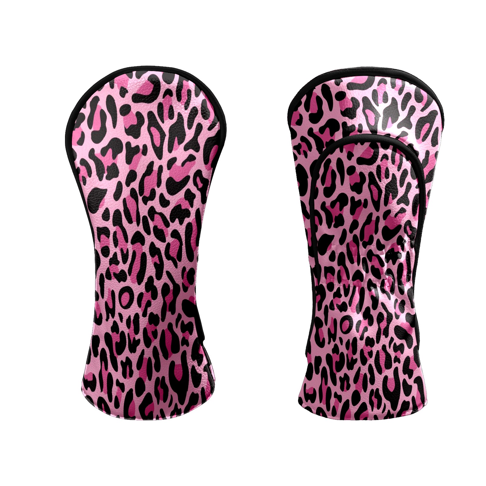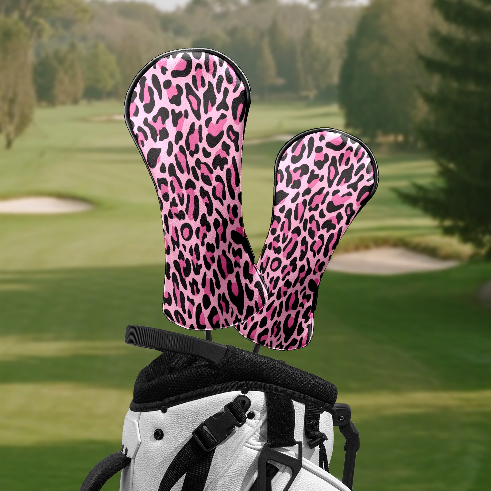 Golf Head Covers for Woods and Driver Waterproof Leather Golf Club Head Covers for Women Men Golf Driver Fairway Wood Headcover Pink Black Leopard Print