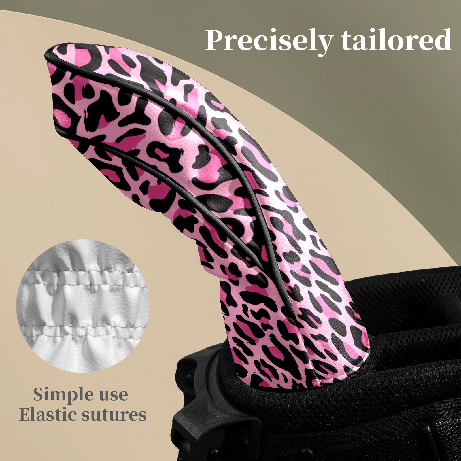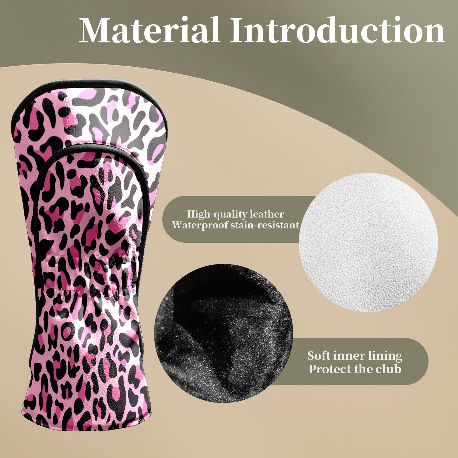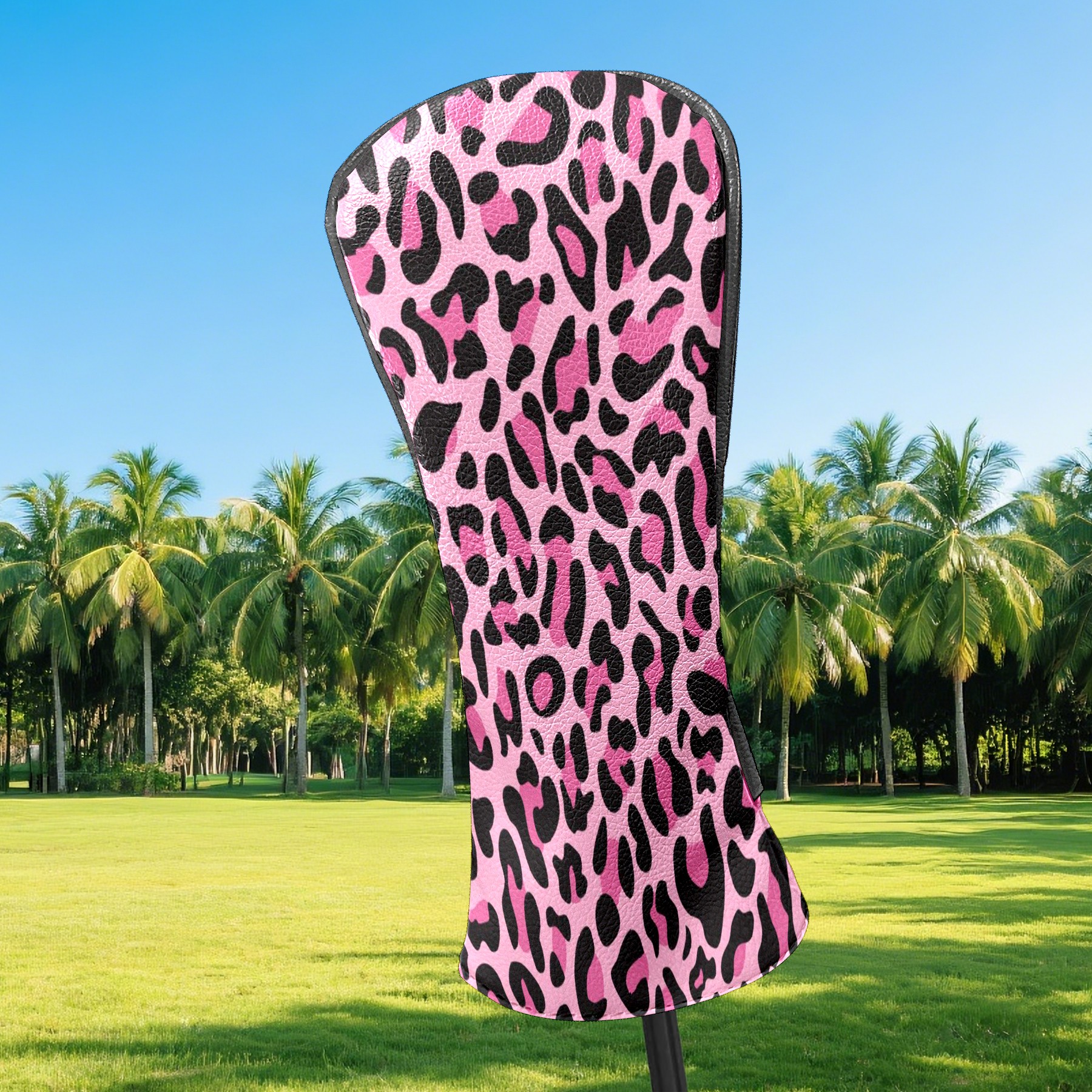 Golf Head Covers for Woods and Driver Waterproof Leather Golf Club Head Covers for Women Men Golf Driver Fairway Wood Headcover Pink Black Leopard Print