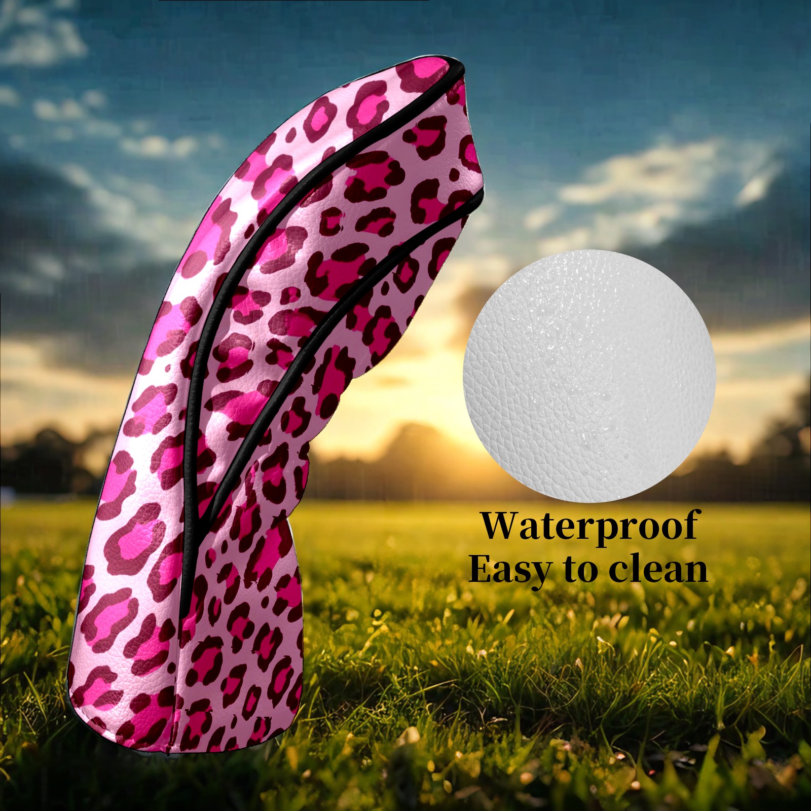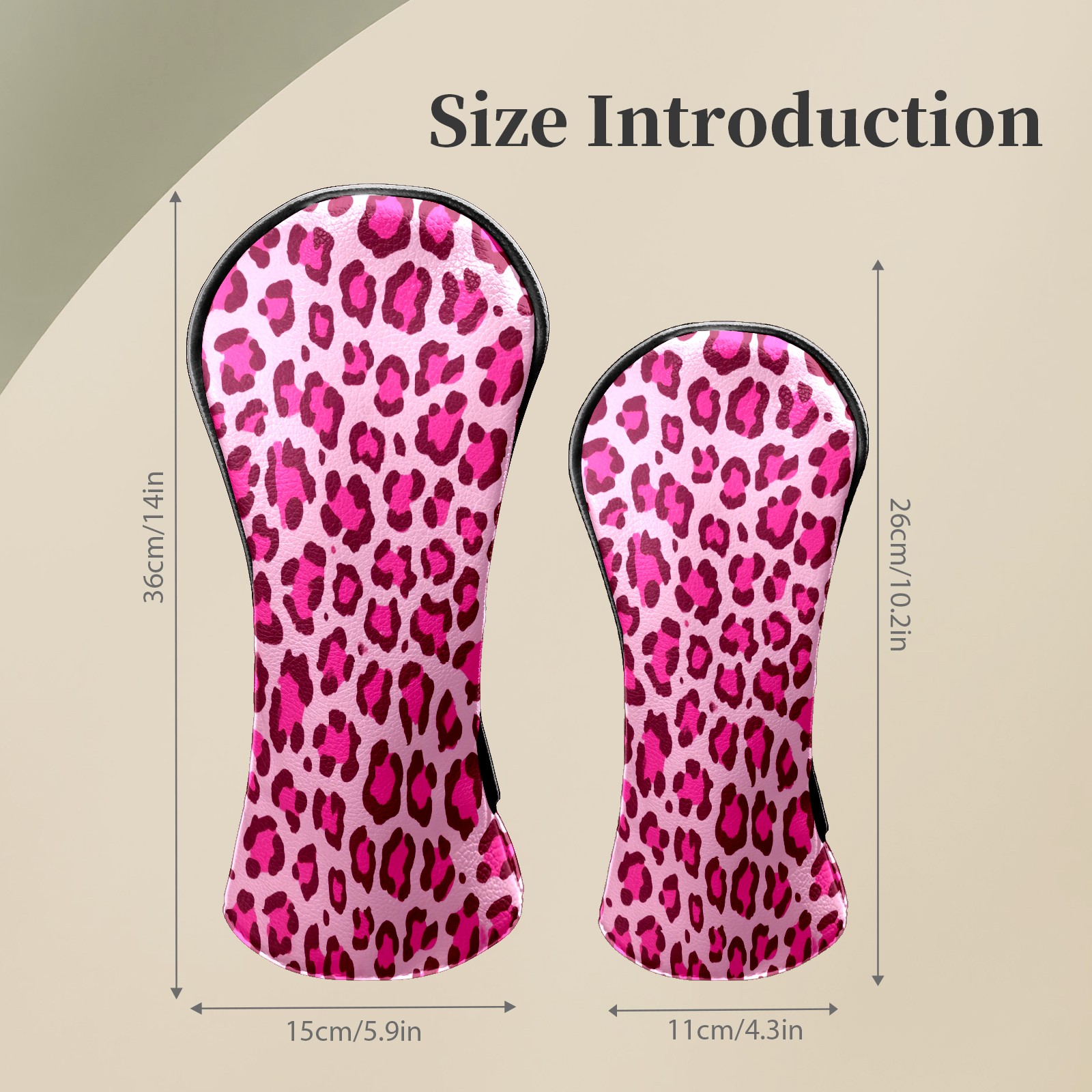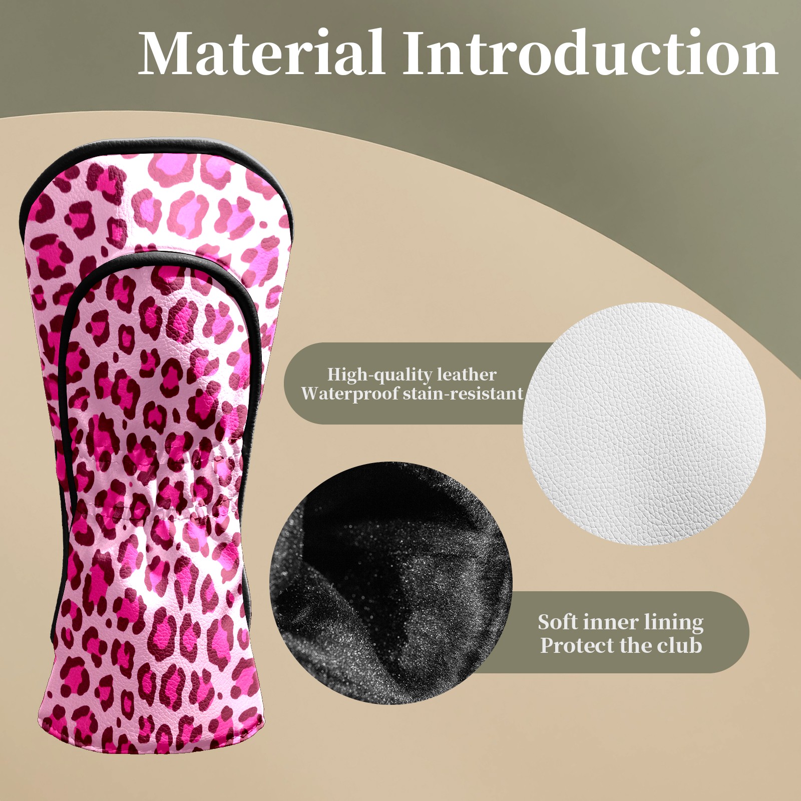 Golf Head Covers for Woods and Driver Waterproof Leather Golf Club Head Covers for Women Men Golf Driver Fairway Wood Headcover Pink Leopard Print Light