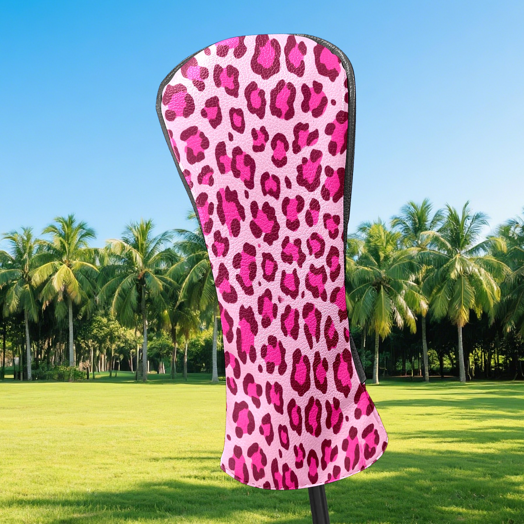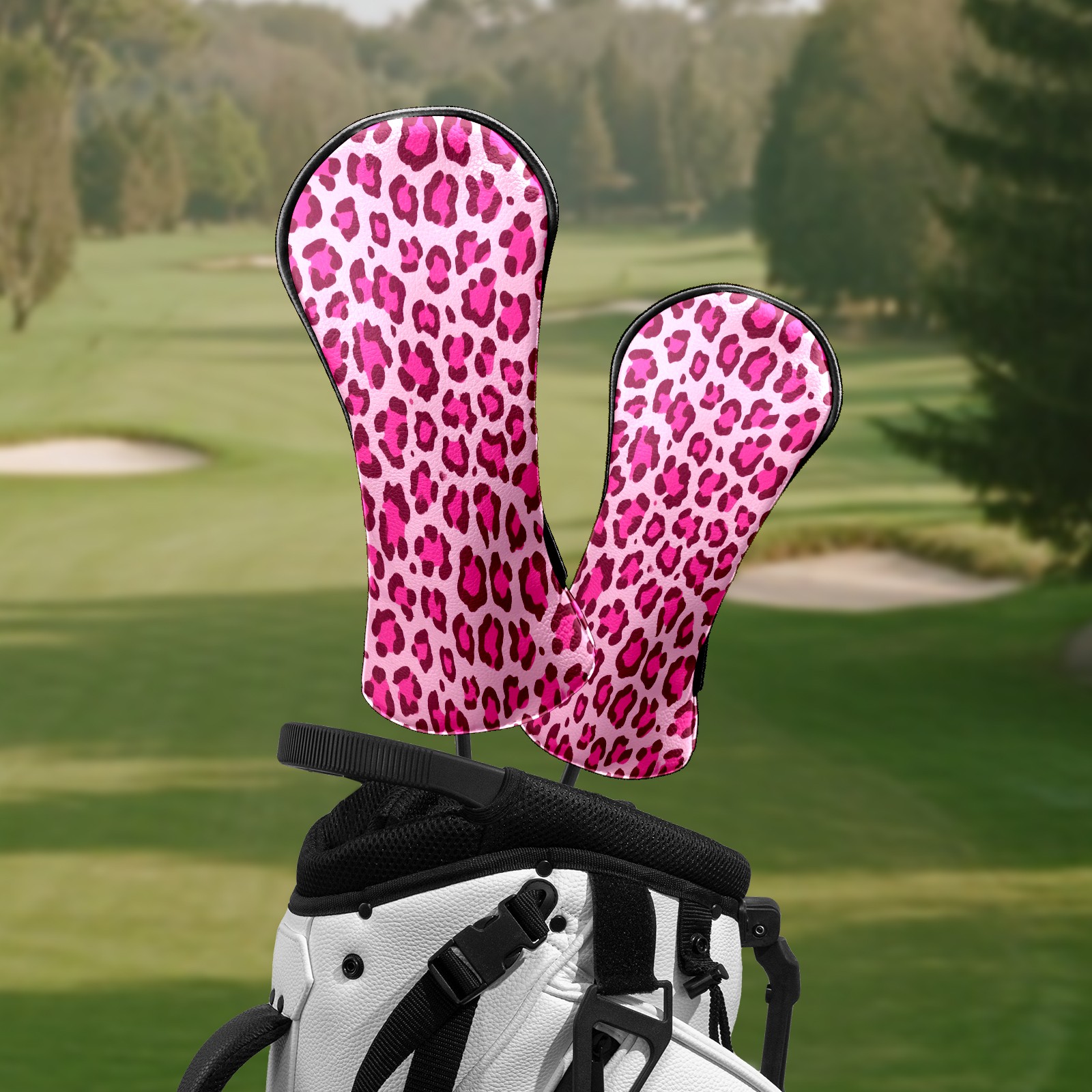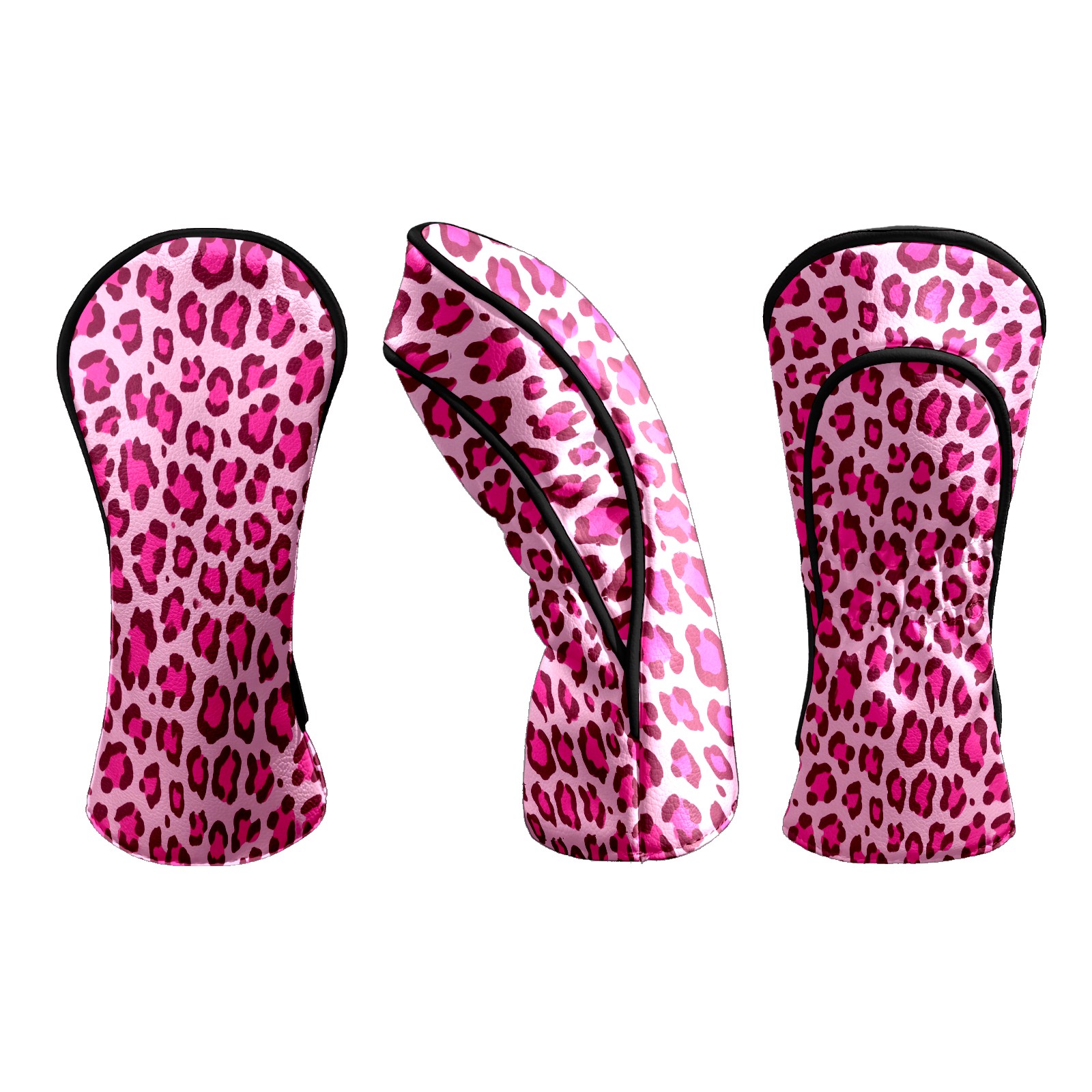 Golf Head Covers for Woods and Driver Waterproof Leather Golf Club Head Covers for Women Men Golf Driver Fairway Wood Headcover Pink Leopard Print Light