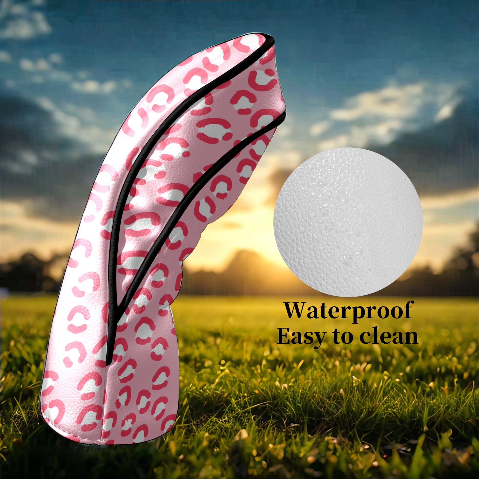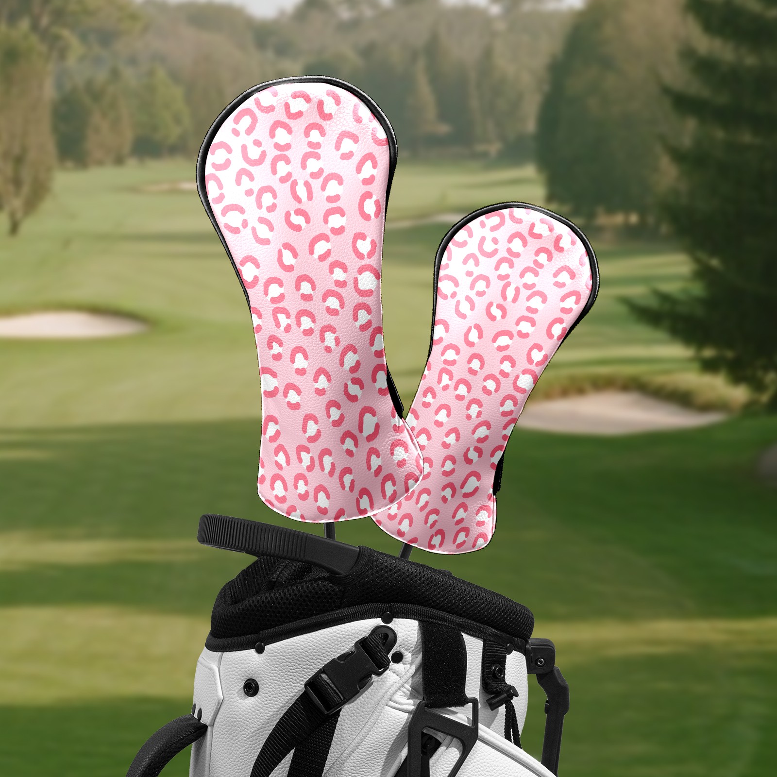 Golf Head Covers for Woods and Driver Waterproof Leather Golf Club Head Covers for Women Men Golf Driver Fairway Wood Headcover Pink Bright Cute Leopard Print