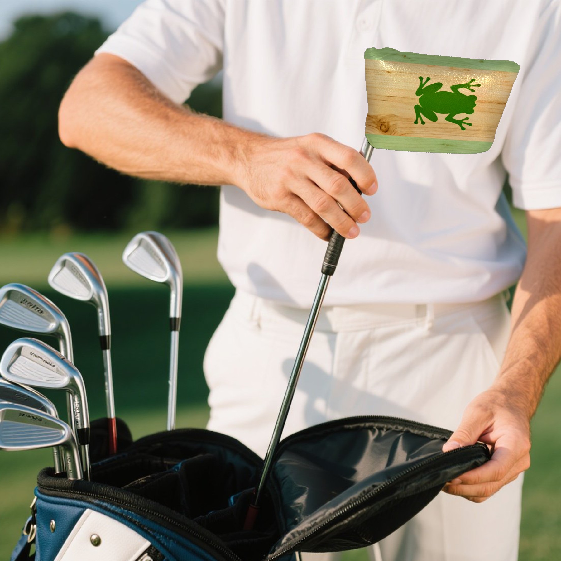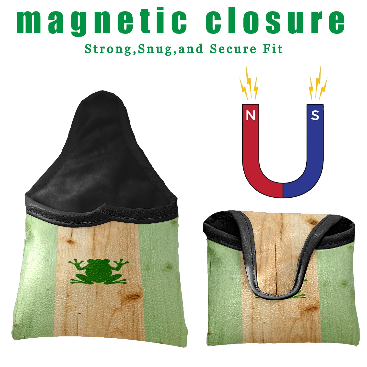 Mallet Putter Cover, Waterproof PU Leather, Portable Design, Perfect Golf Gift for Men & Women Striped Frog Pattern