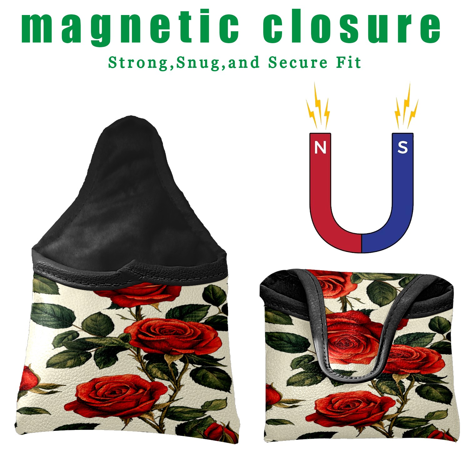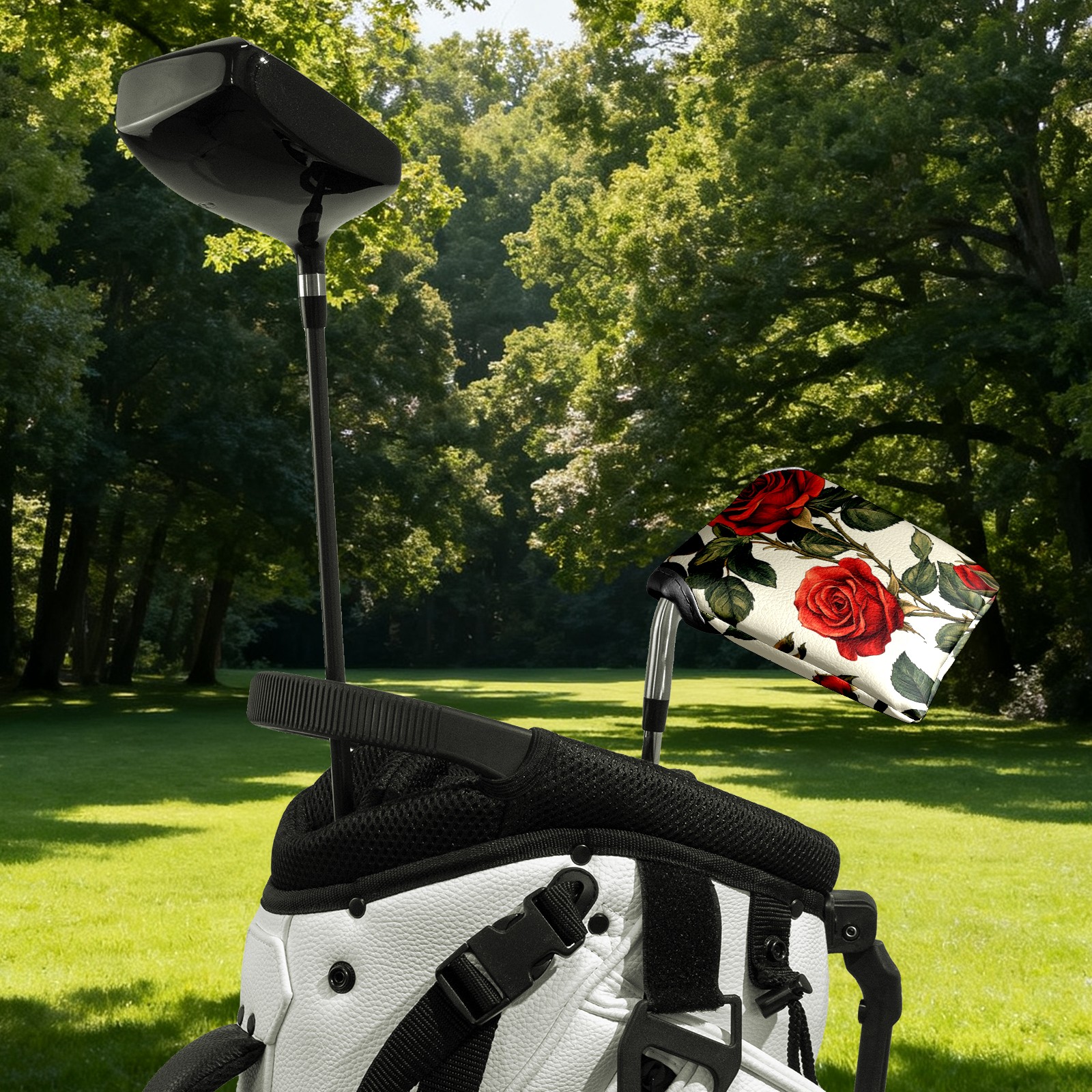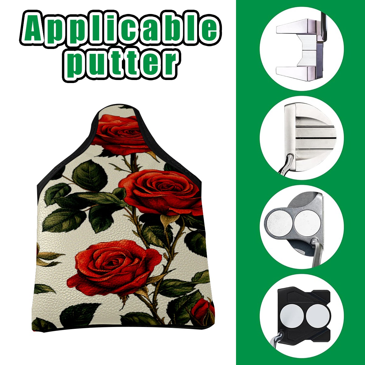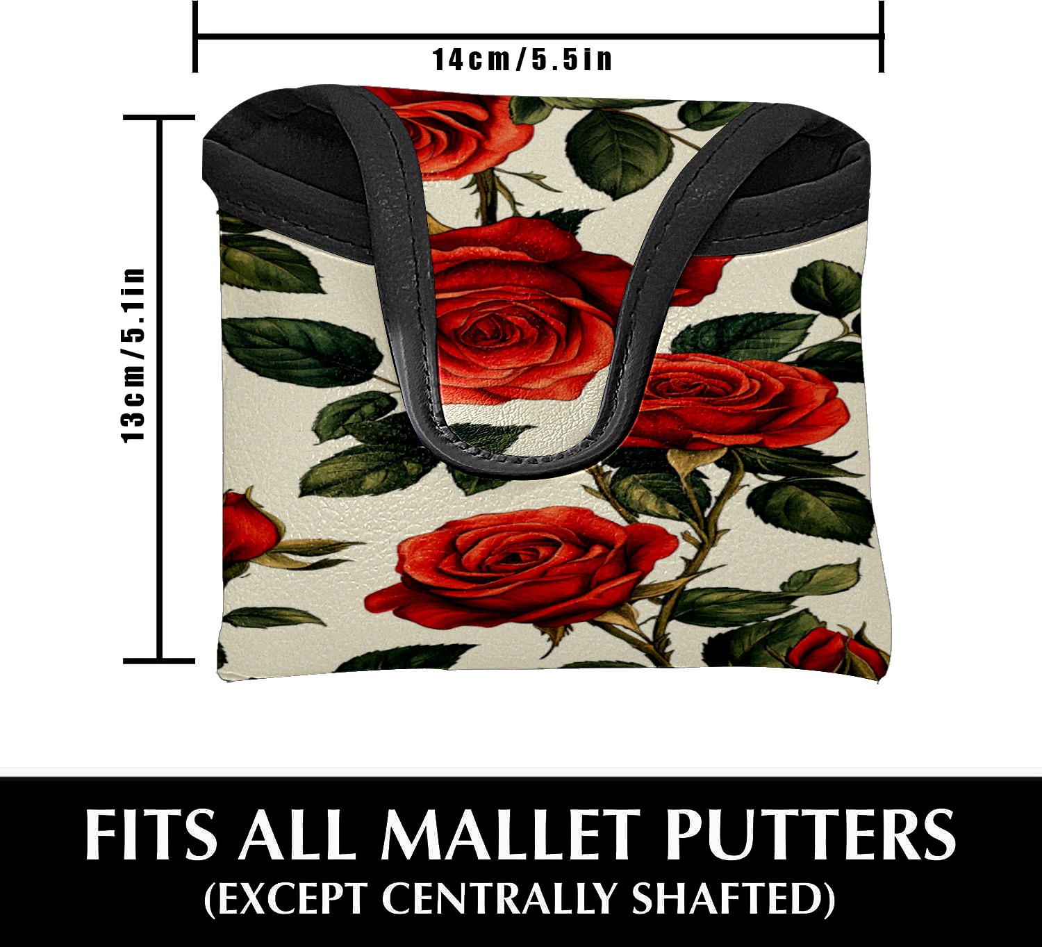 Mallet Putter Cover, Waterproof PU Leather, Portable Design, Perfect Golf Gift for Men & Women Red Rose Pattern