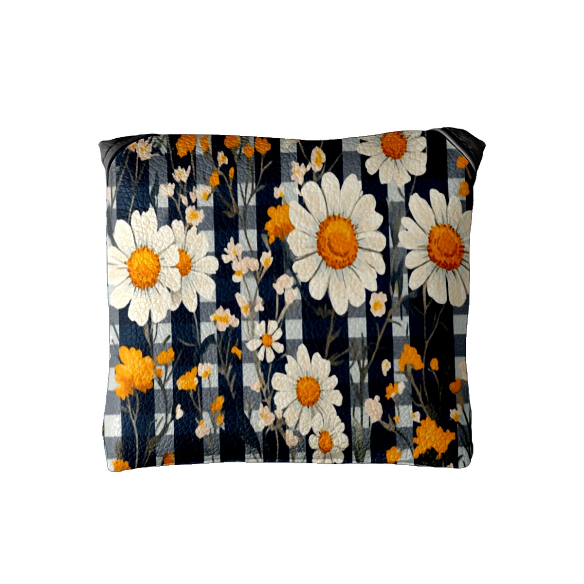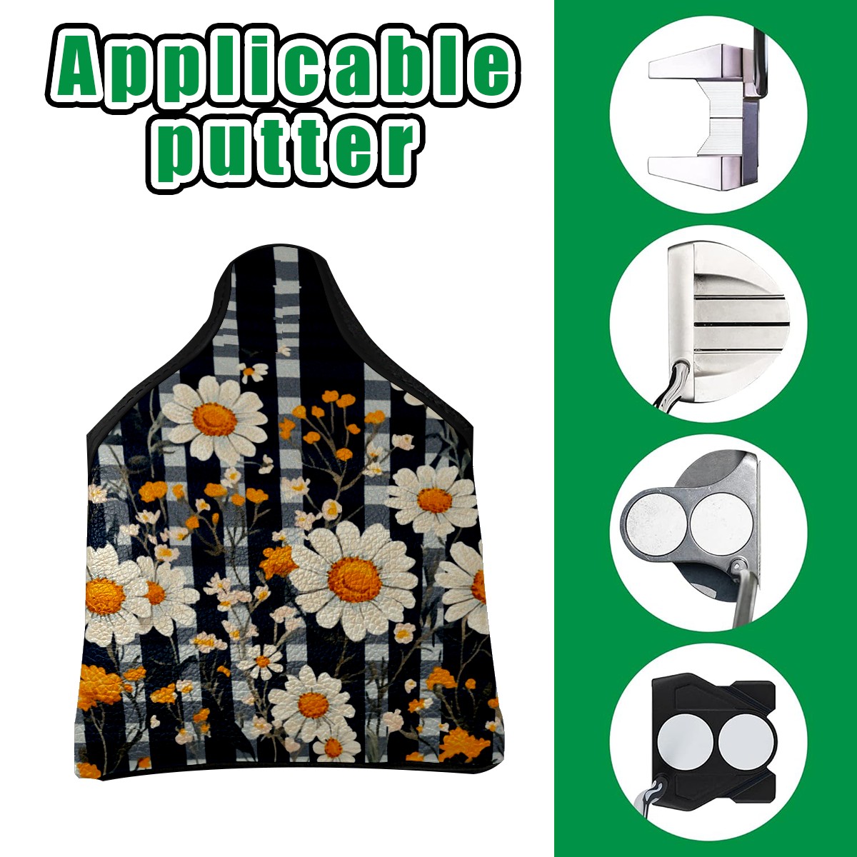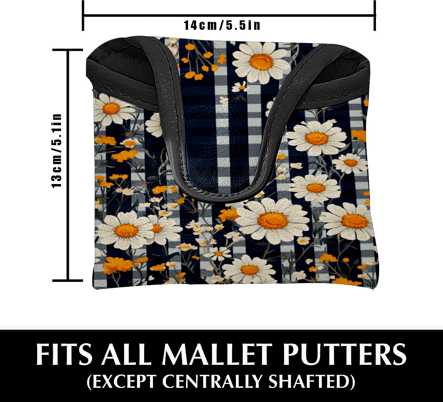 Mallet Putter Cover, Waterproof PU Leather, Portable Design, Perfect Golf Gift for Men & Women Retro Daisies Checkered Pattern