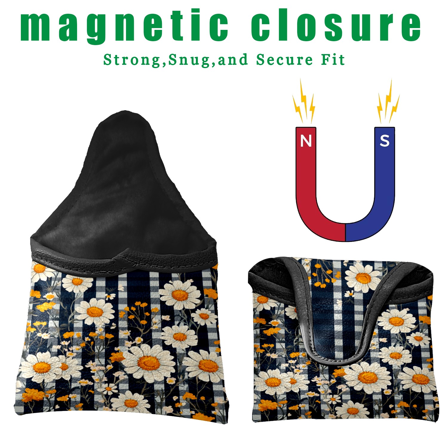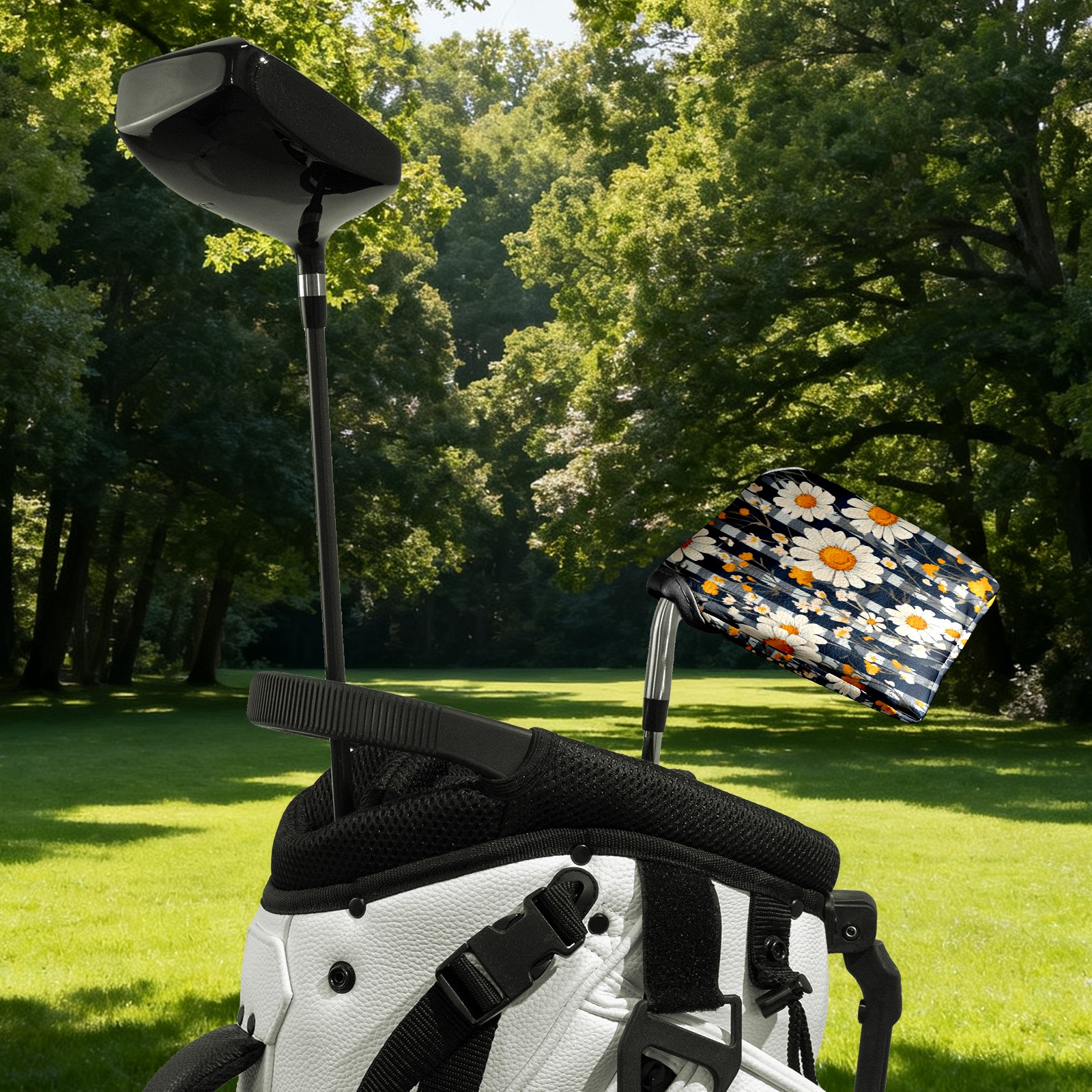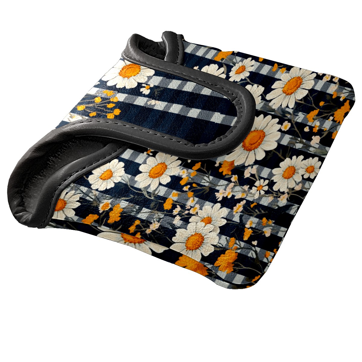 Mallet Putter Cover, Waterproof PU Leather, Portable Design, Perfect Golf Gift for Men & Women Retro Daisies Checkered Pattern
