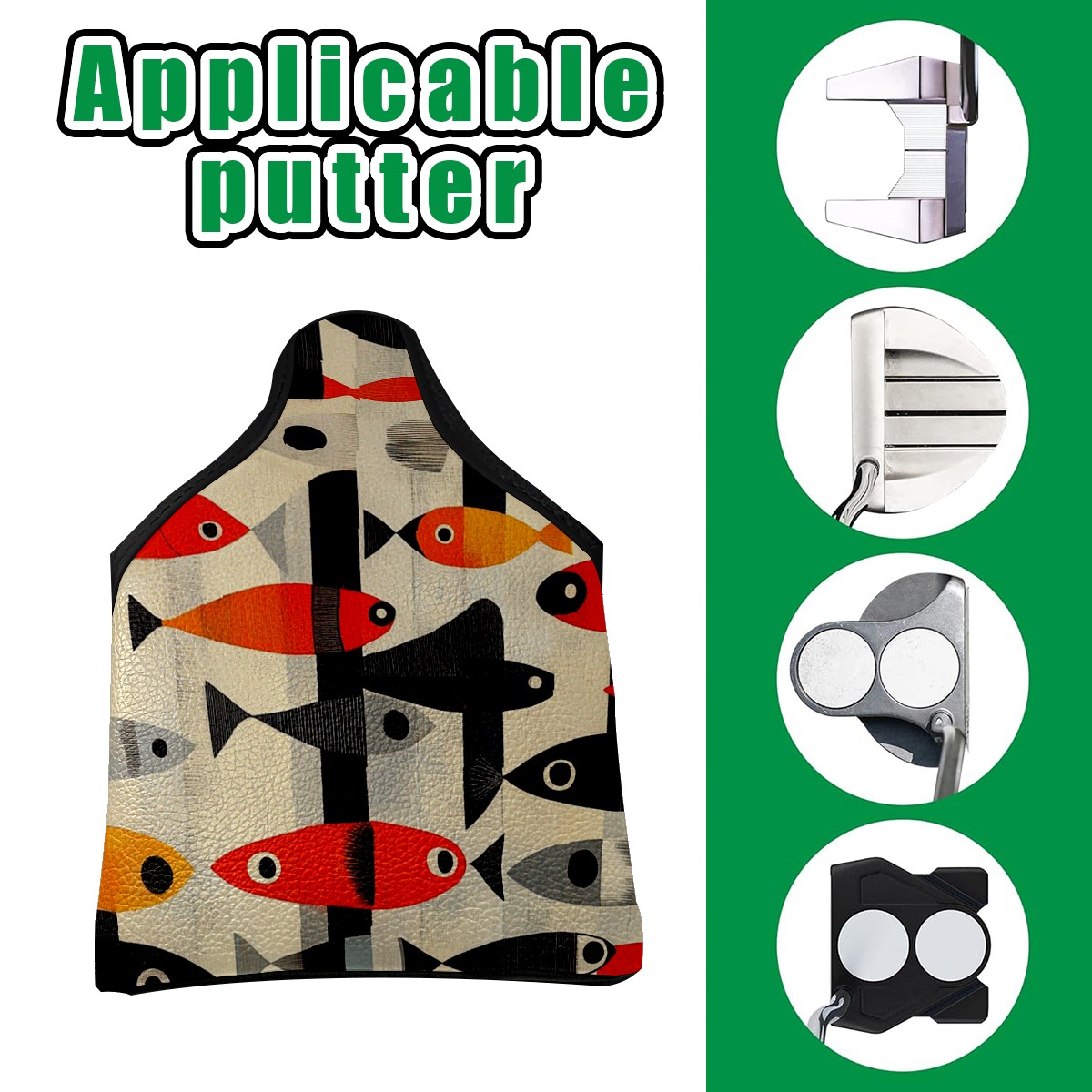Mallet Putter Cover, Waterproof PU Leather, Portable Design, Perfect Golf Gift for Men & Women Striped Fish
