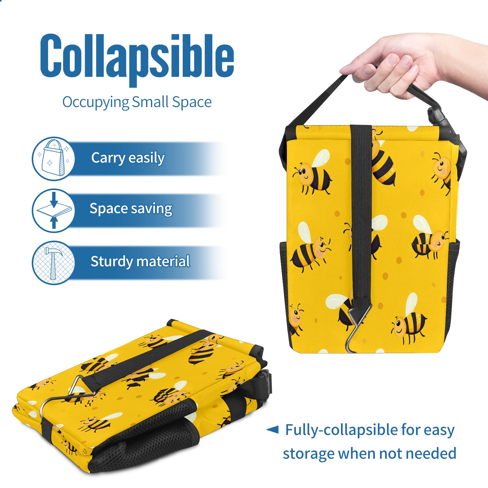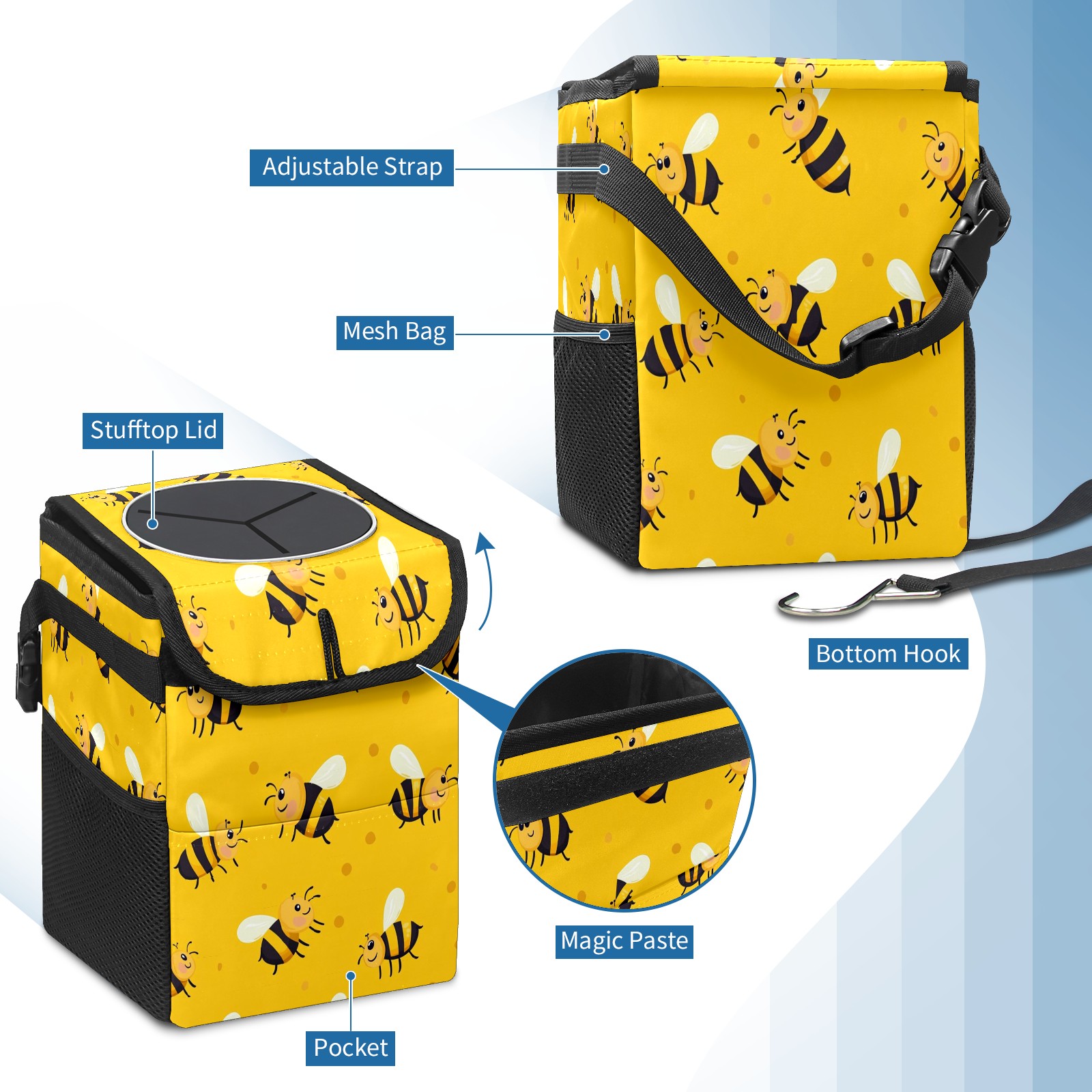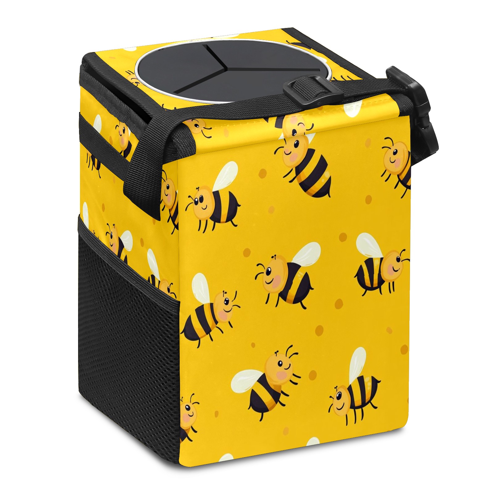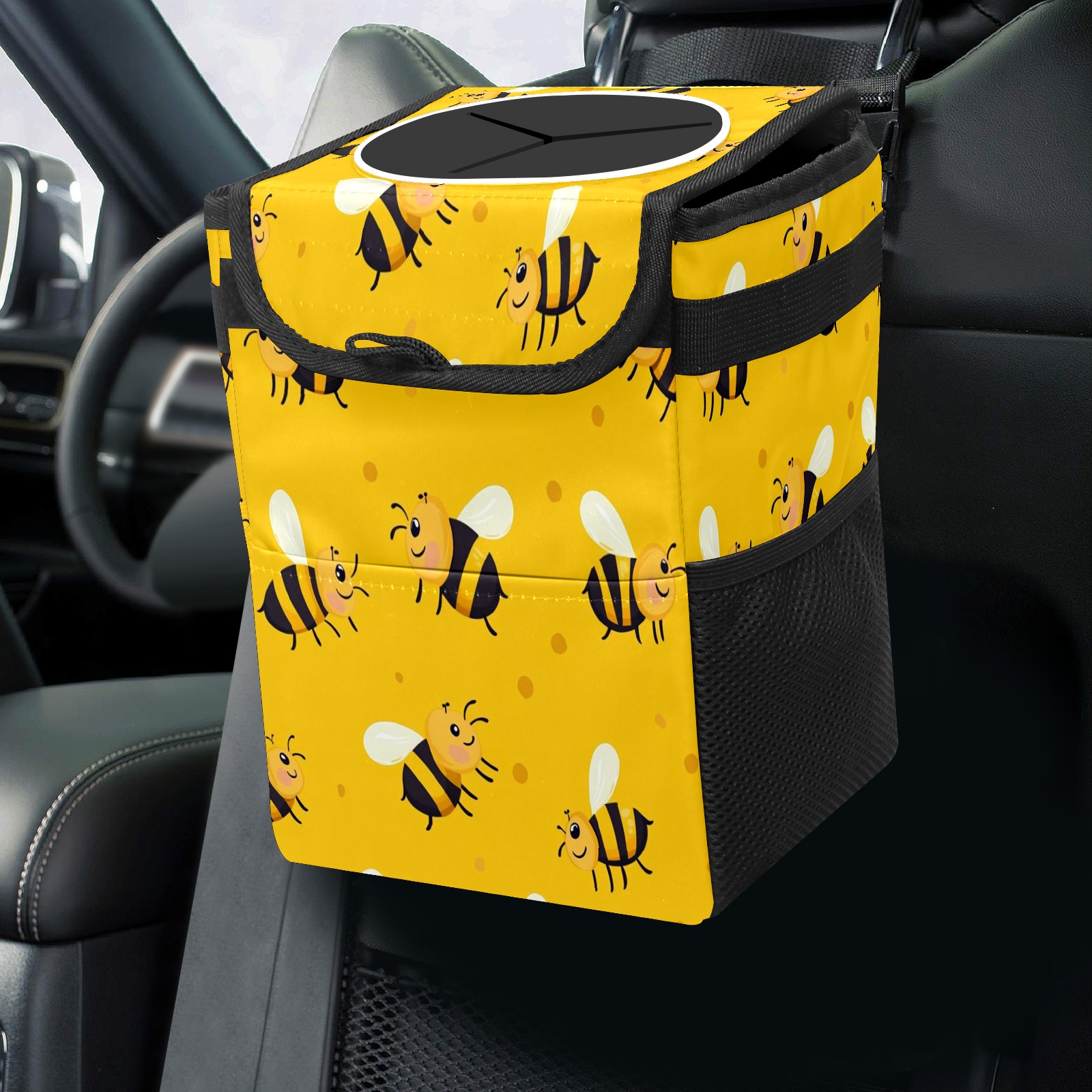 Car Garbage Can — Multi-functional, Lightweight Portable, Reusable Vehicle Trash Can, Waterproof with Sufficient Storage Capacity Black-striped Honeybee