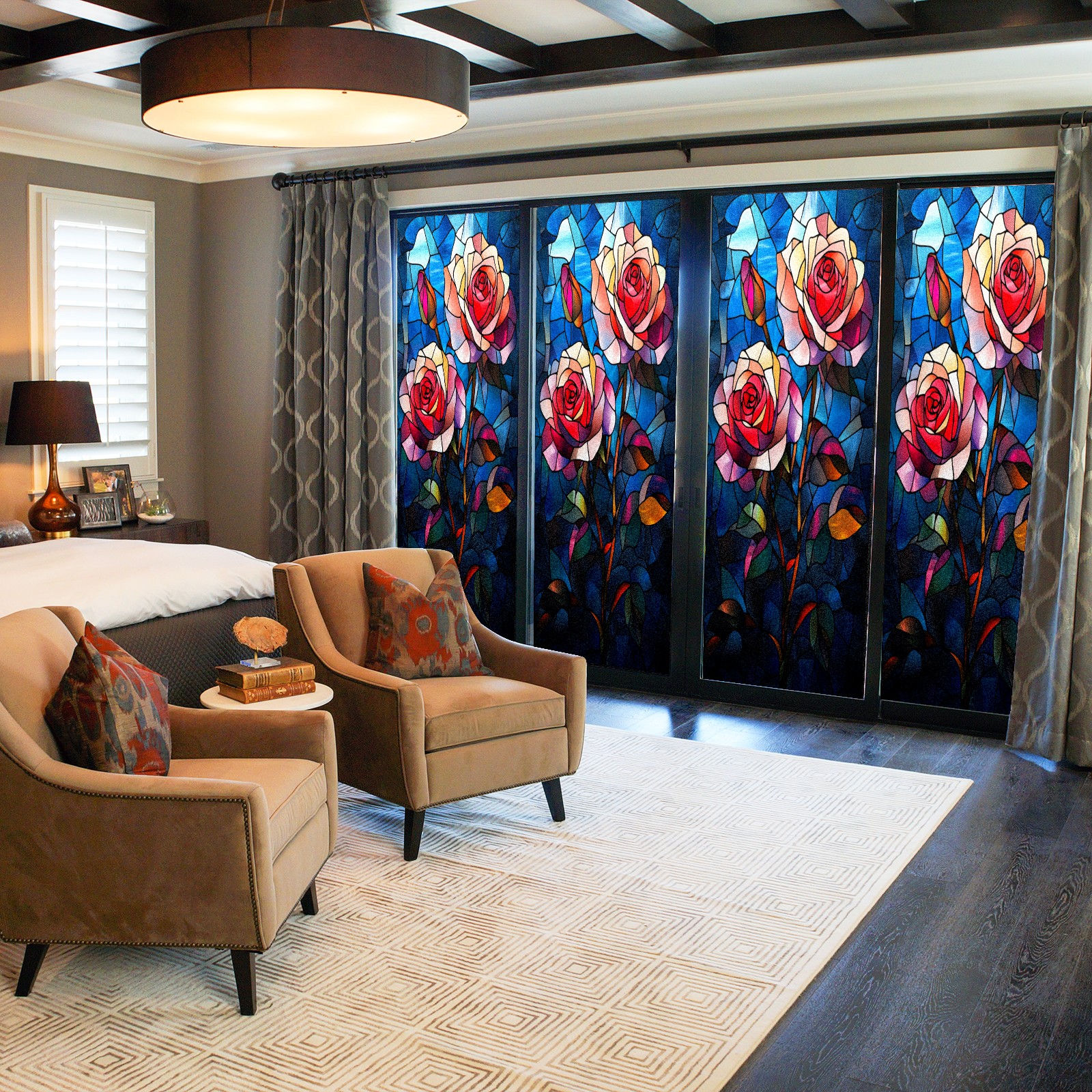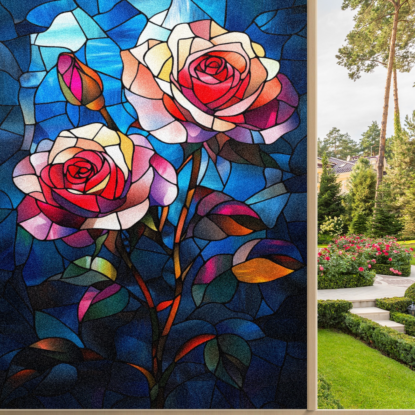 <p>Our stained glass privacy window film combines daytime privacy with soft, natural light, blocking unwanted views without the need for heavy curtains! Made from premium PET material with a single-sided frosted finish, it blocks 90% of UV rays and 86% of infrared rays, effectively protecting you and your furniture. This window film requires no adhesive, is environmentally friendly, and reusable (leaving no residue after removal). Available in six sizes, it's suitable for sliding doors, bathrooms, living rooms, offices, hotels, and more. It's the ideal choice for creating a bright, private, and secure space!</p>