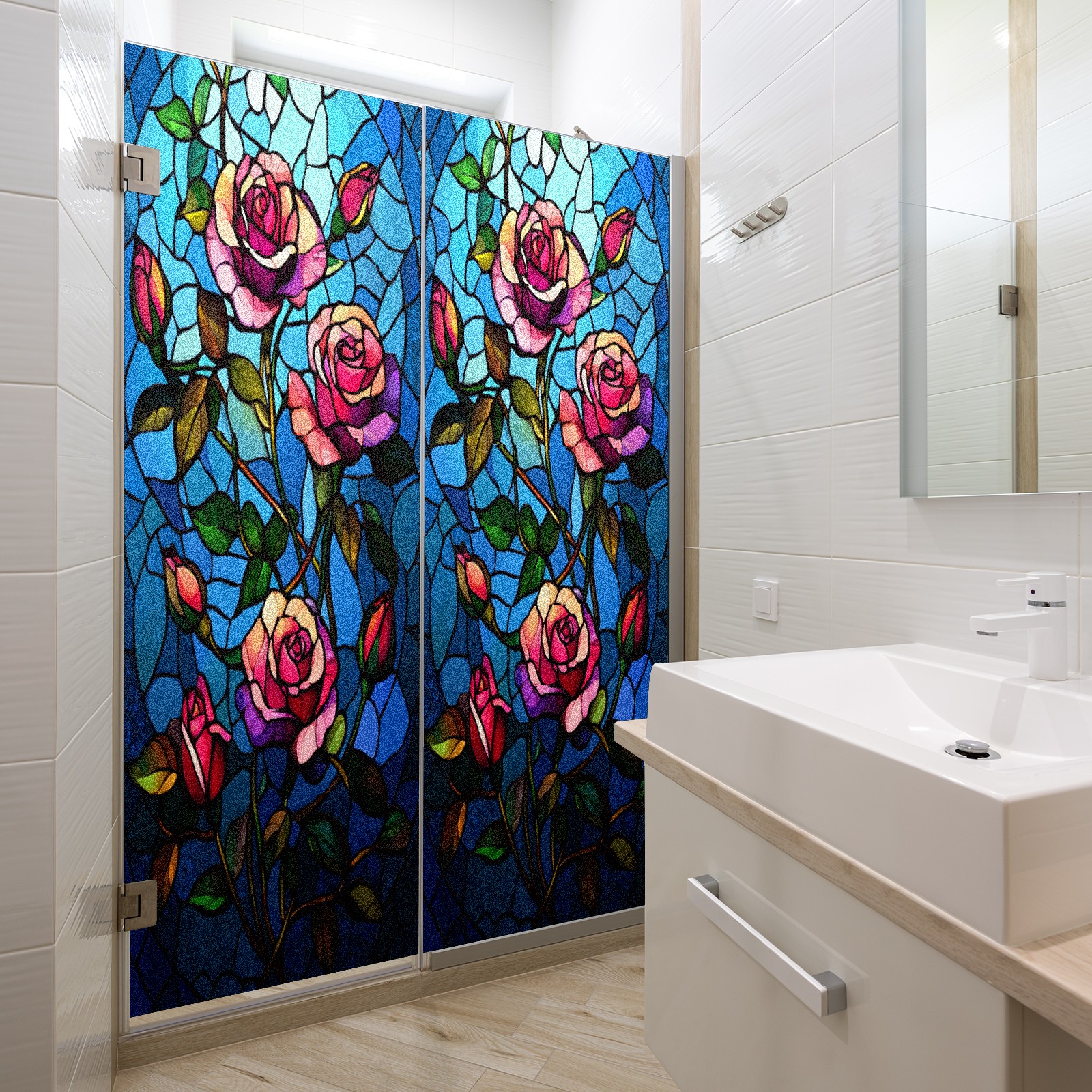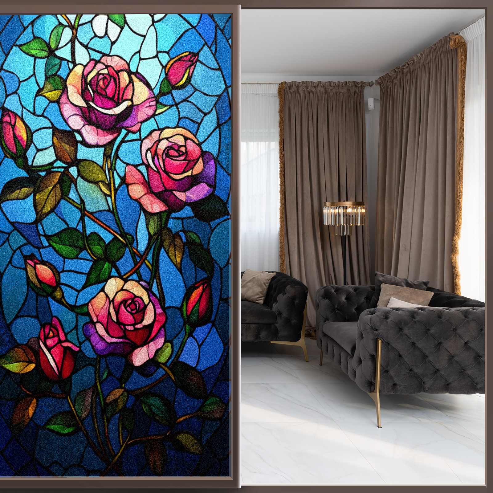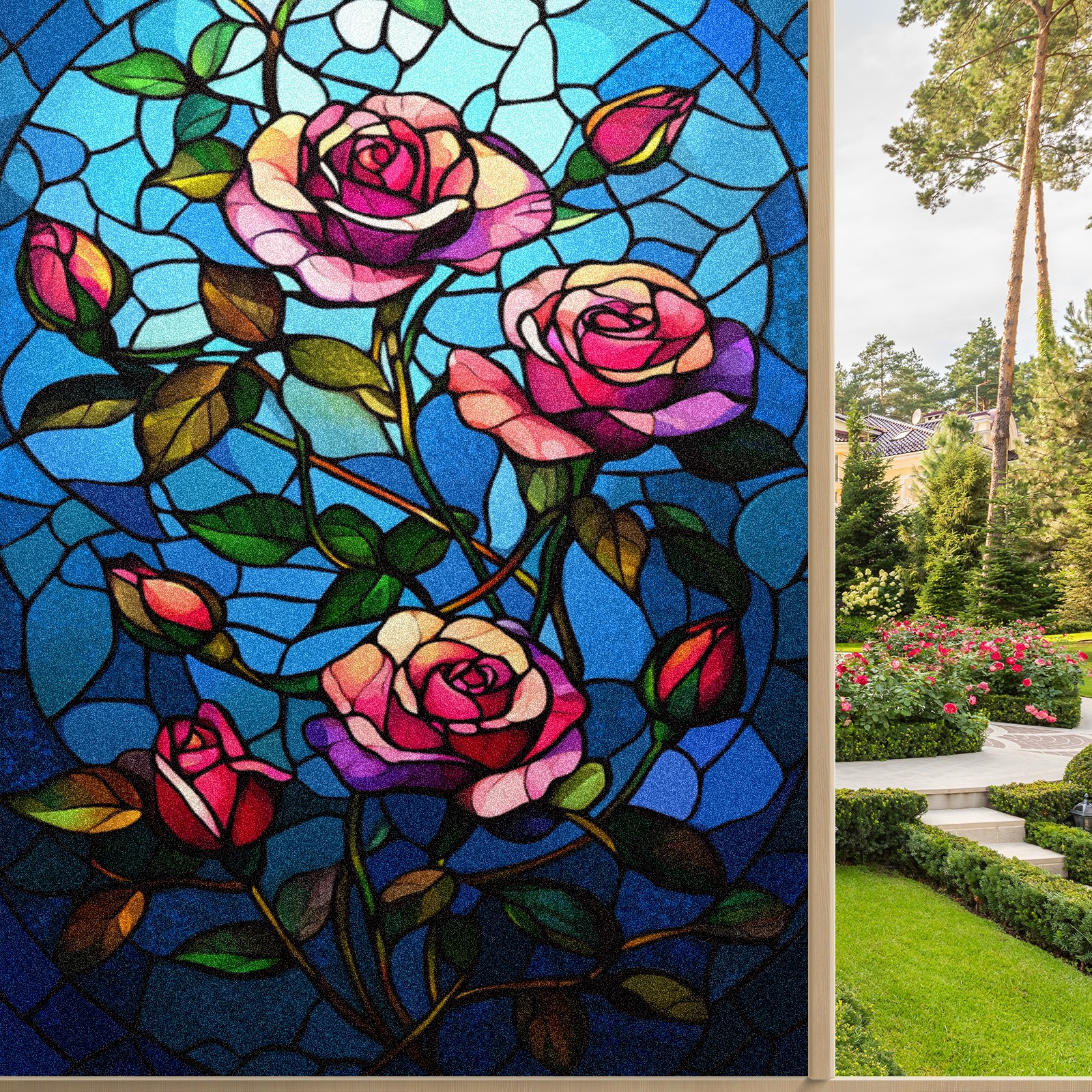 Window Privacy Colored Iris Decorative Window Stickers Glass Rose Suitable Home & Office Anti-Sunlight Stickers 17.7x23.6in