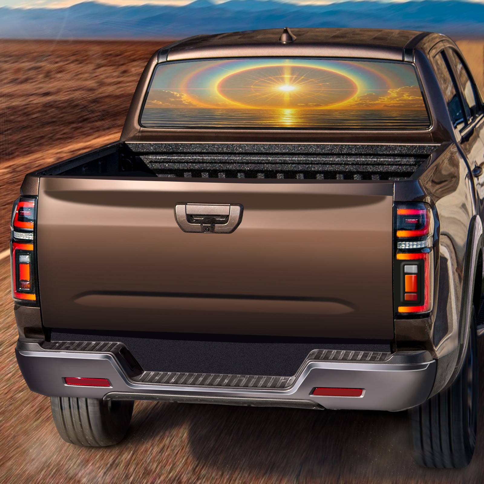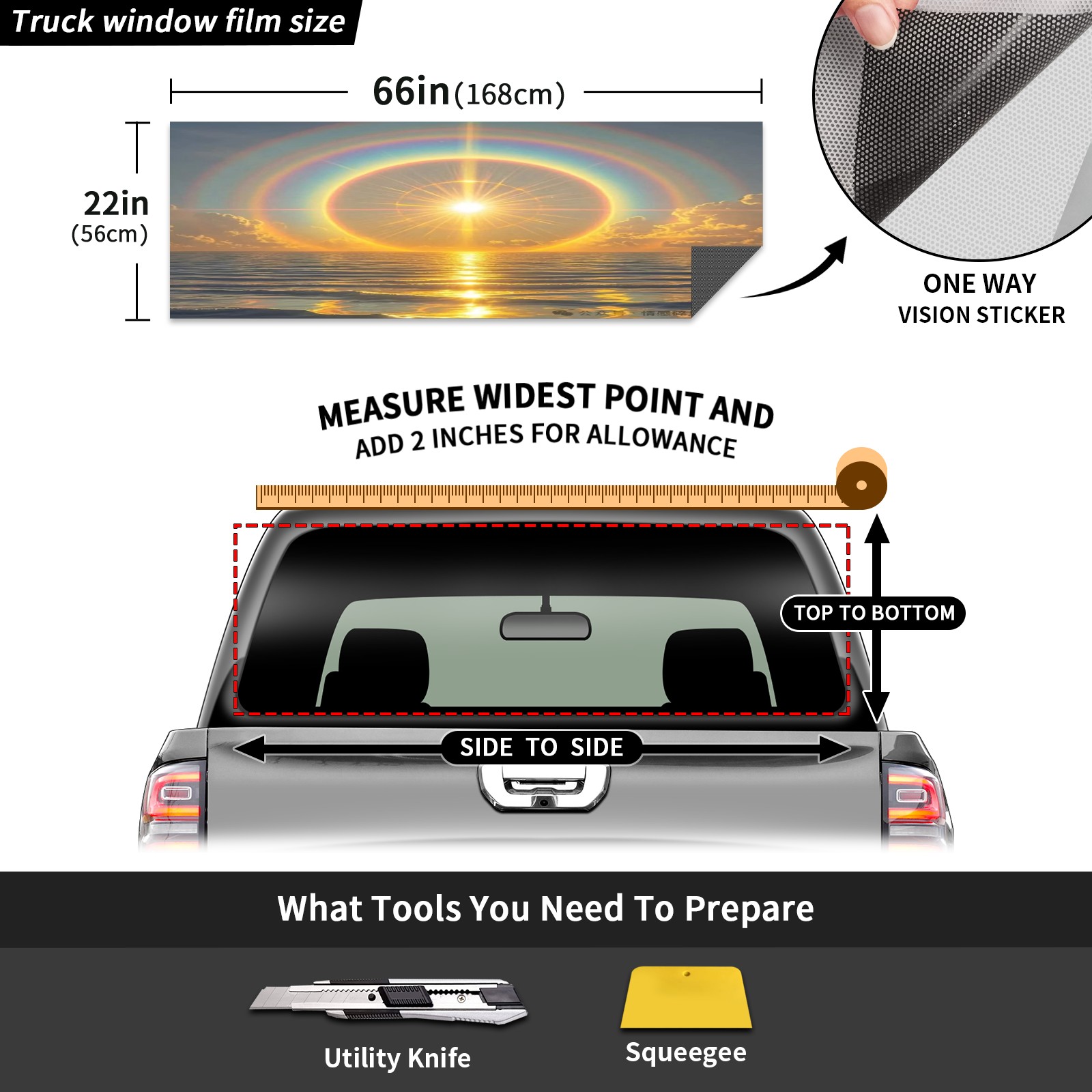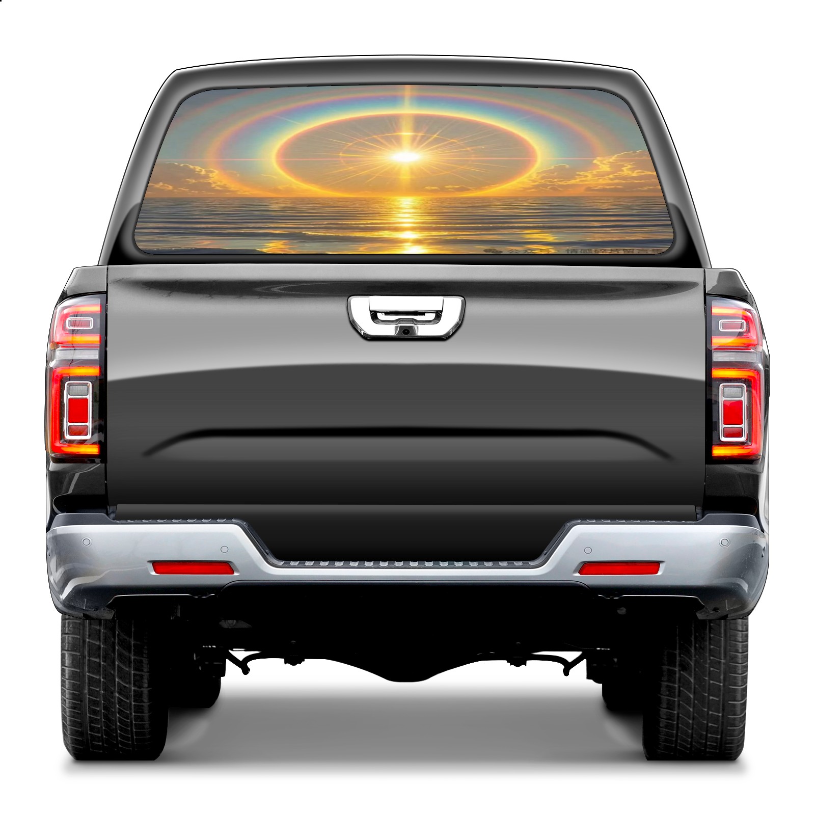 Pickup Car Window Stickers Decal Rear Window Decals for Trucks One Way Visual Waterproof Truck Back Window Tint Decal Graphic Perforated Vinyl Truck Stickers 66X 22inch Sun Halo Sea