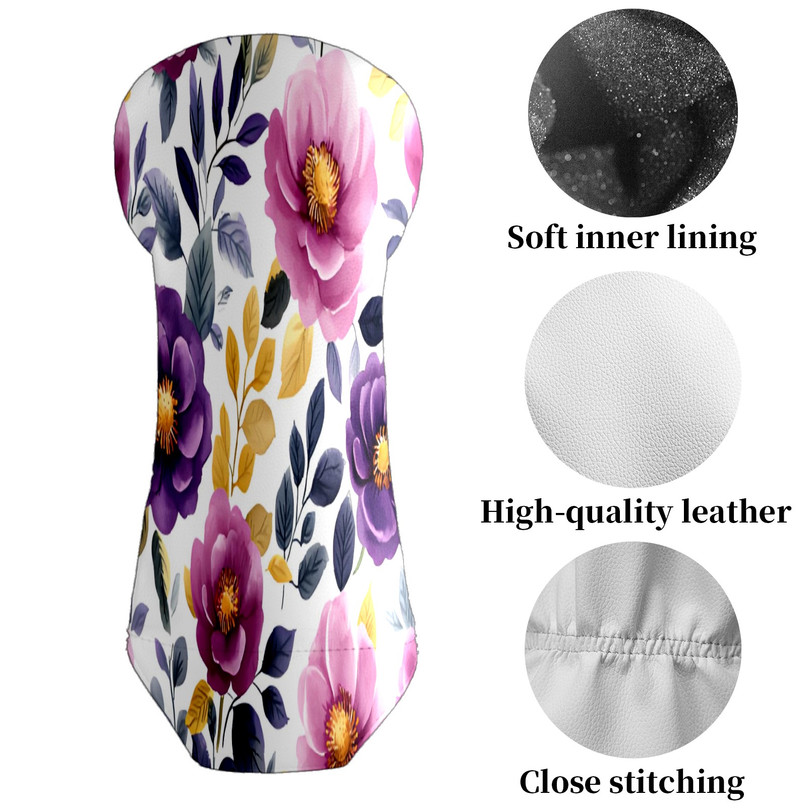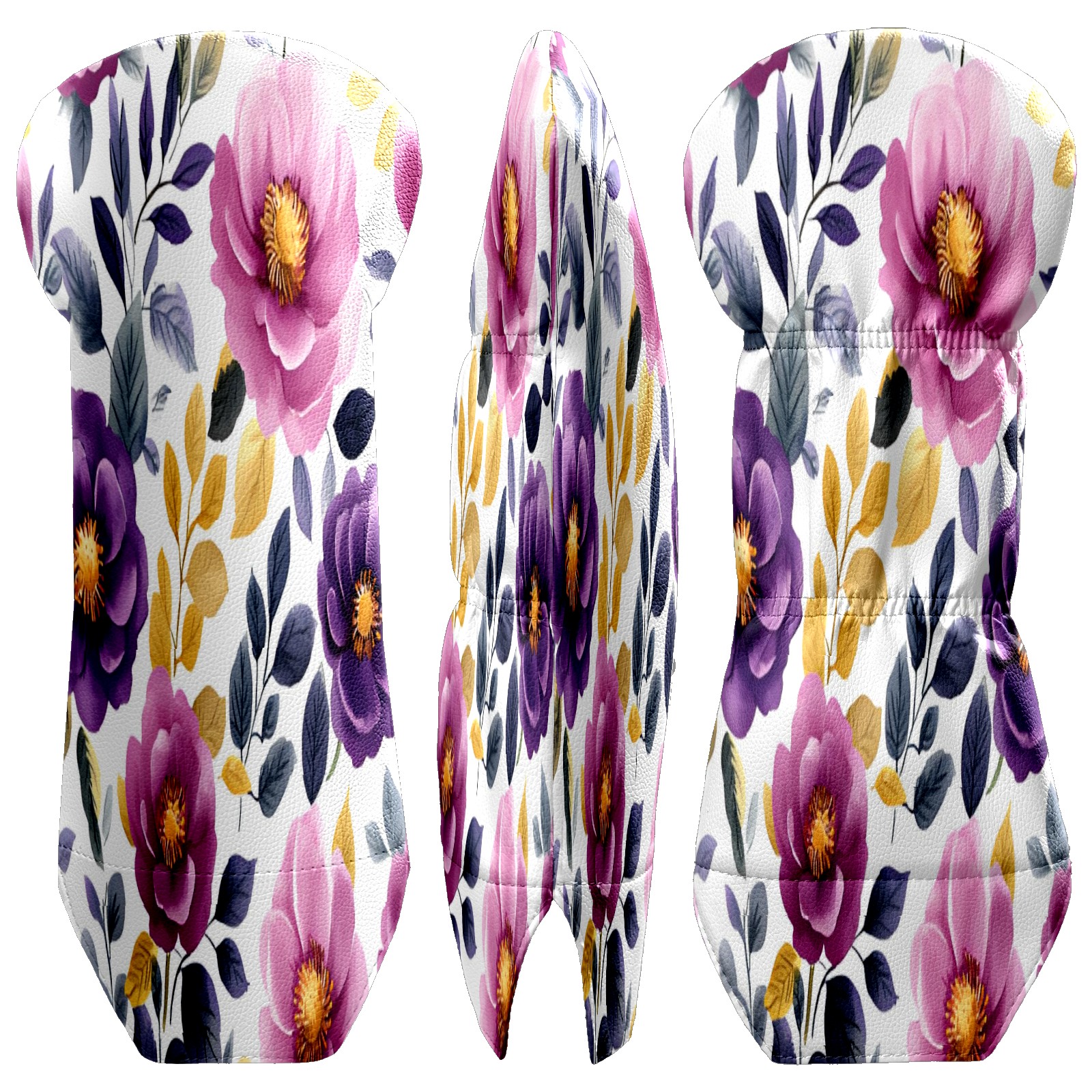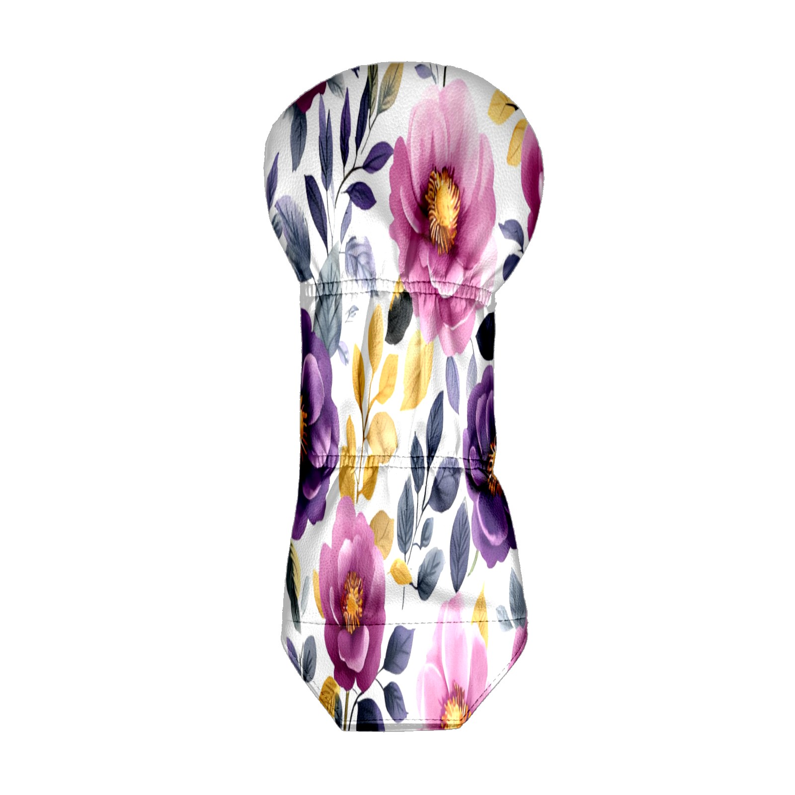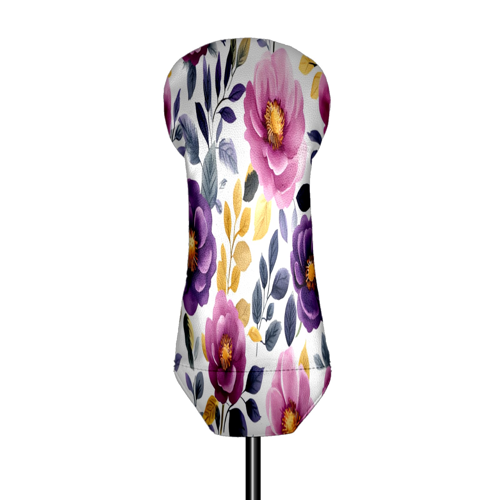 Funny Purple Flowers Golf Head Covers for Driver, Fairway, Hybrid & 3 Wood Premium PU Leather with Soft Velvet Lining Waterproof & Scratch-Resistant Unique Golf Gift for Men & Women