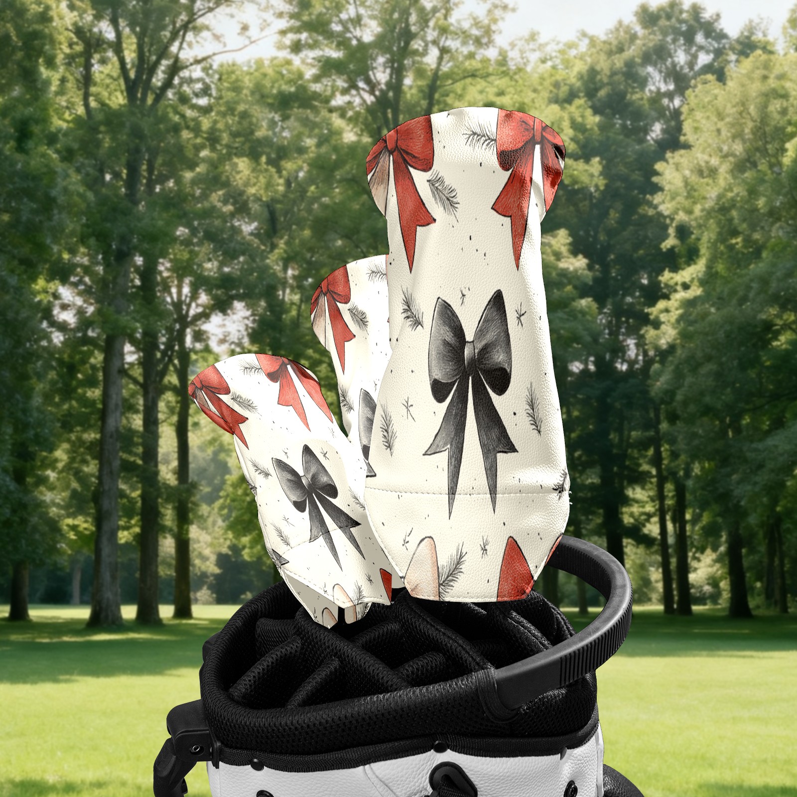 Funny Yellow Bow Golf Head Covers for Driver, Fairway, Hybrid & 3 Wood Premium PU Leather with Soft Velvet Lining Waterproof & Scratch-Resistant Unique Golf Gift for Men & Women