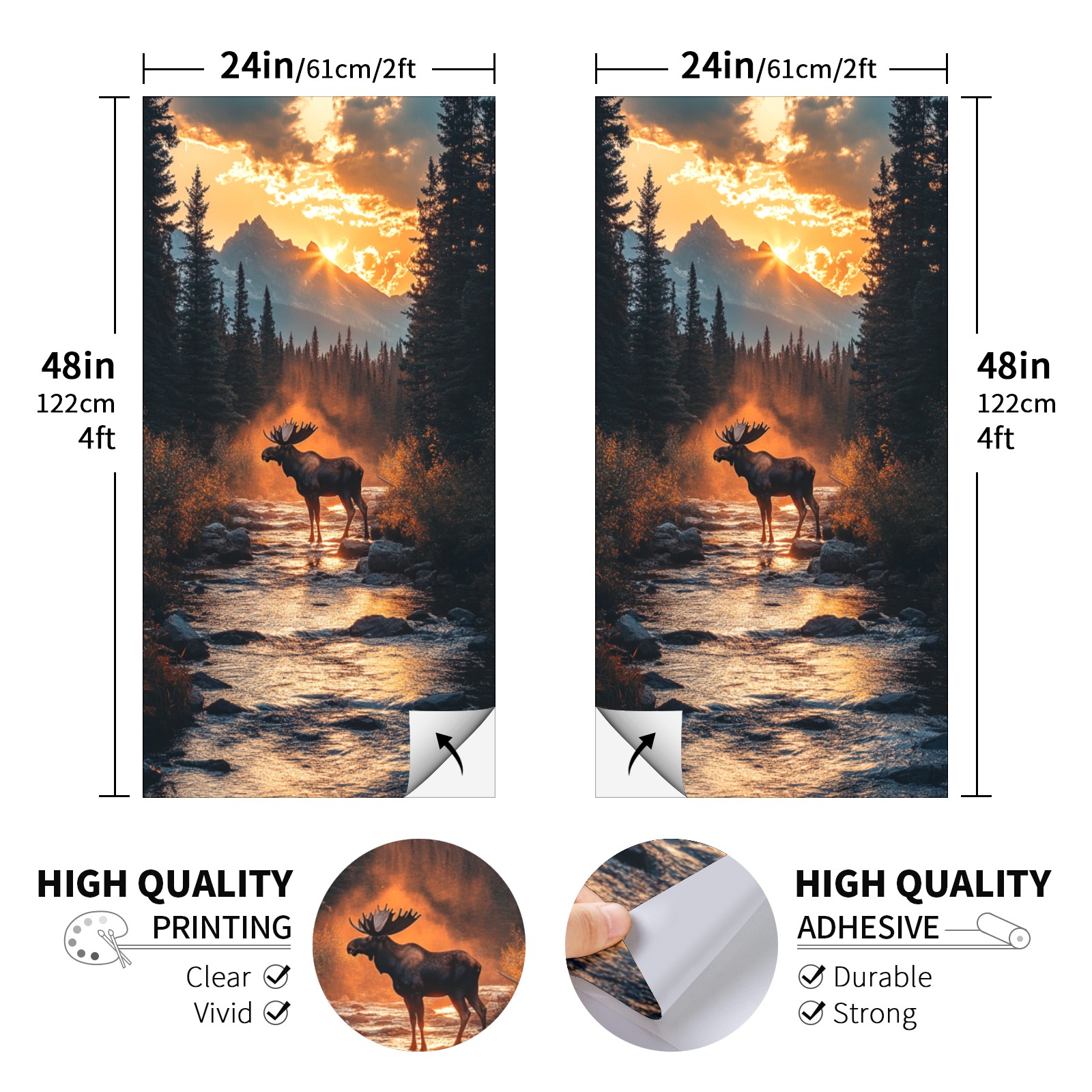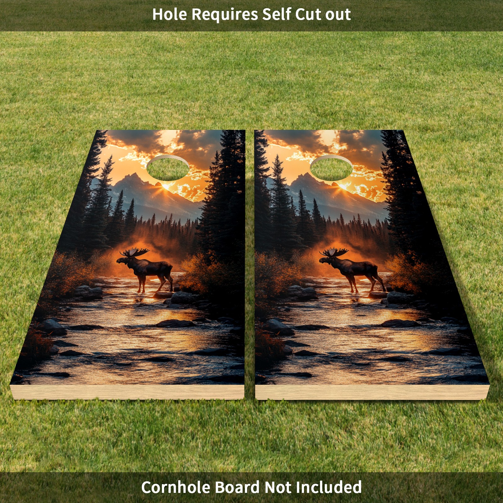 Cornhole Game Stickers For Boards Funny Cornhole Board Decals 24x48Inch Cornhole Board Wraps Weatherproof Vinyl Decal Easy Bubble Free Bean Toss Christmas Games Moose Reflection Pattern2