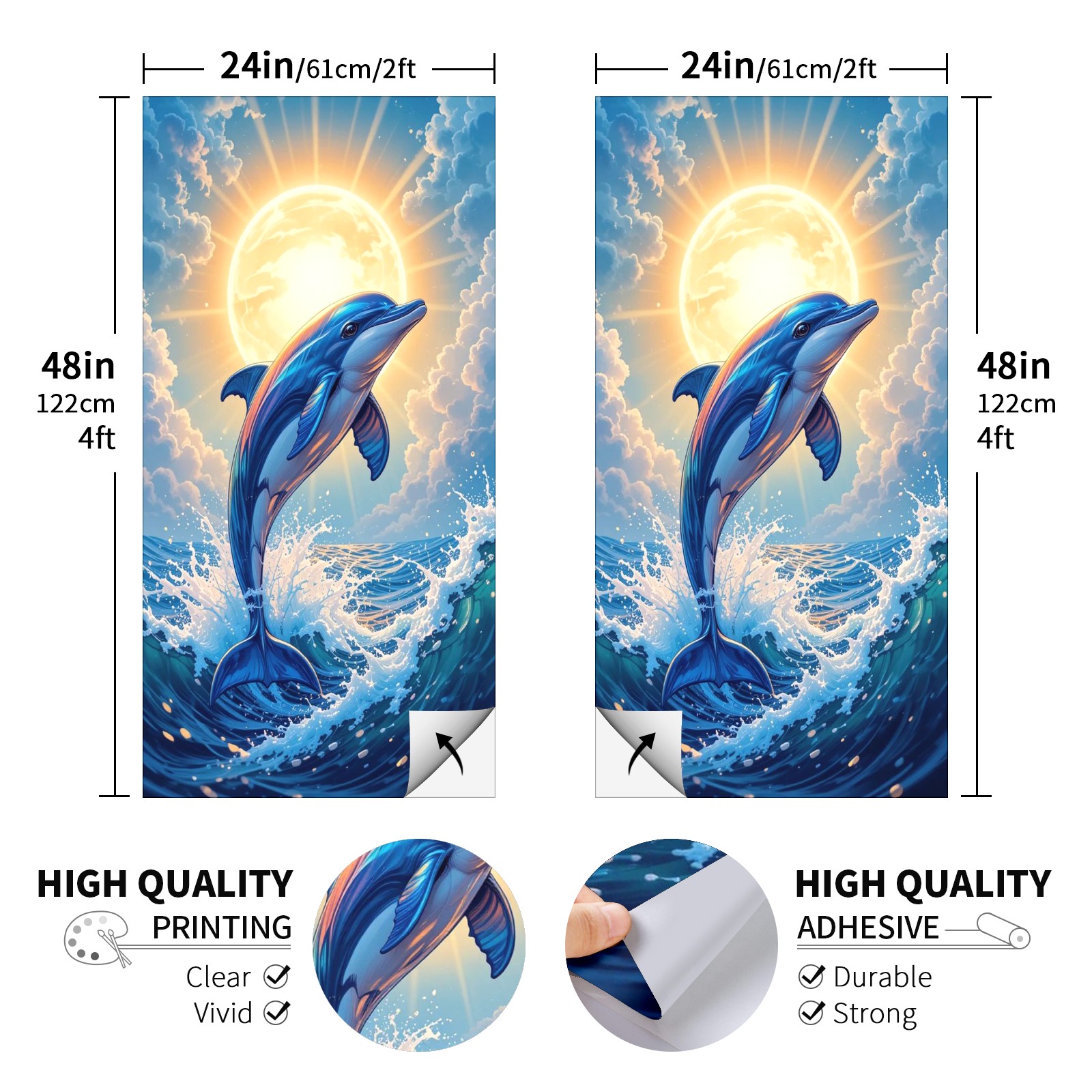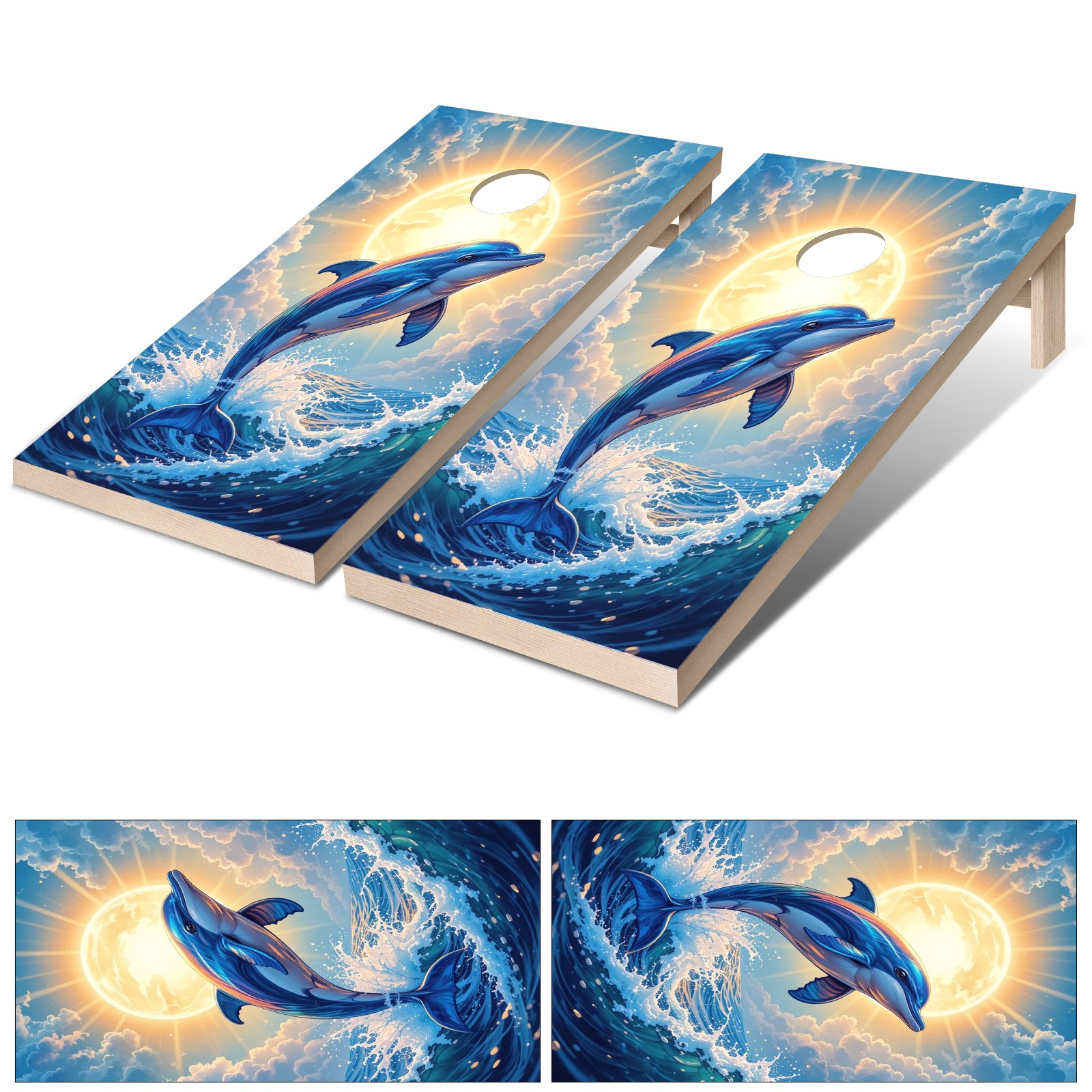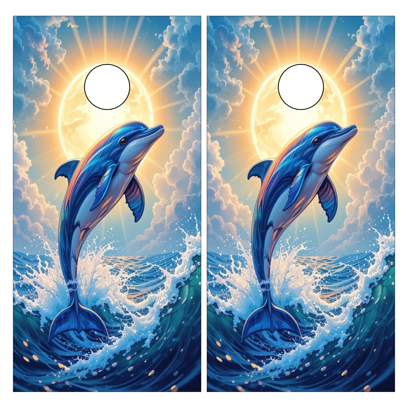 Cornhole Game Stickers For Boards Funny Cornhole Board Decals 24x48Inch Cornhole Board Wraps Weatherproof Vinyl Decal Easy Bubble Free Bean Toss Christmas Games Blue Dolphin Shining Sun