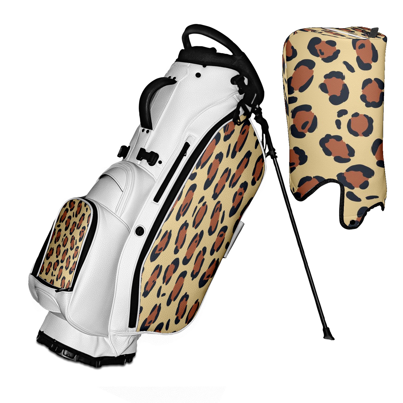 5 - Way Divider Golf Stand Bag, Lightweight Golf Bag with Padded Straps & Rain Cover for Men & Women, Ideal for Golf Courses & Driving Ranges Yellow Brown Leopard