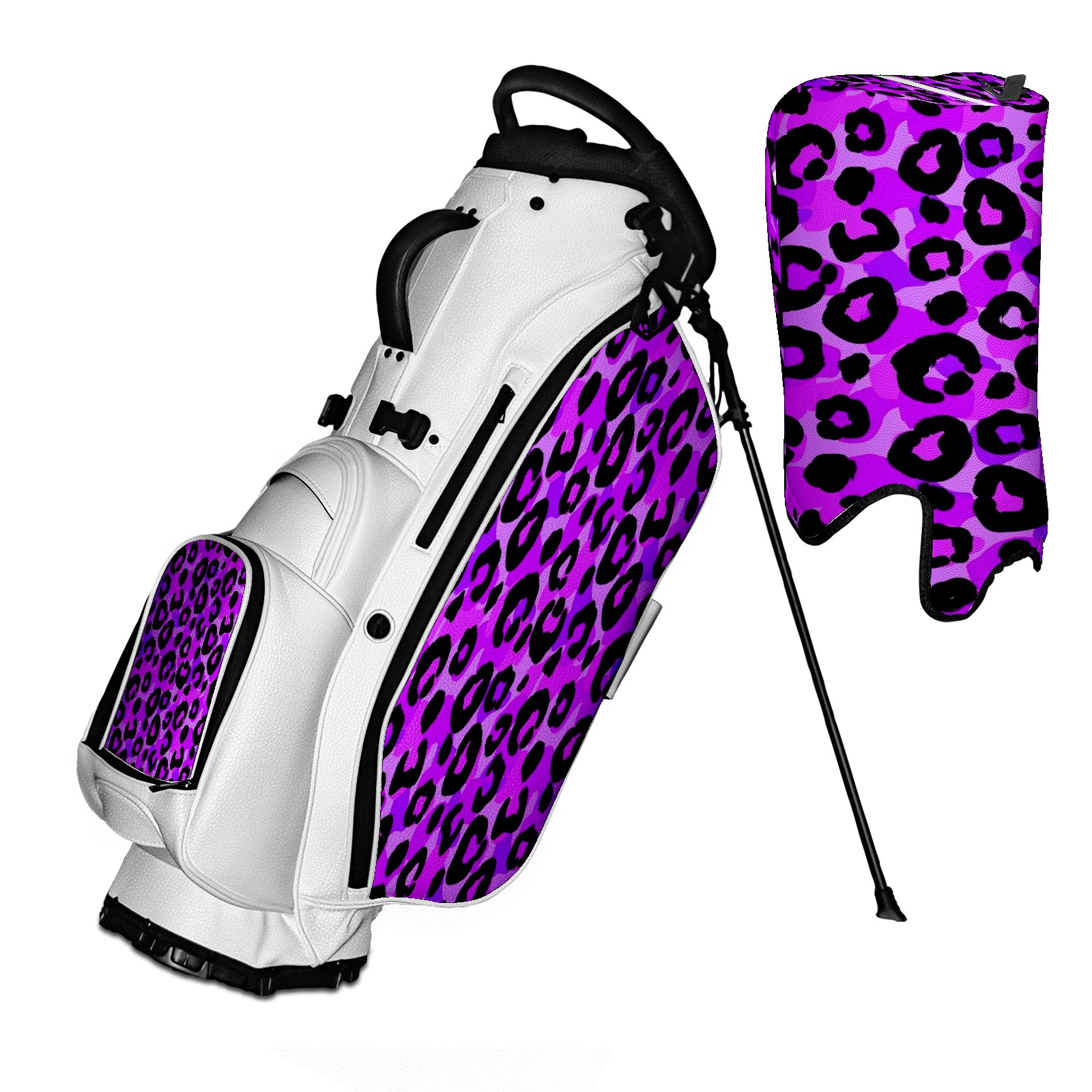 5 - Way Divider Golf Stand Bag, Lightweight Golf Bag with Padded Straps & Rain Cover for Men & Women, Ideal for Golf Courses & Driving Ranges Purple Black Leopard