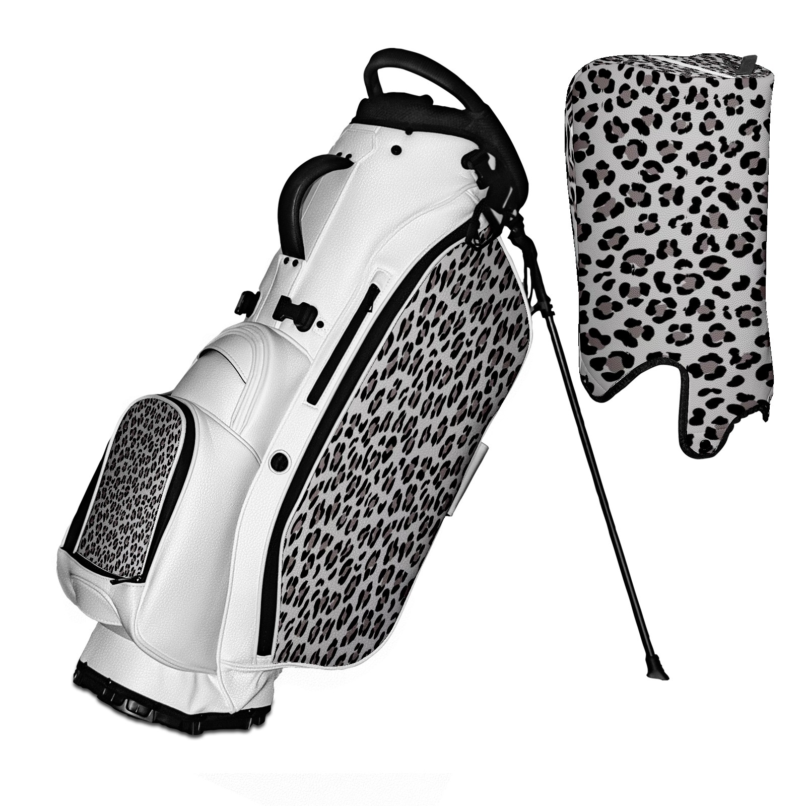5 - Way Divider Golf Stand Bag, Lightweight Golf Bag with Padded Straps & Rain Cover for Men & Women, Ideal for Golf Courses & Driving Ranges Grey Black Leopard Animal