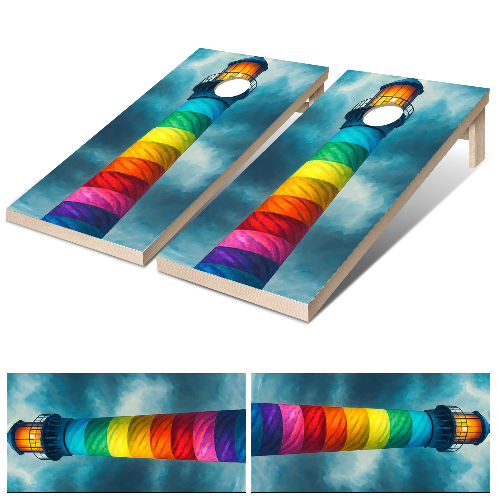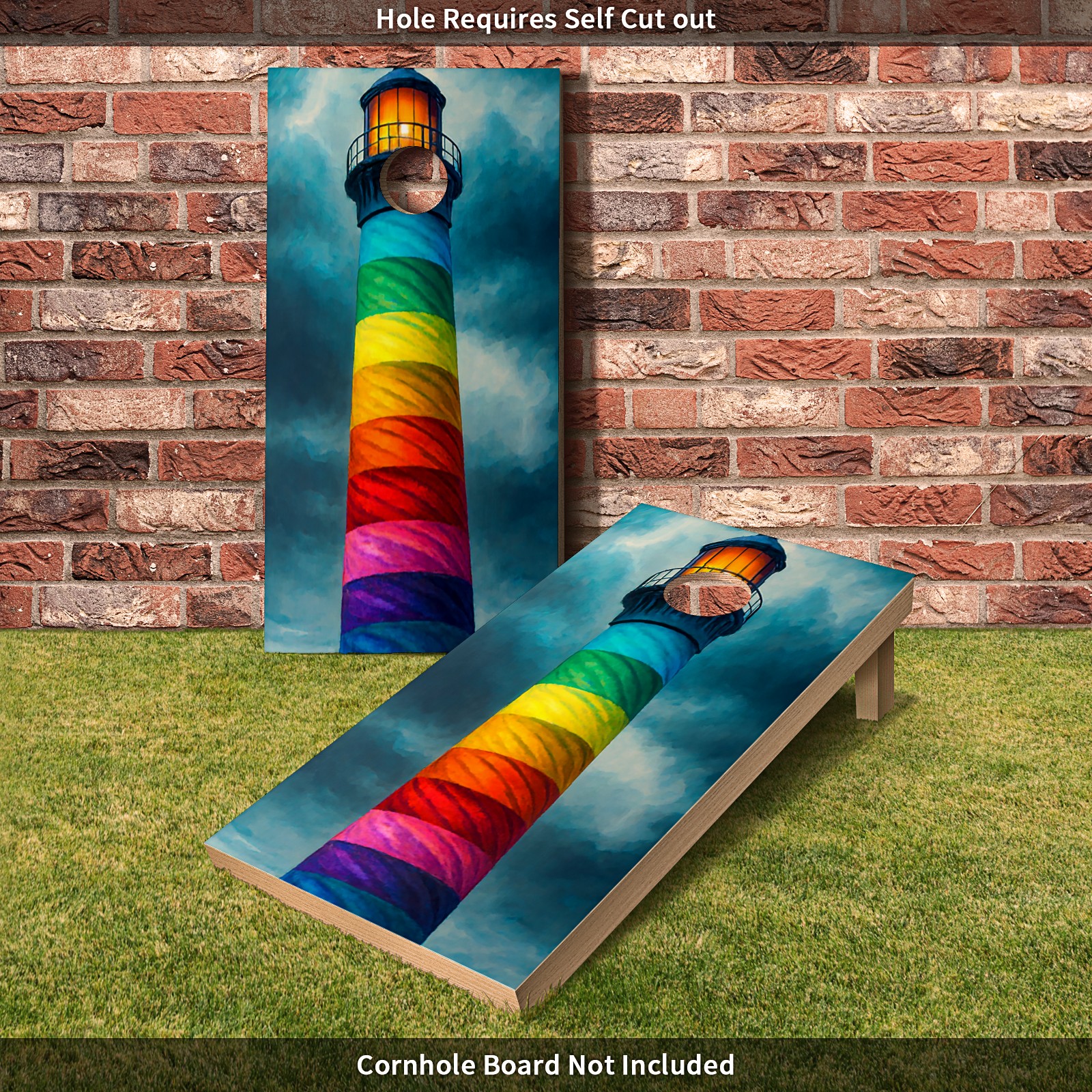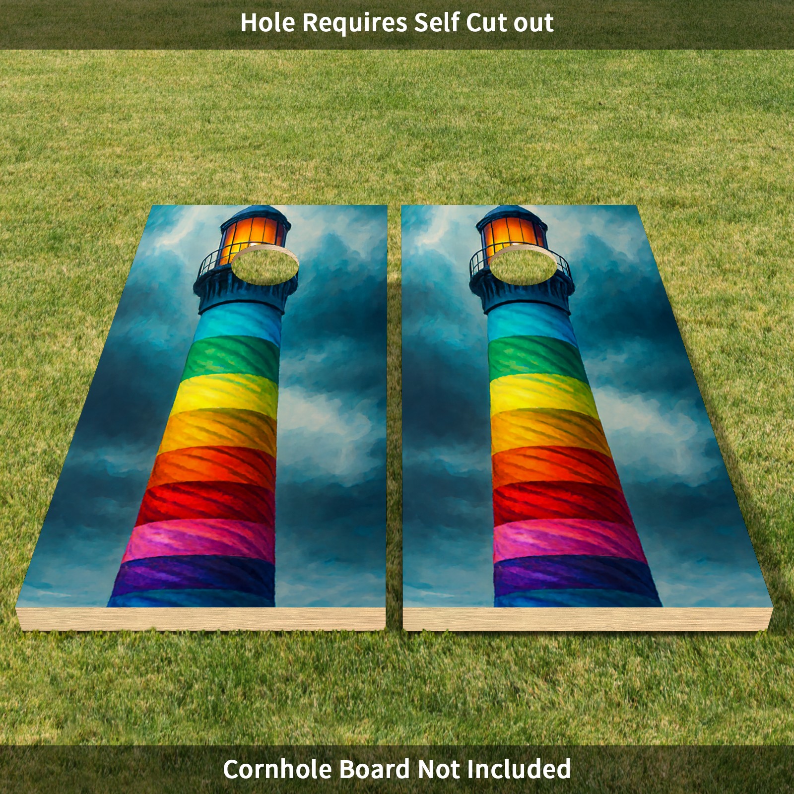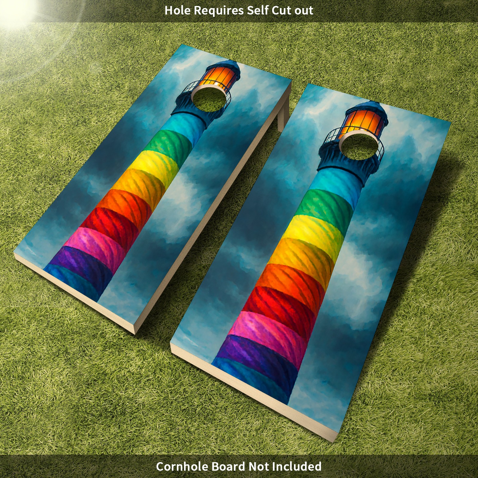 Custom Cornhole Wrap Stickers - 2 PCS Vinyl Decals, Waterproof and UV-Resistant, Easy to Apply Funny Patterns for Cornhole Board Game Accessories Colorful Beacon